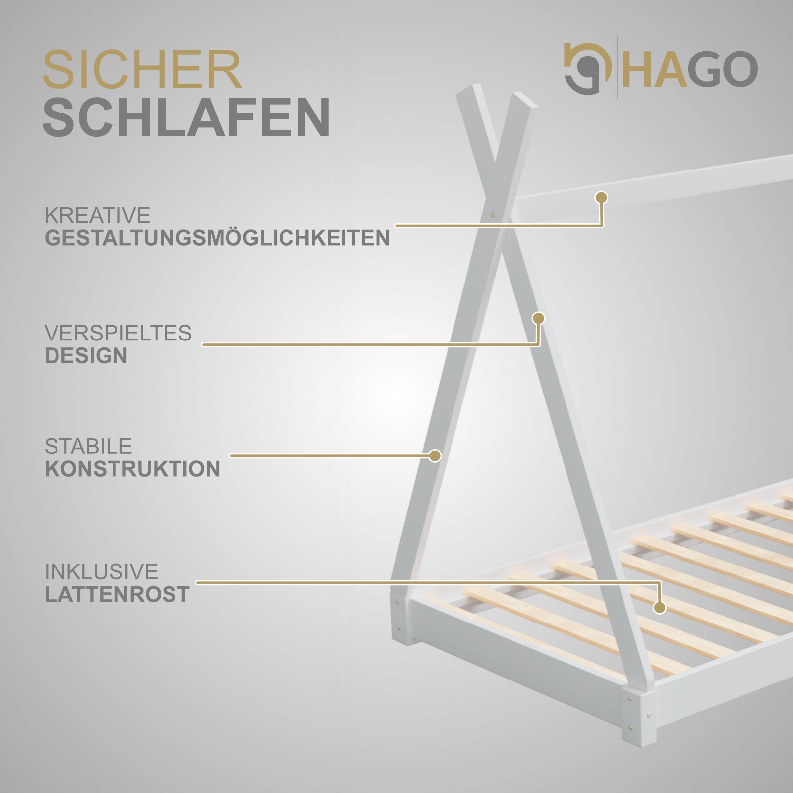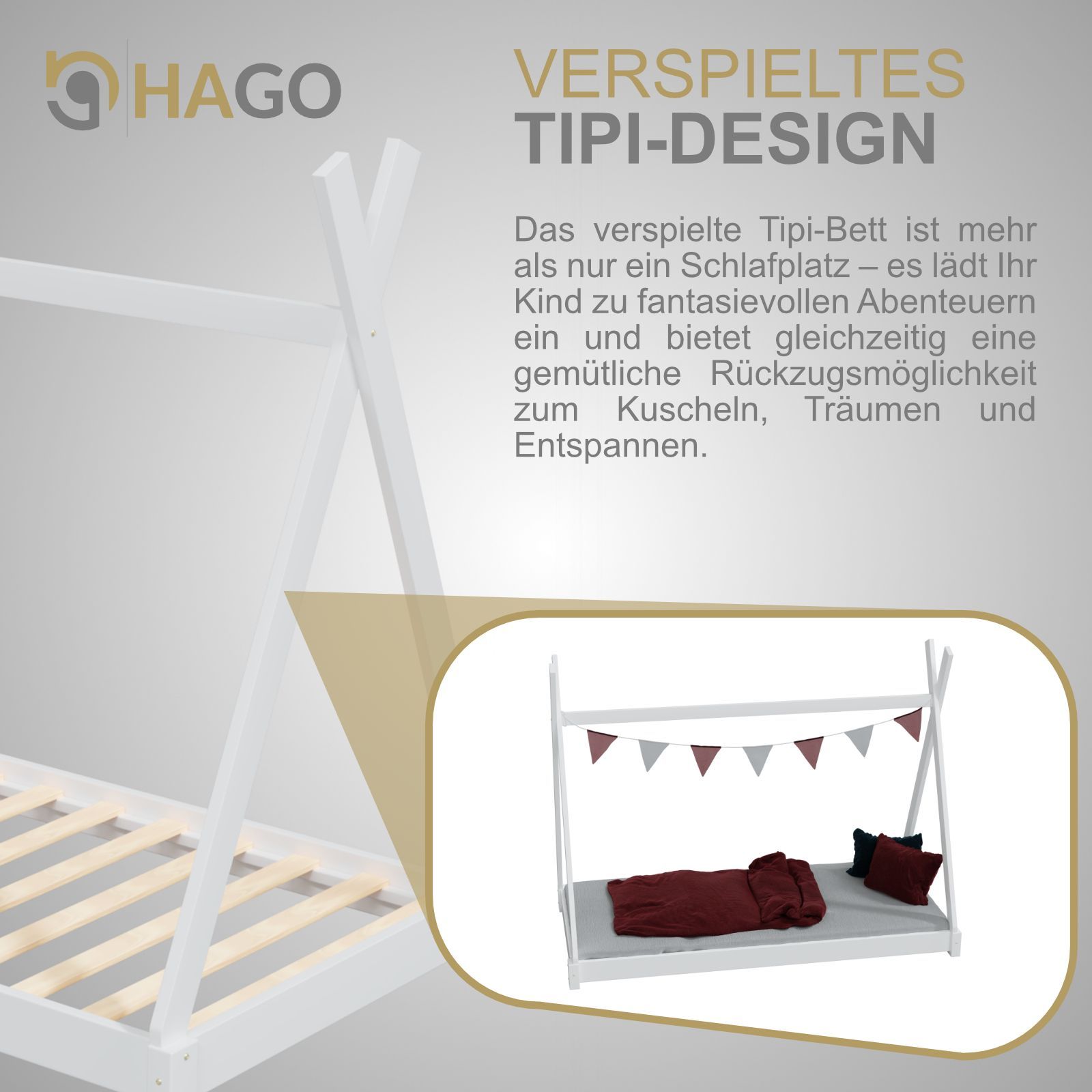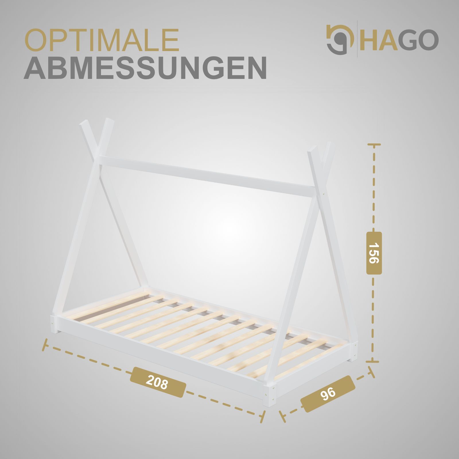 HAGO® Kinderbett Tipibett Holz 200x90cm Weiß Bettgestell Tipi Lattenrost