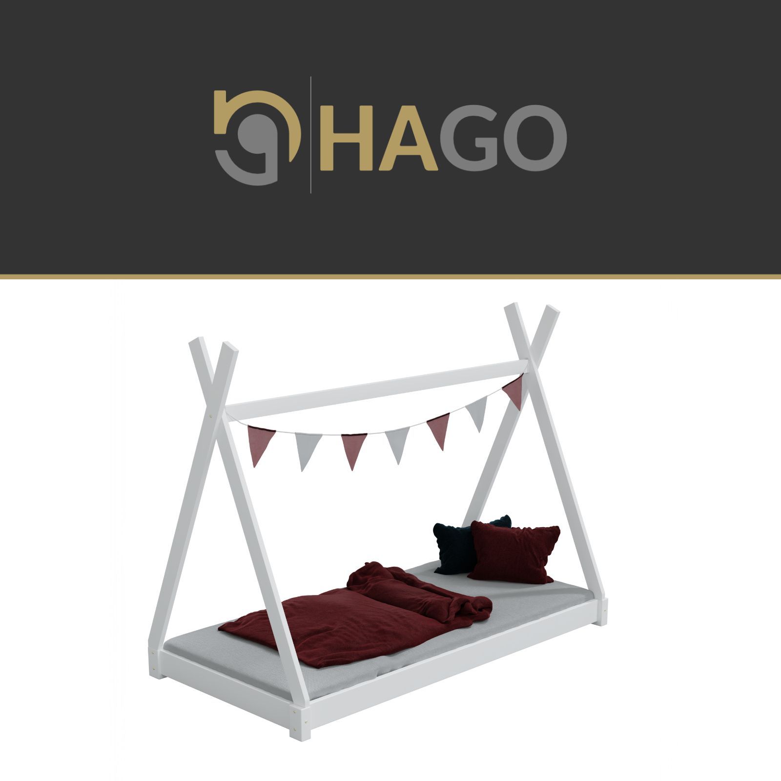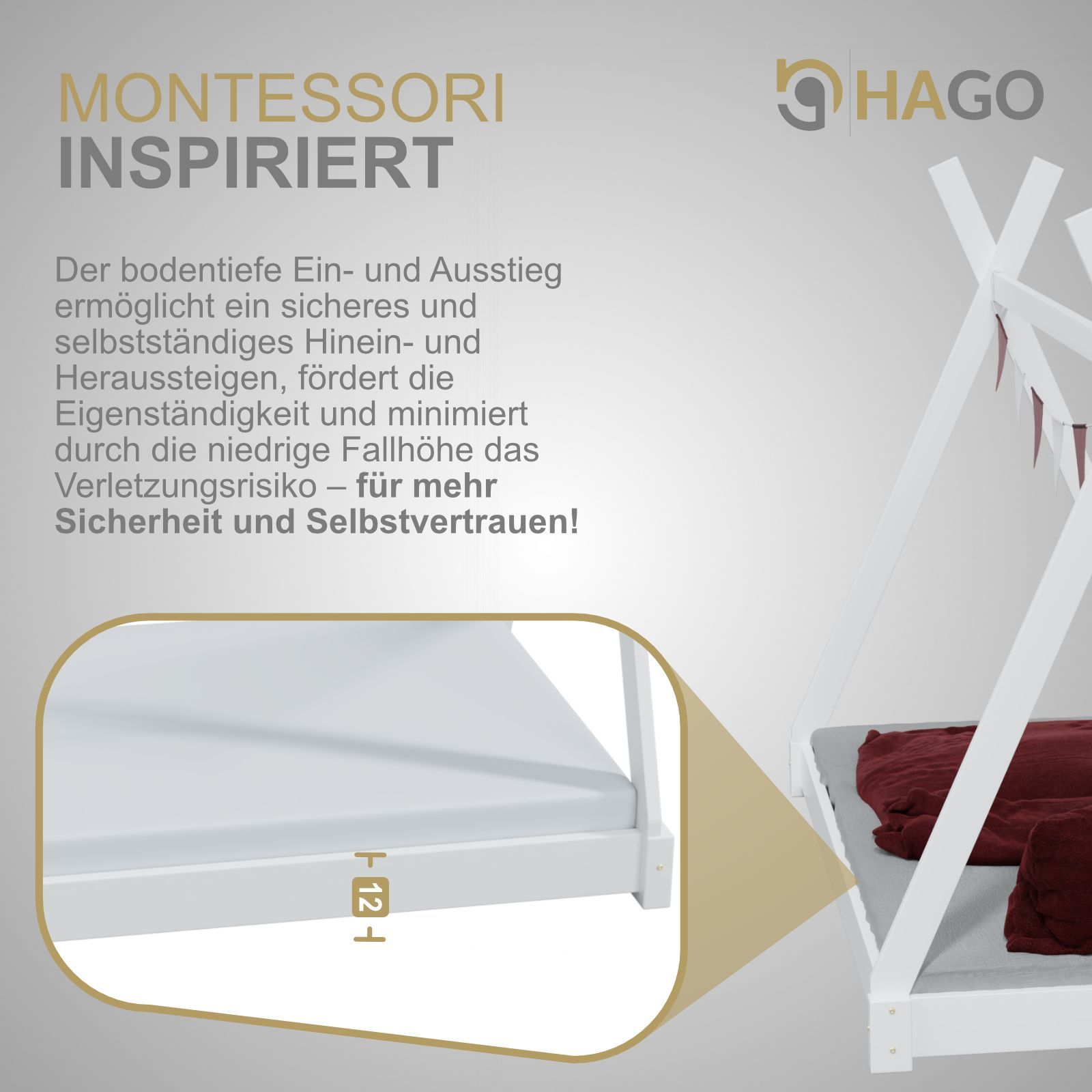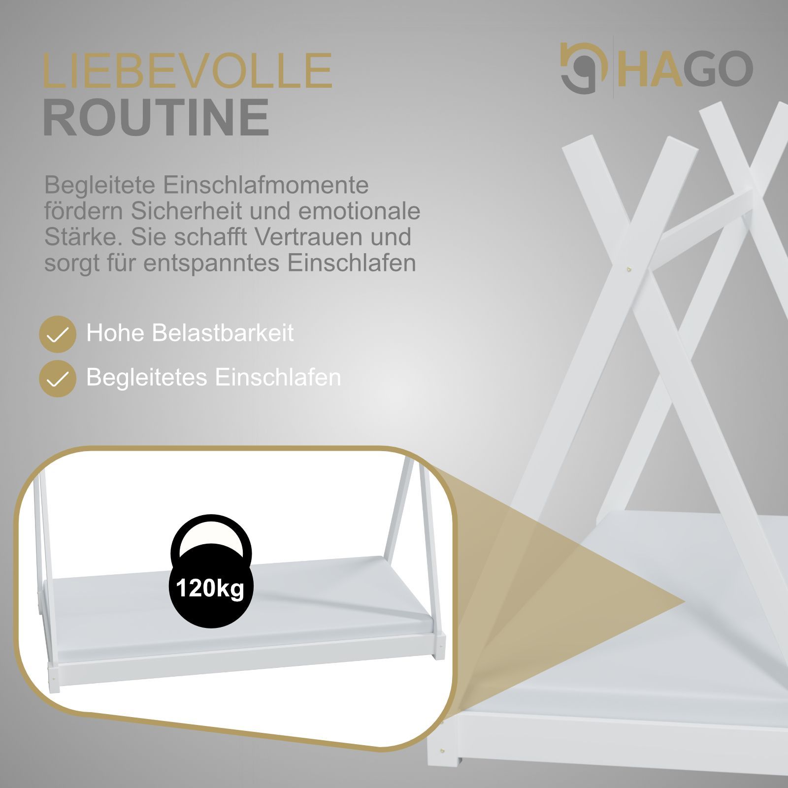 HAGO® Kinderbett Tipibett Holz 200x90cm Weiß Bettgestell Tipi Lattenrost