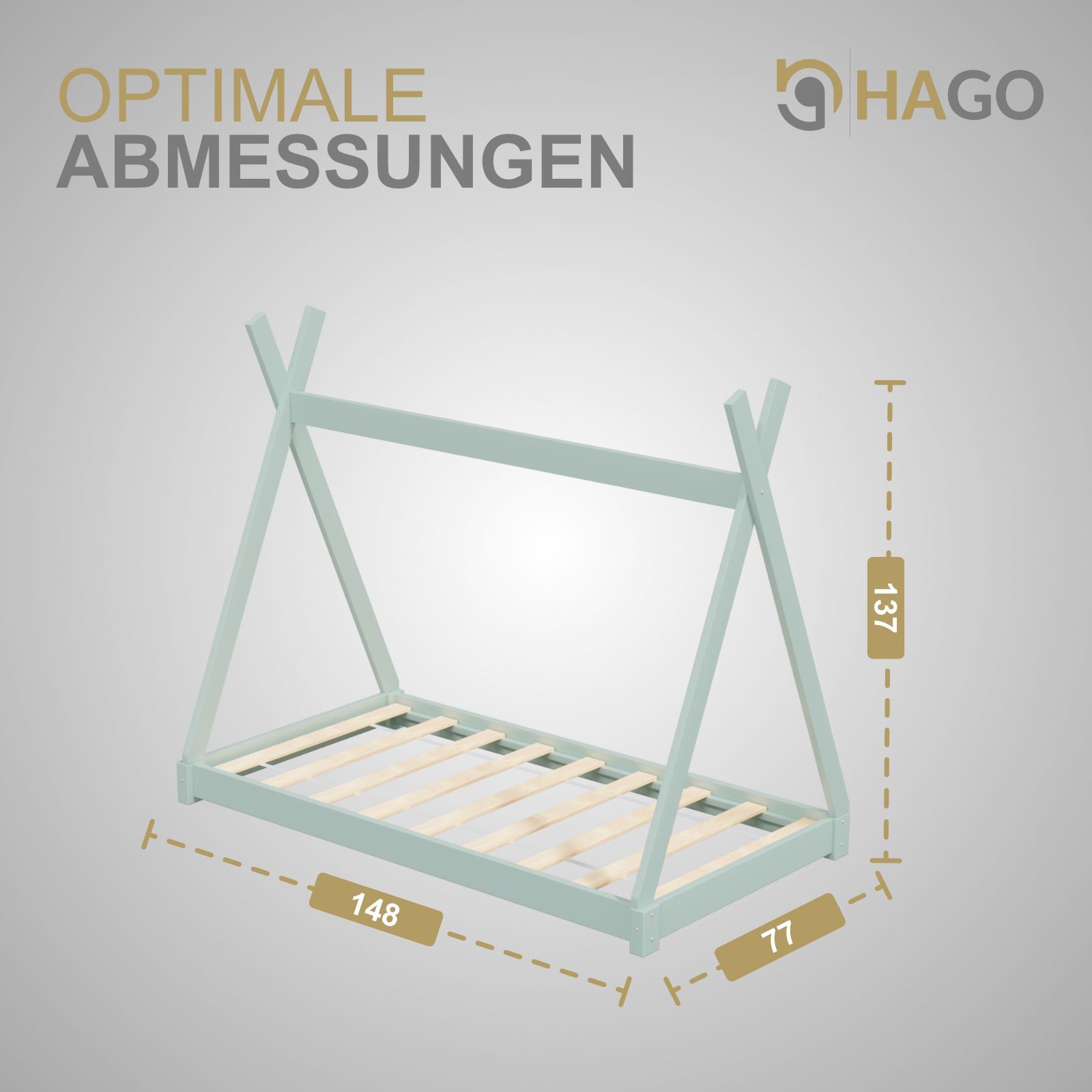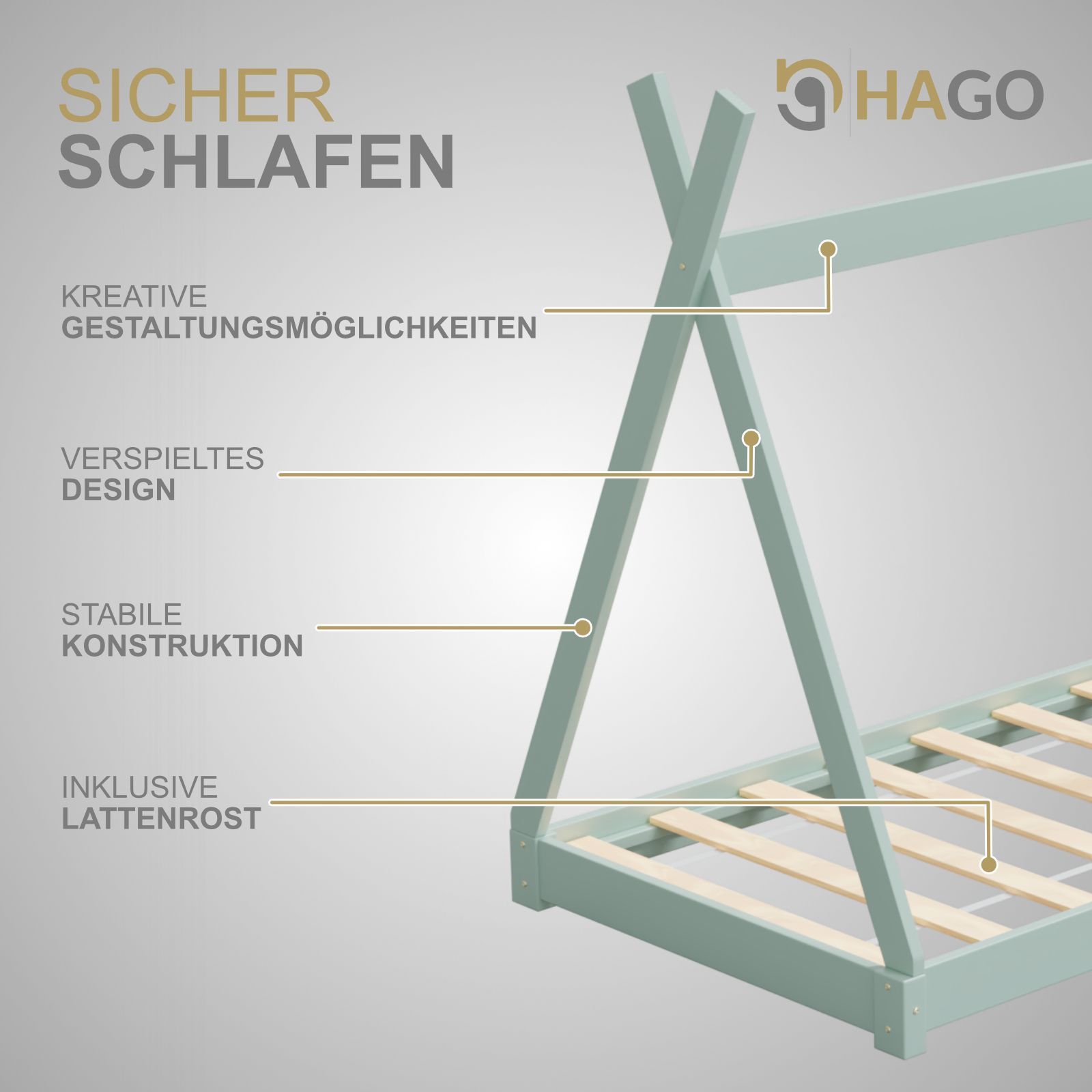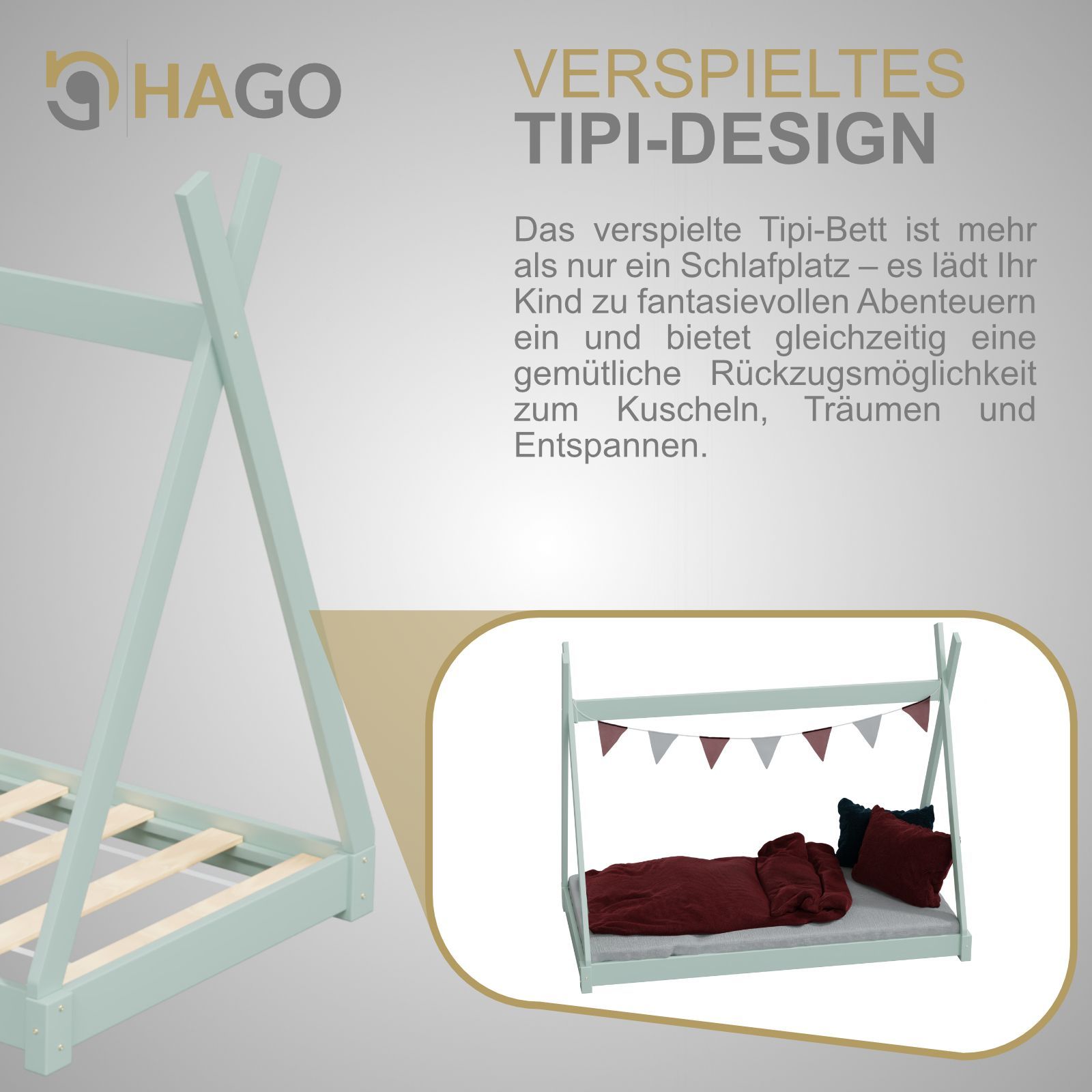 HAGO® Kinderbett Tipibett Holz Kiefer 140x70cm Bettgestell Tipi Lattenrost Mint