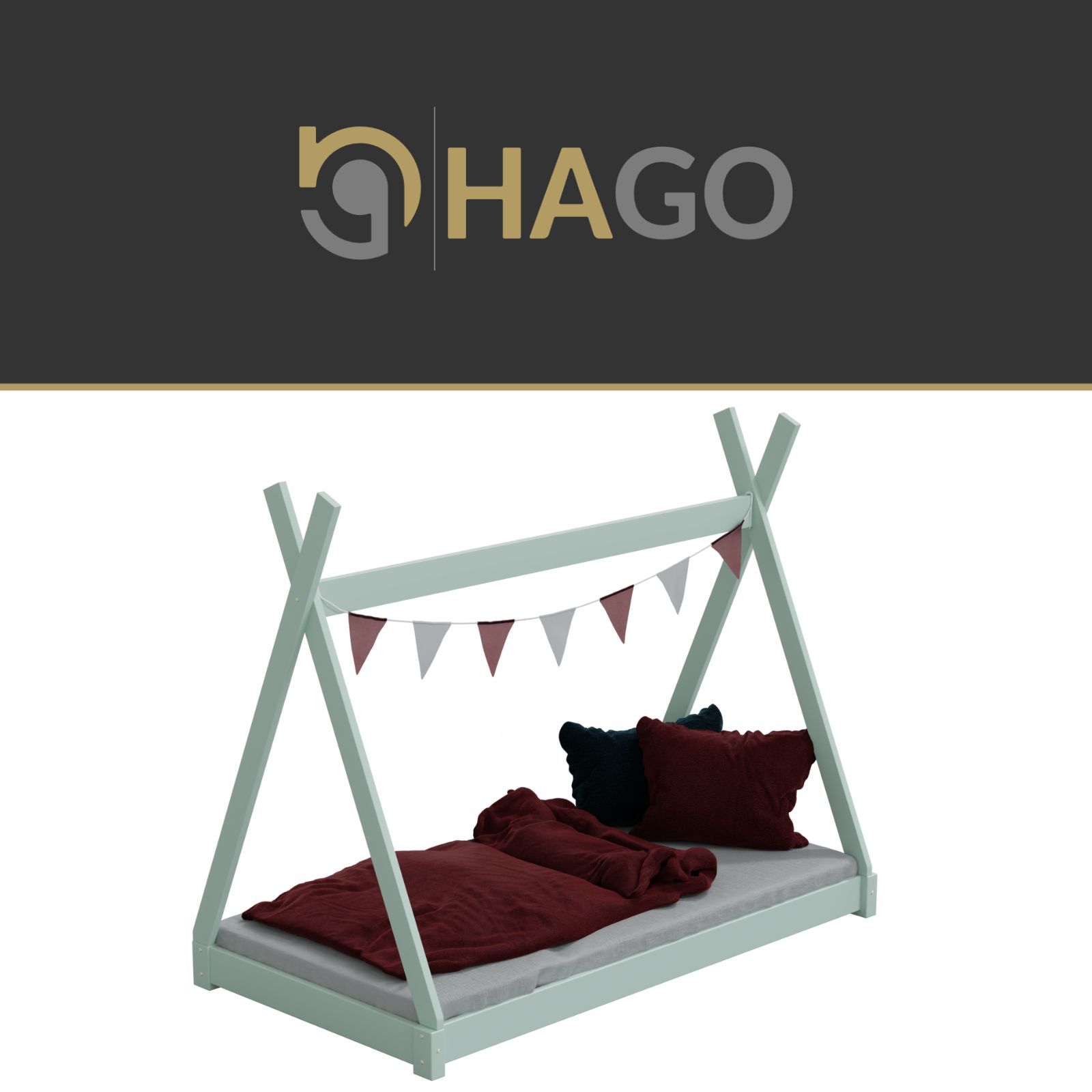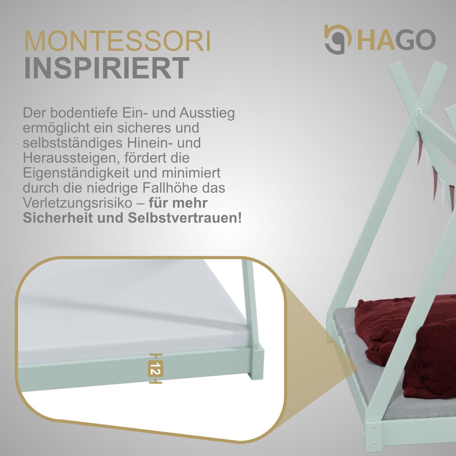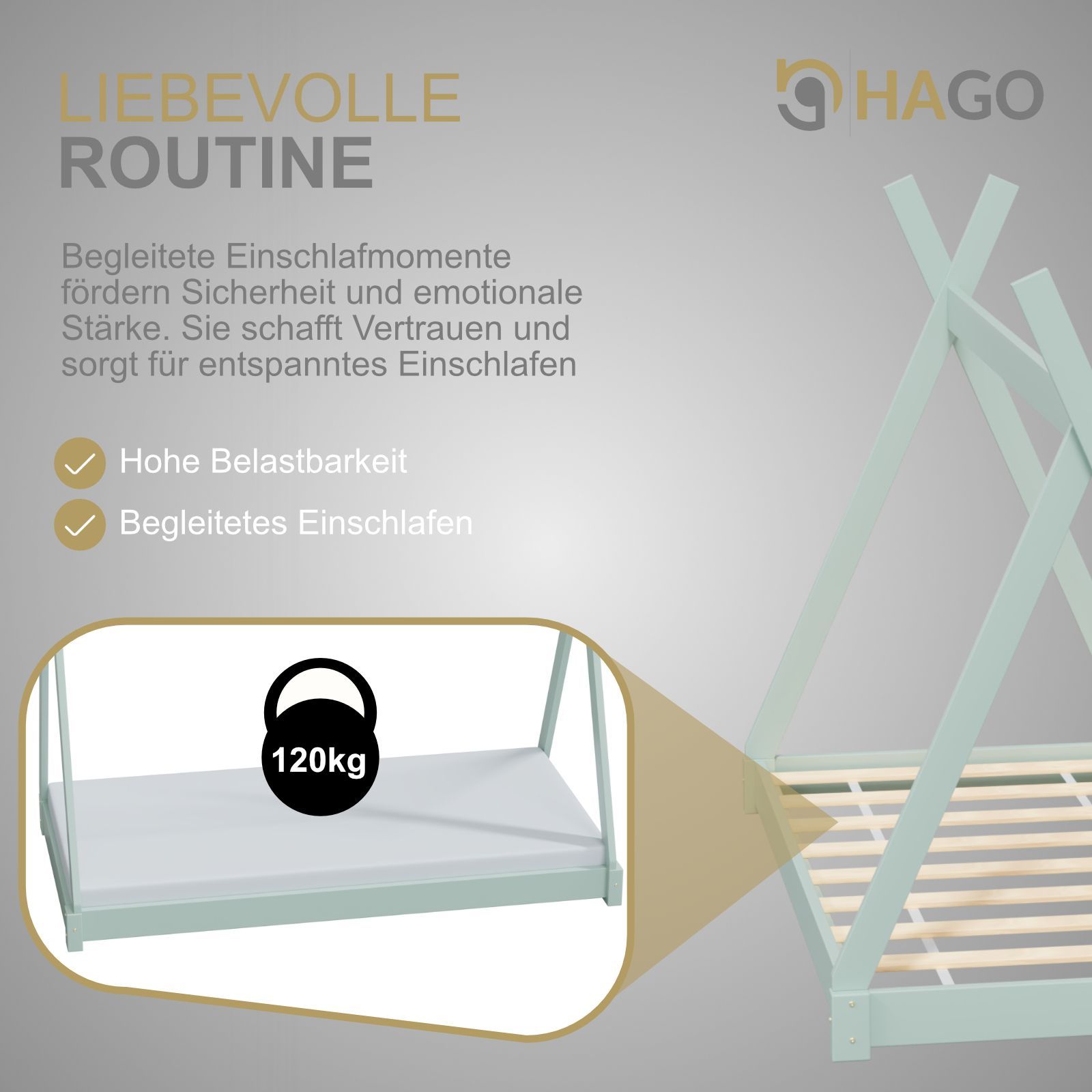 HAGO® Kinderbett Tipibett Holz Kiefer 140x70cm Bettgestell Tipi Lattenrost Mint