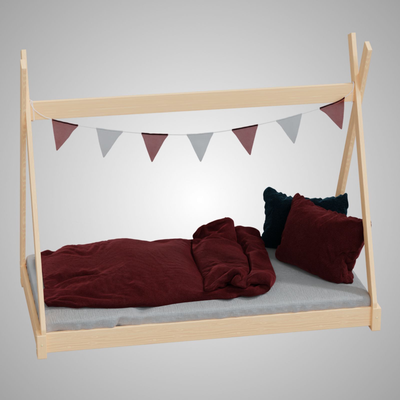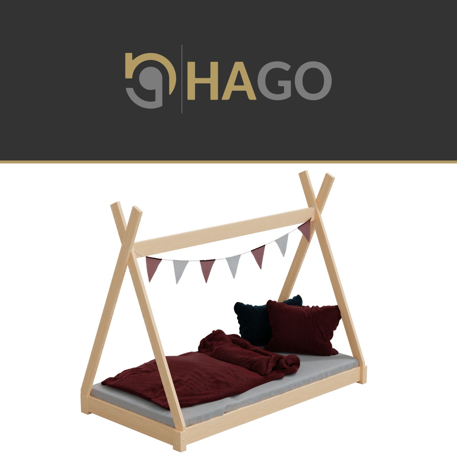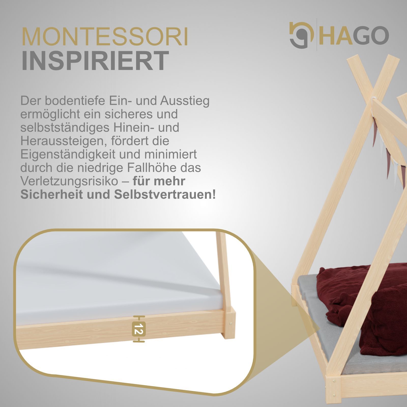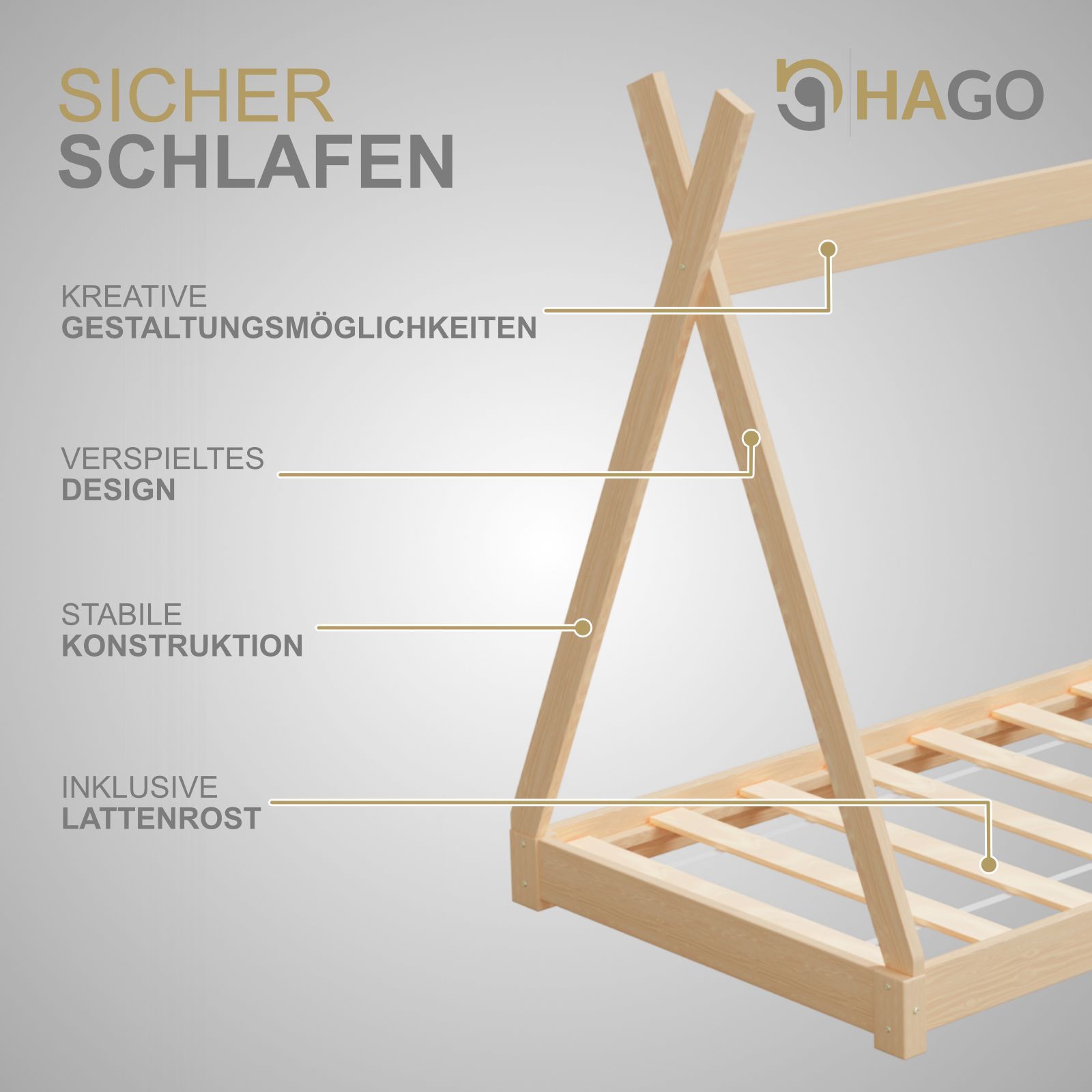 HAGO® Kinderbett Tipibett Holz Kiefer 140x70cm Bettgestell Tipi Lattenrost Natur