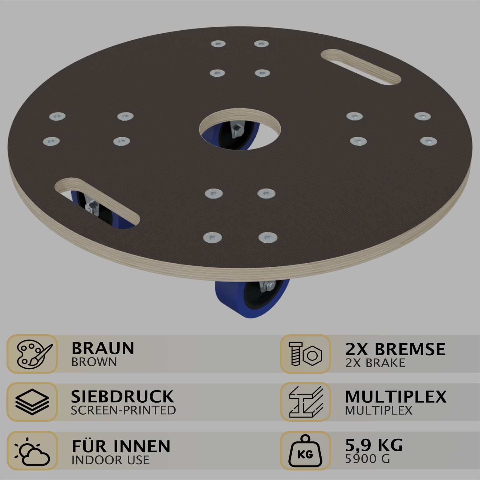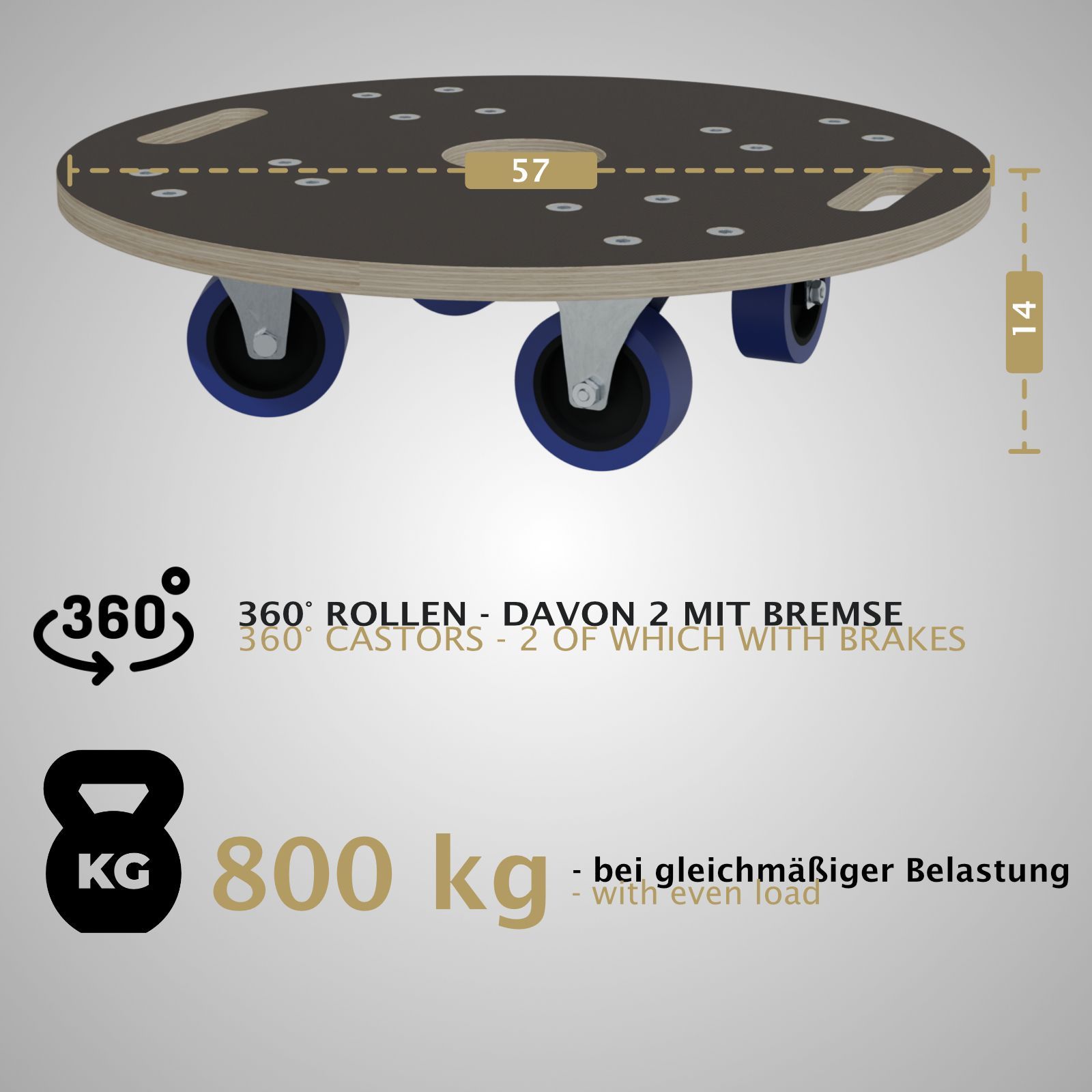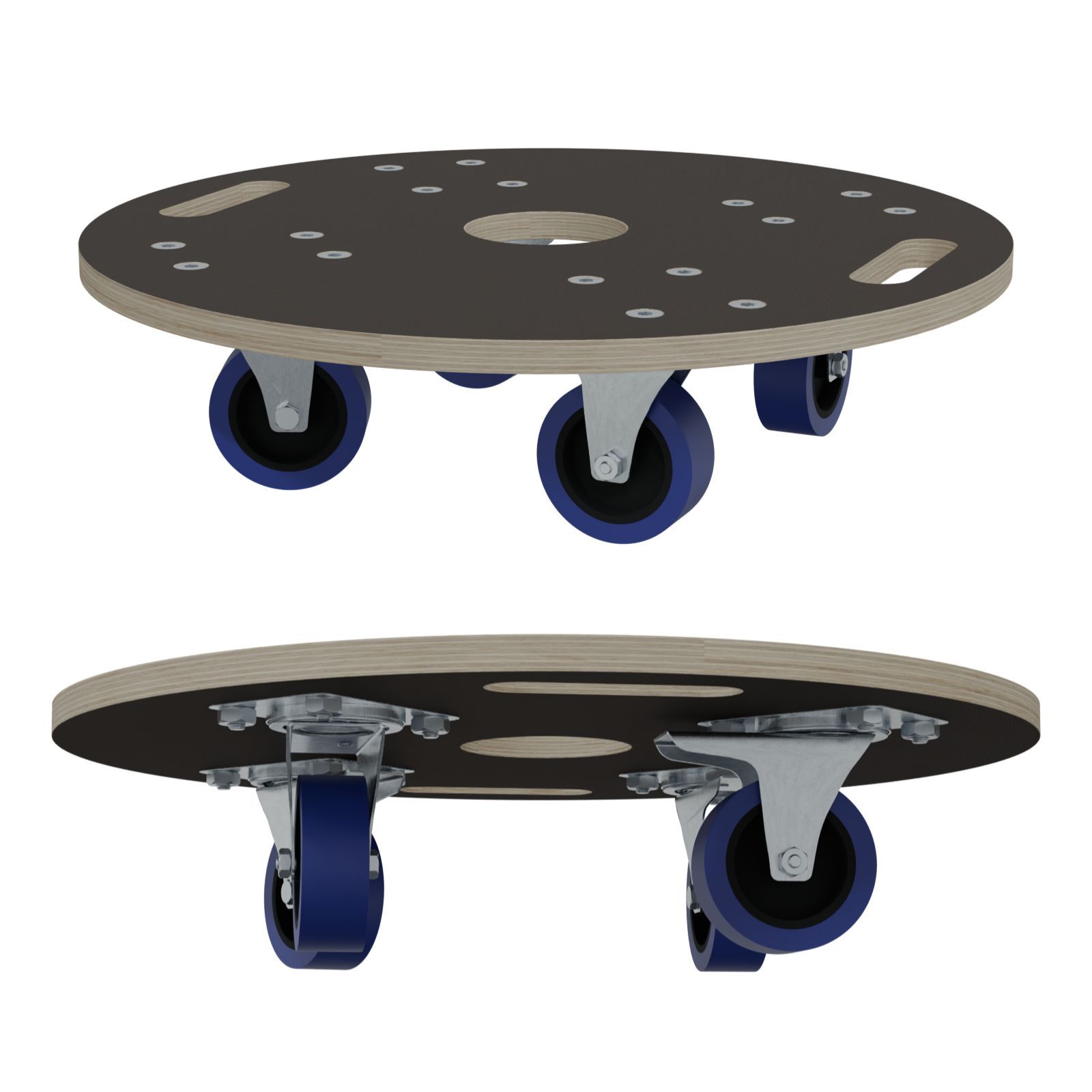 HAGO® Möbelroller rund Rollbrett Transporthilfe Ø57 800kg Griffmulden Gummi 360°