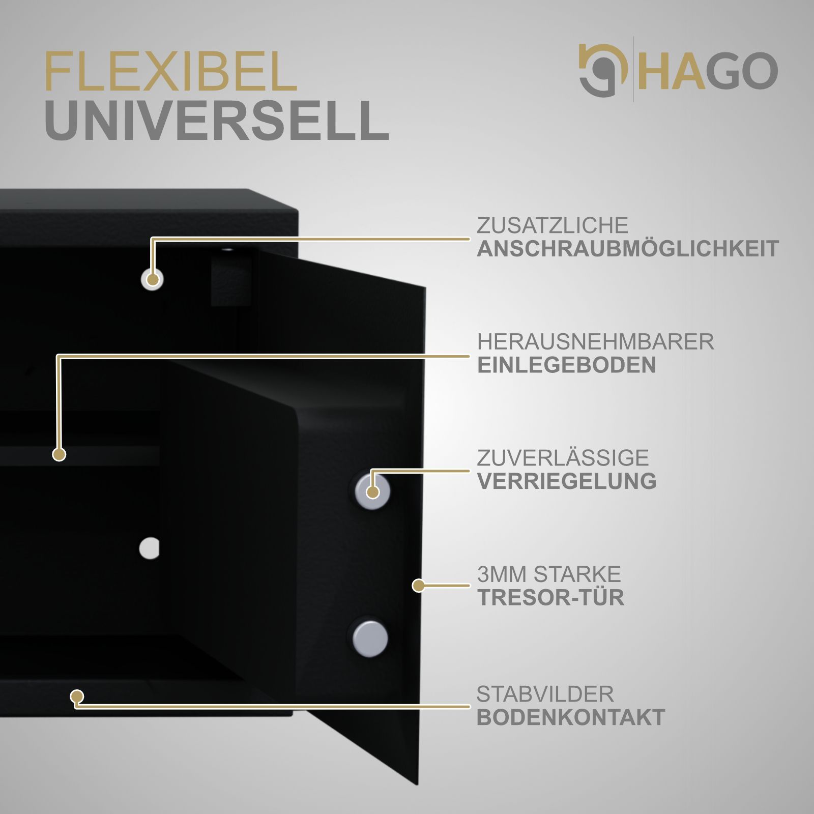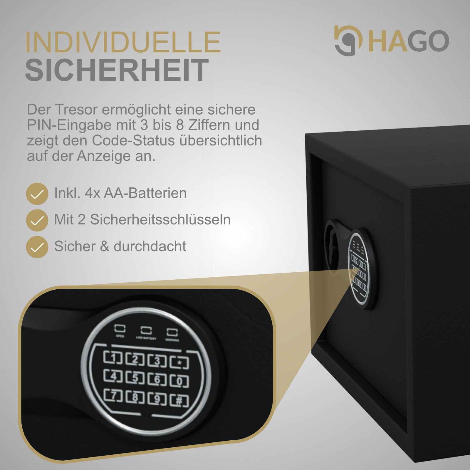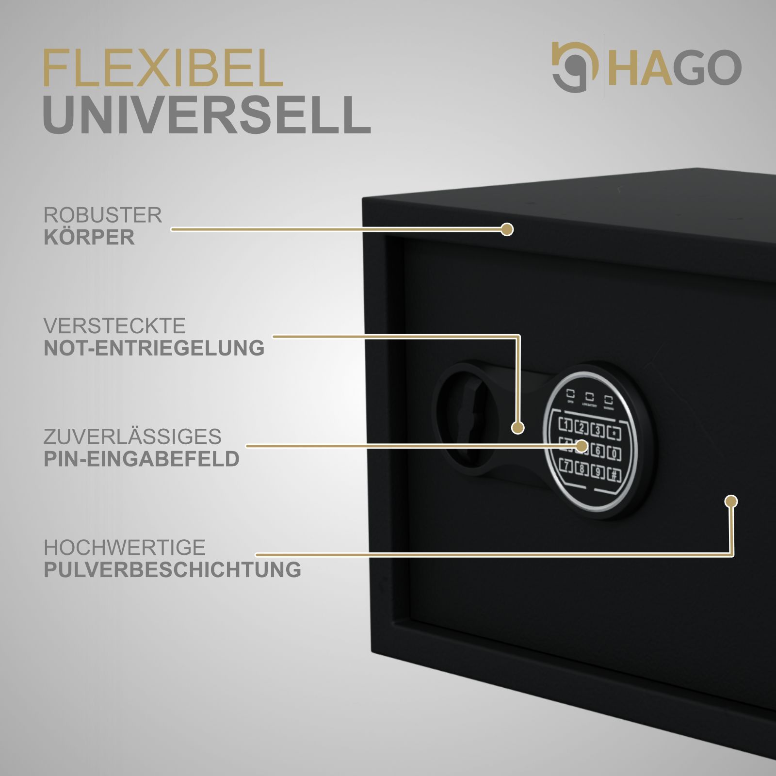 HAGO® Möbeltresor Zimmersafe Elektronikschloss 16L PIN-Code Schlüssel feuerfest