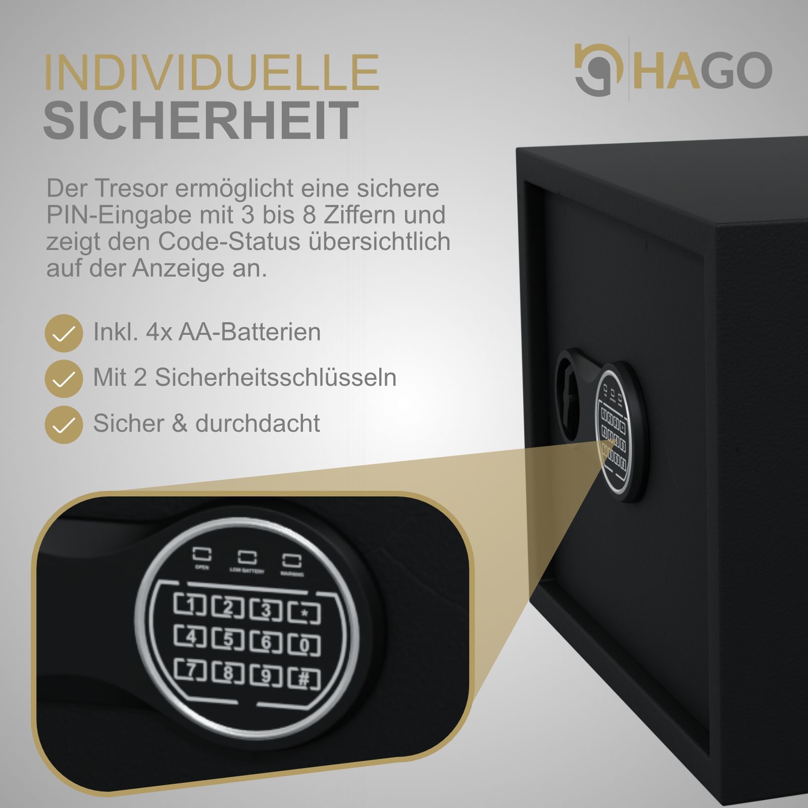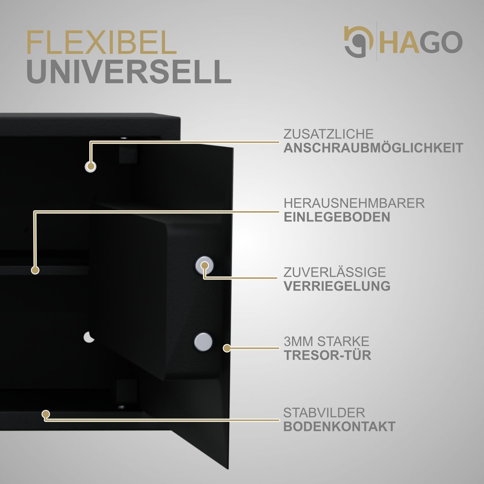 HAGO® Möbeltresor Zimmersafe Elektronikschloss 27L PIN-Code Schlüssel feuerfest