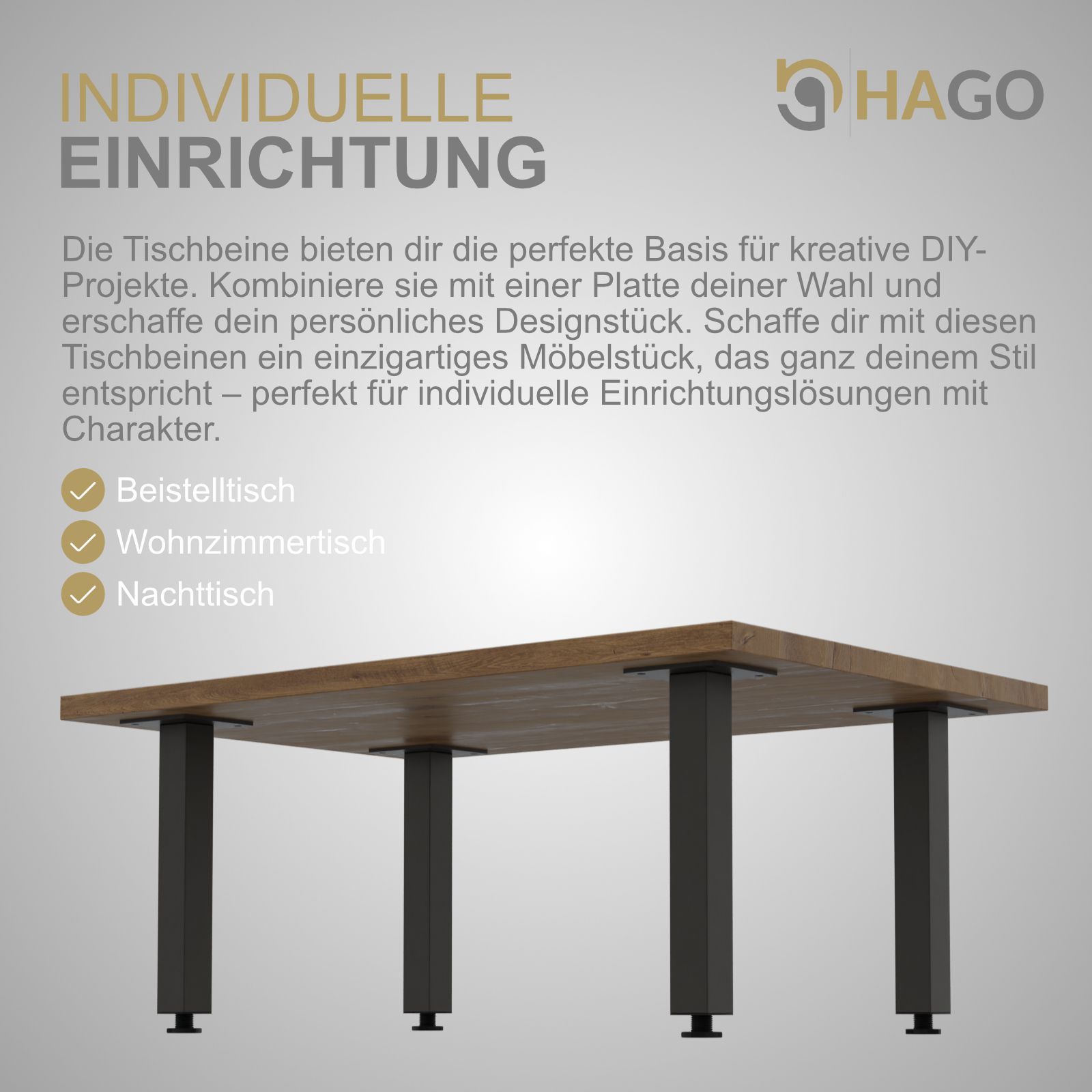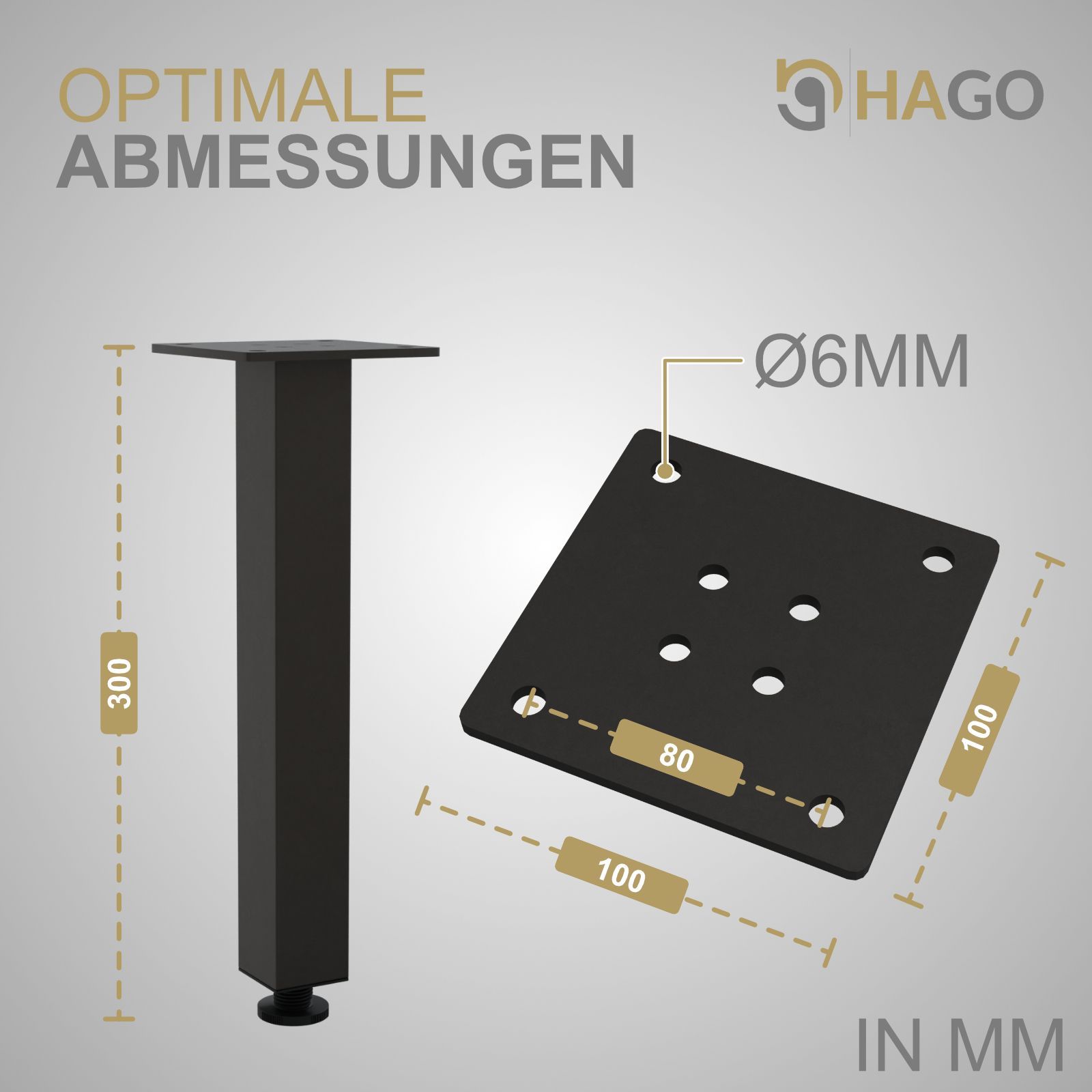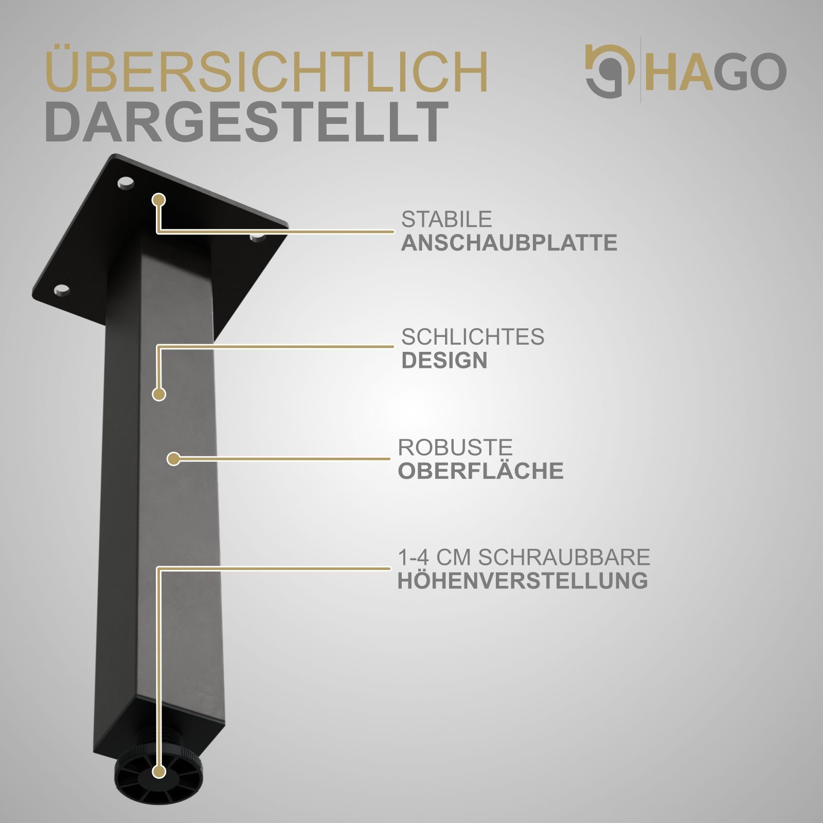 HAGO® Tischbeine 4er-Set 4x4cm höhenverstellbar 30cm Möbelfuß Gestell Stahl Bank