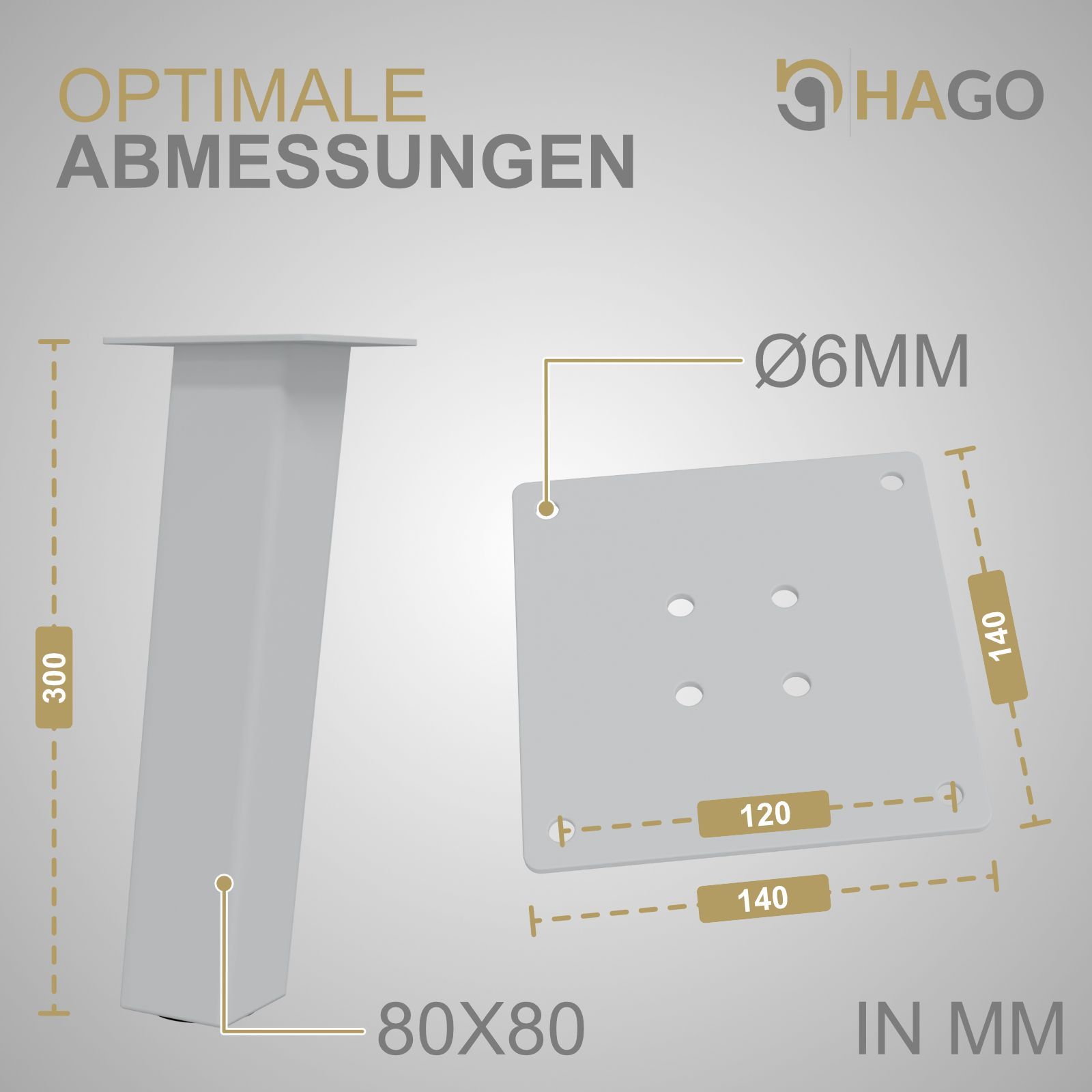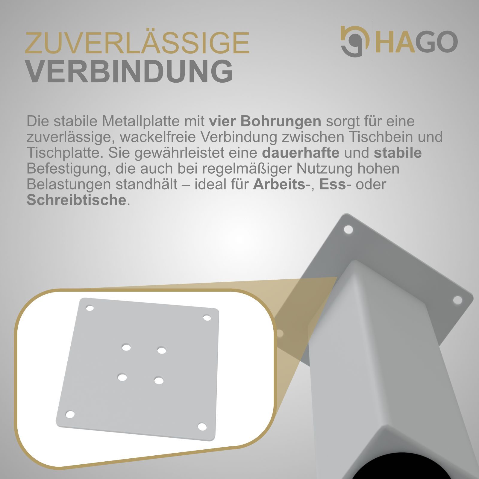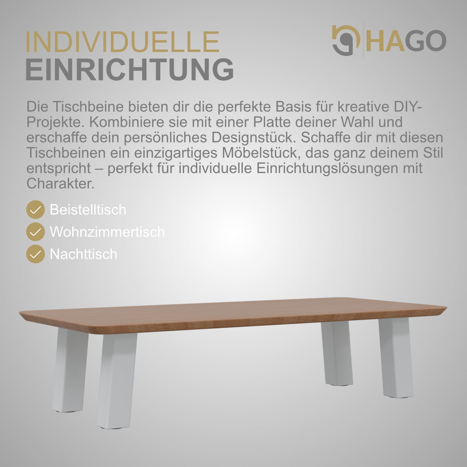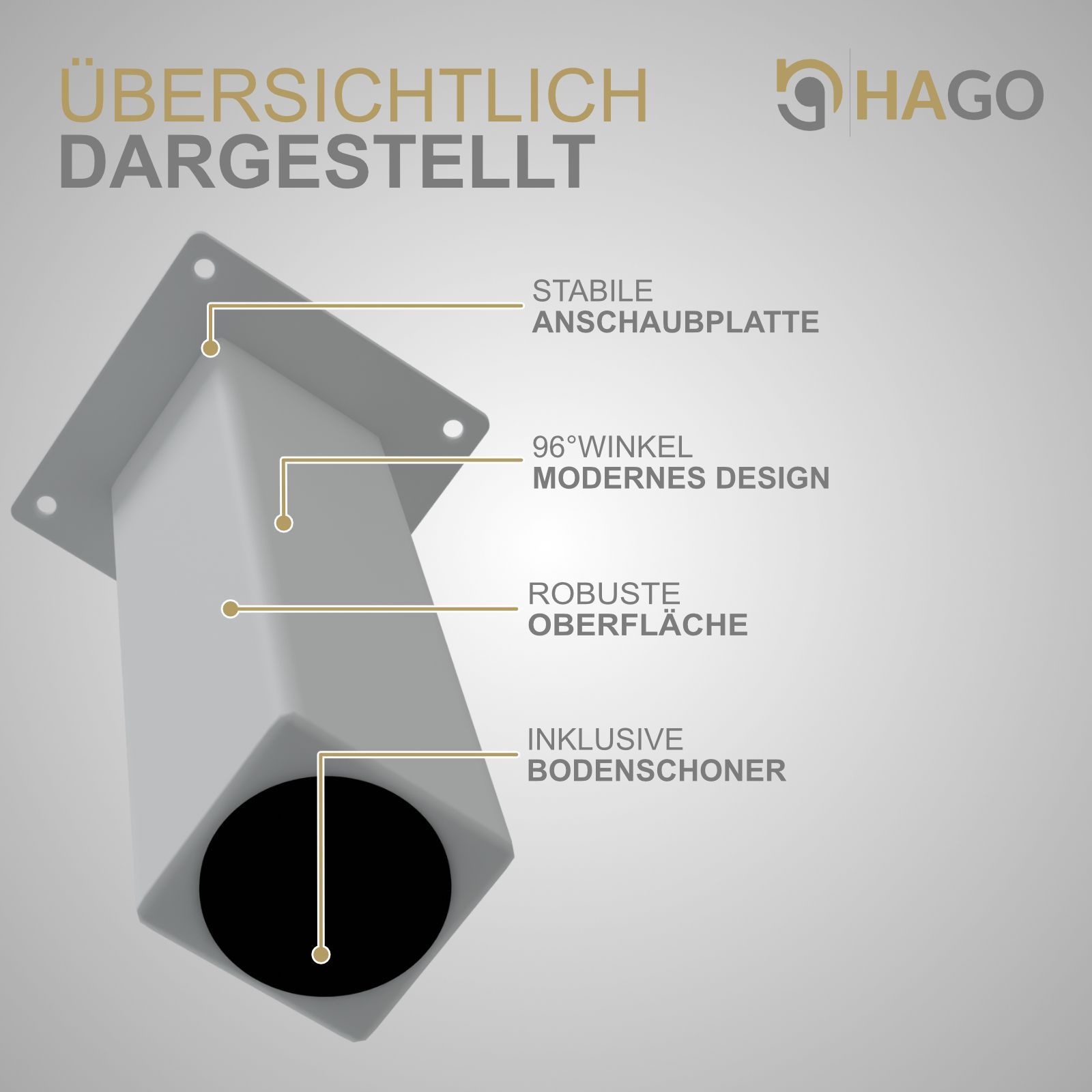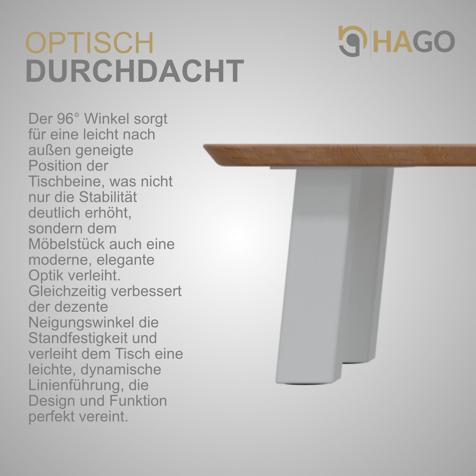 HAGO® Tischbeine 4er-Set 8x8cm 30cm schräg 96° Möbelfuß Gestell Stahl weiß Stahl