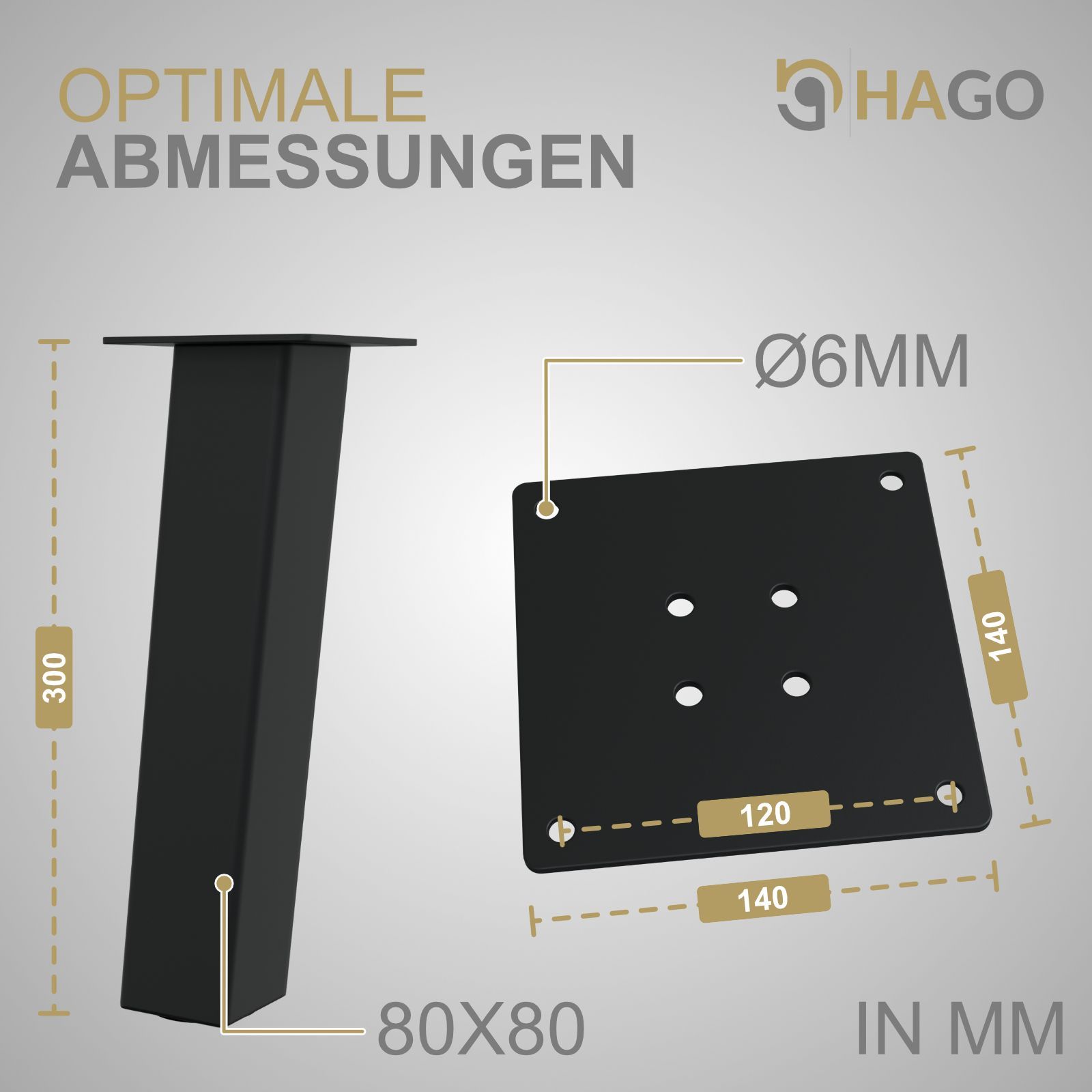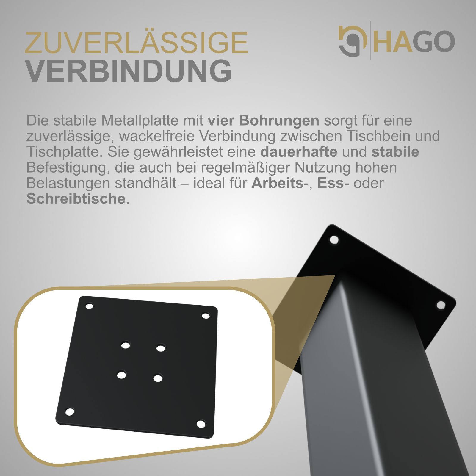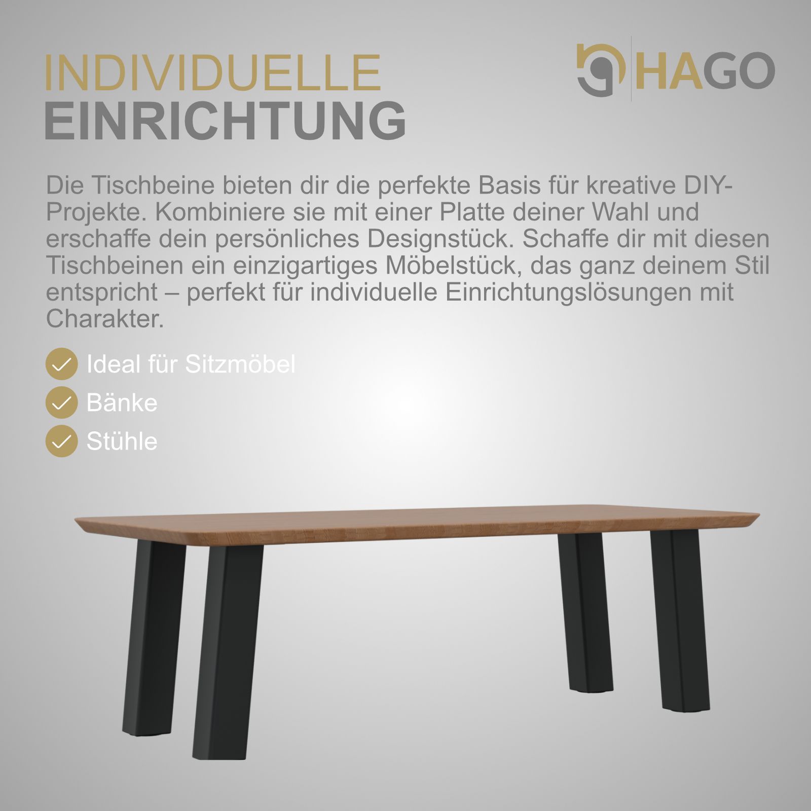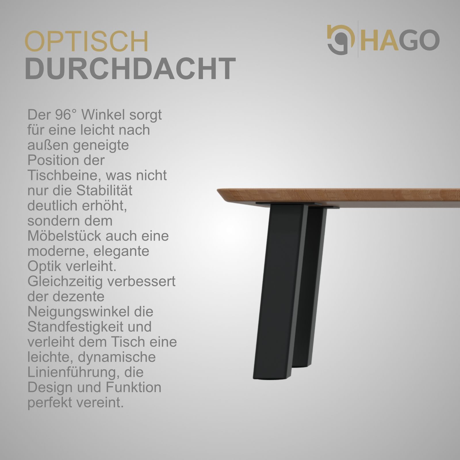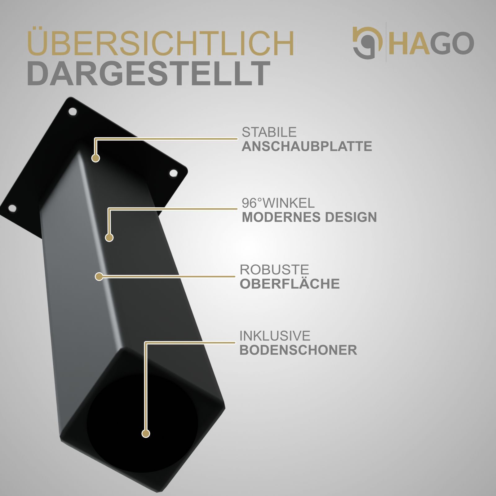 HAGO® Tischbeine 4er-Set 8x8cm 42cm schräg 96° Möbelfuß Gestell Stahl schwarz