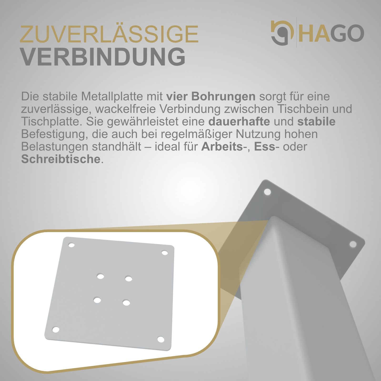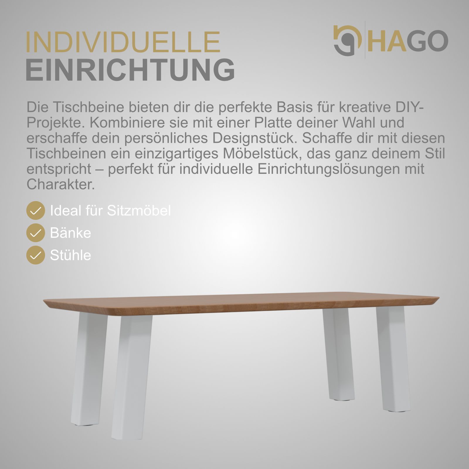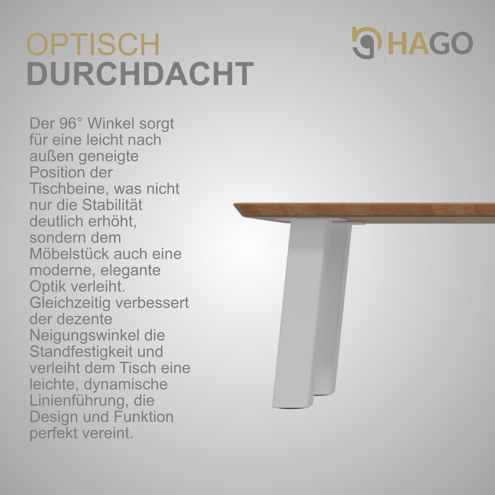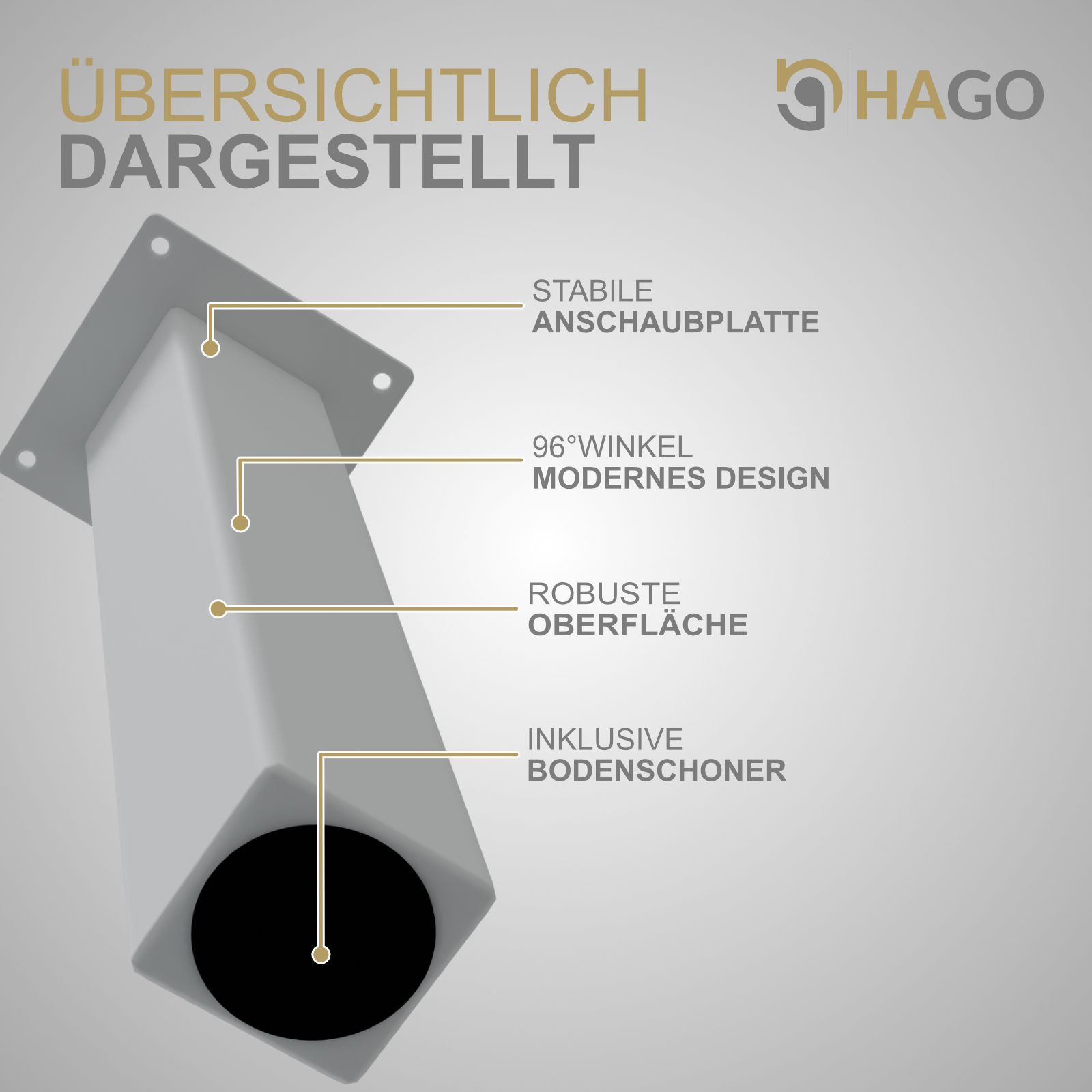 HAGO® Tischbeine 4er-Set 8x8cm 42cm schräg 96° Möbelfuß Gestell Stahl weiß Stahl