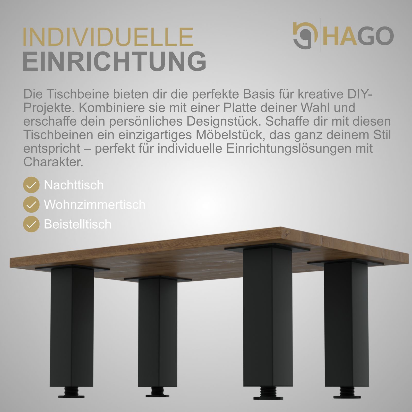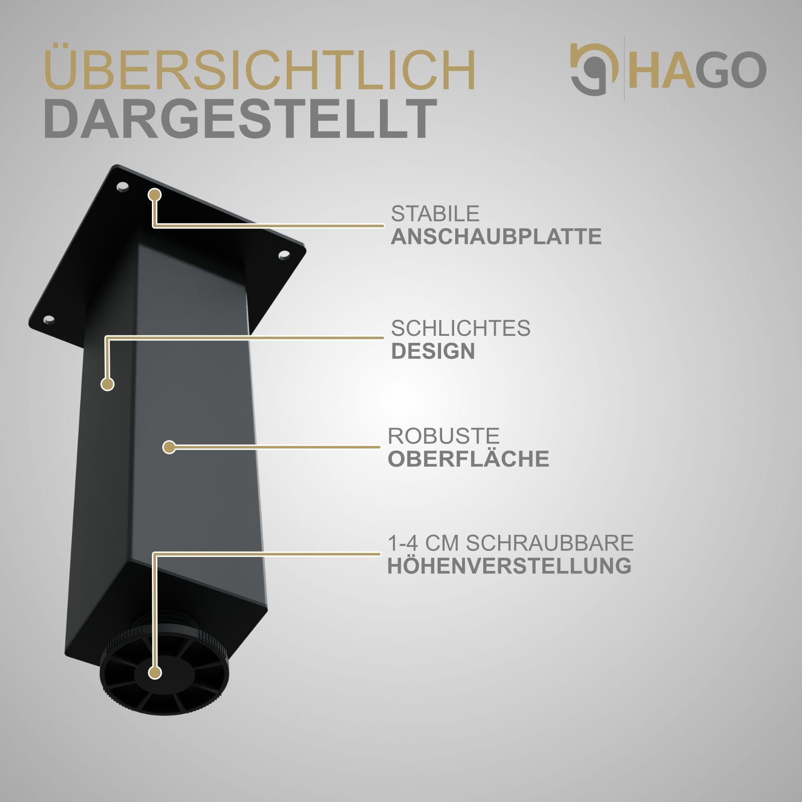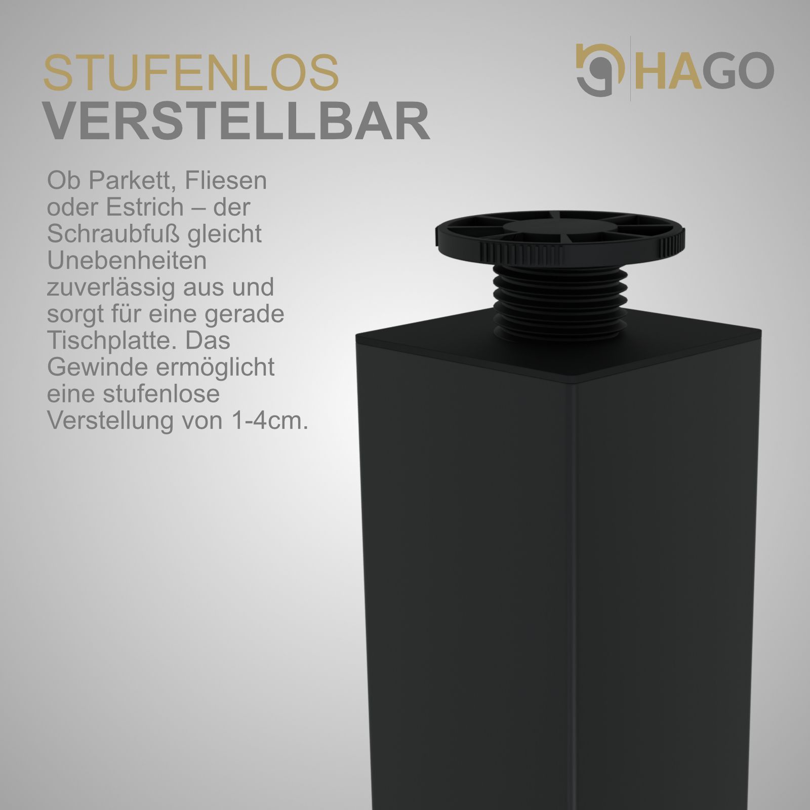 HAGO® Tischbeine 4er-Set 8x8cm höhenverstellbar 30cm Möbelfuß Gestell Schwarz