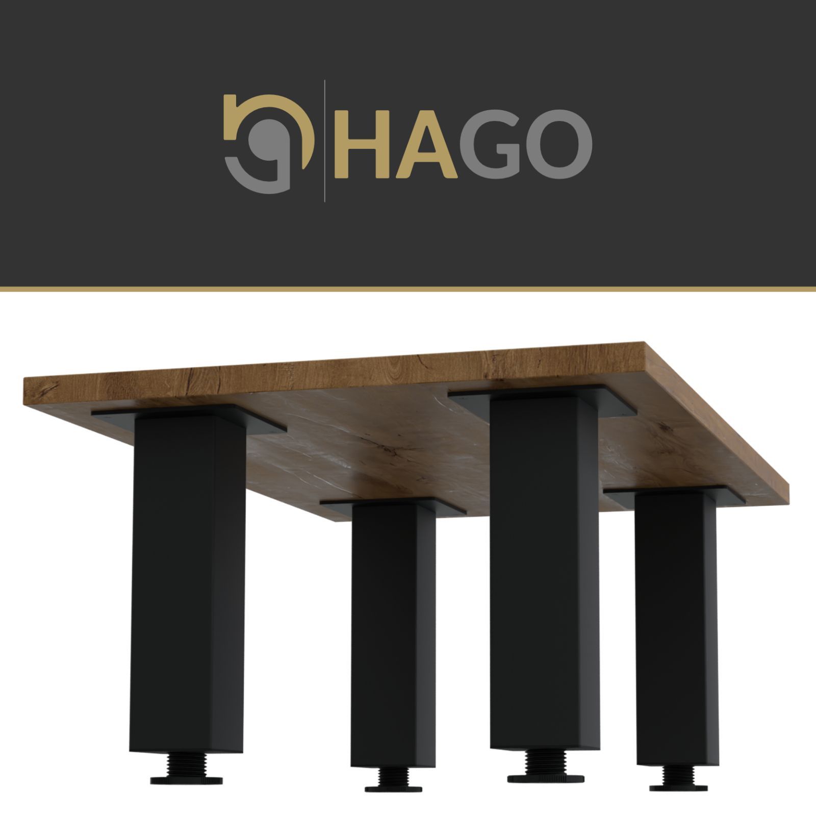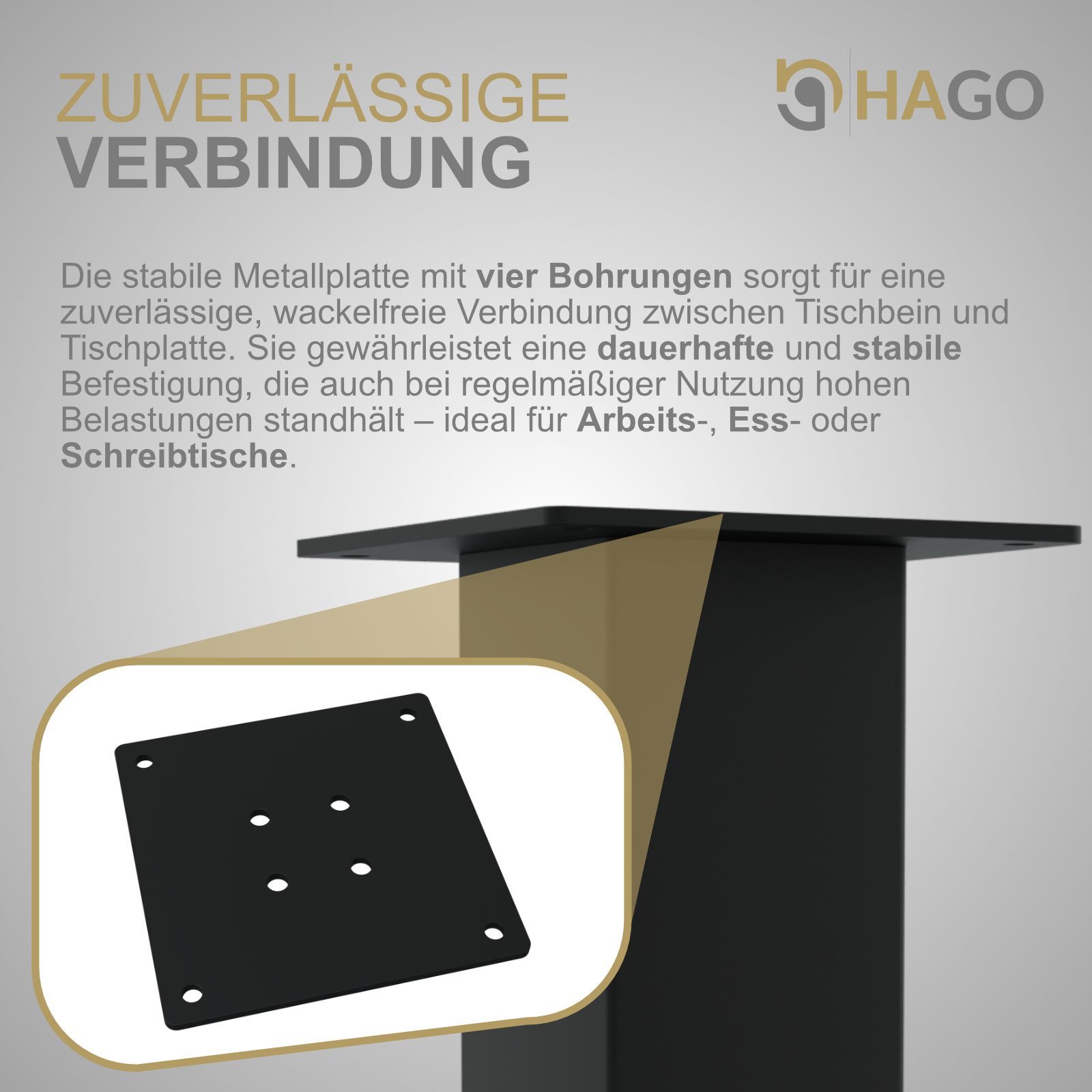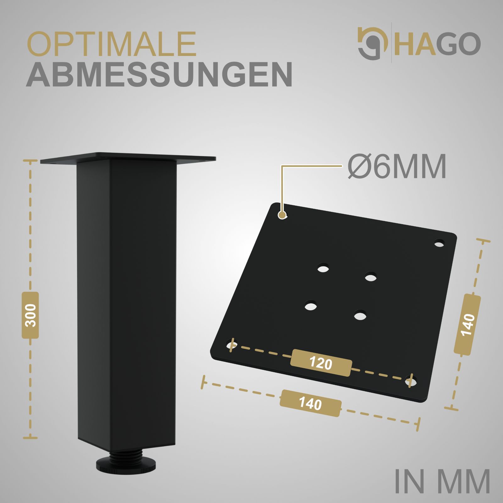 HAGO® Tischbeine 4er-Set 8x8cm höhenverstellbar 30cm Möbelfuß Gestell Schwarz