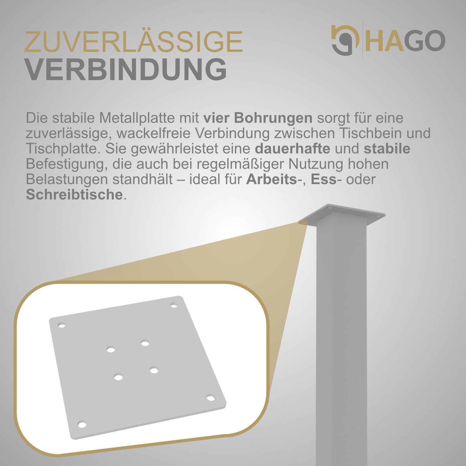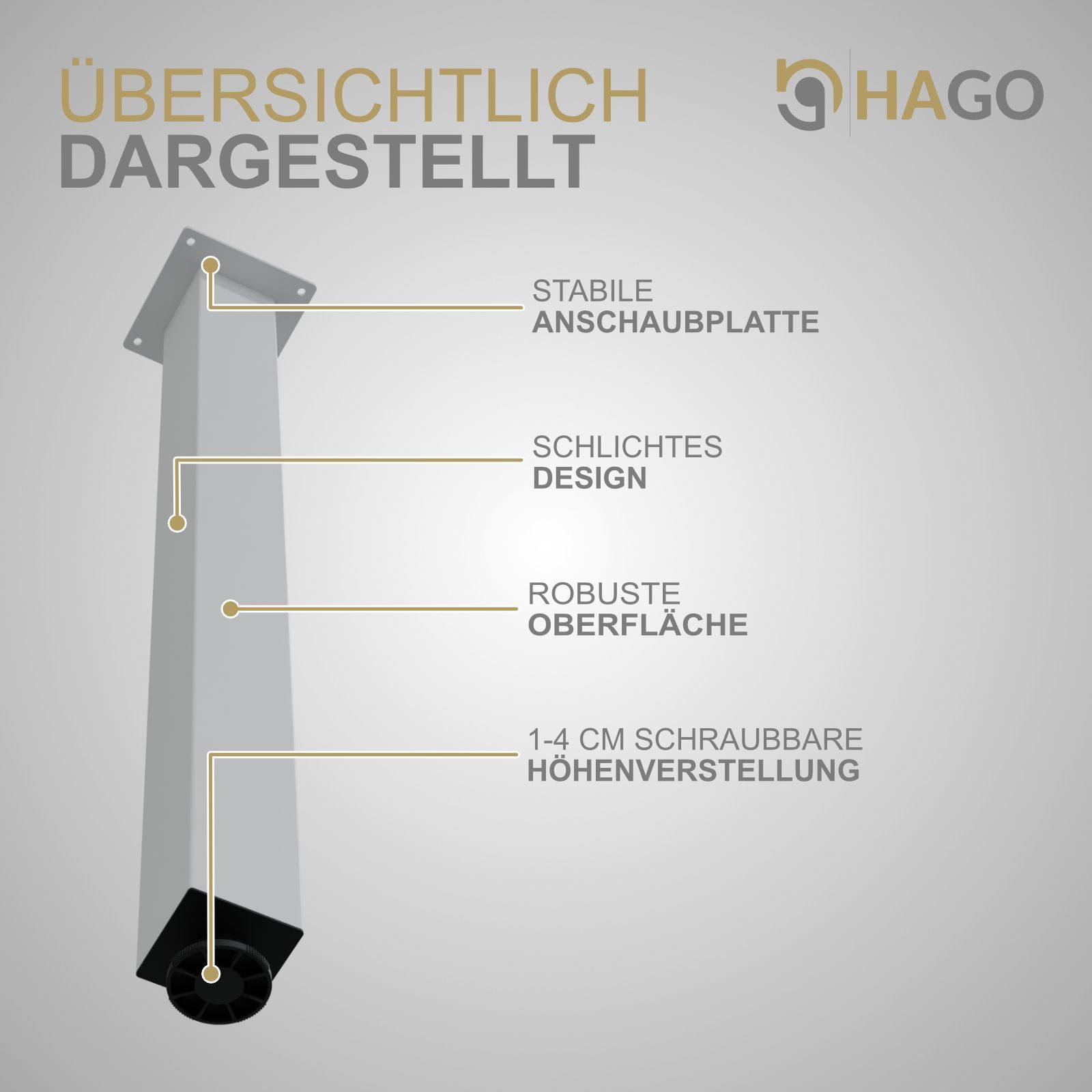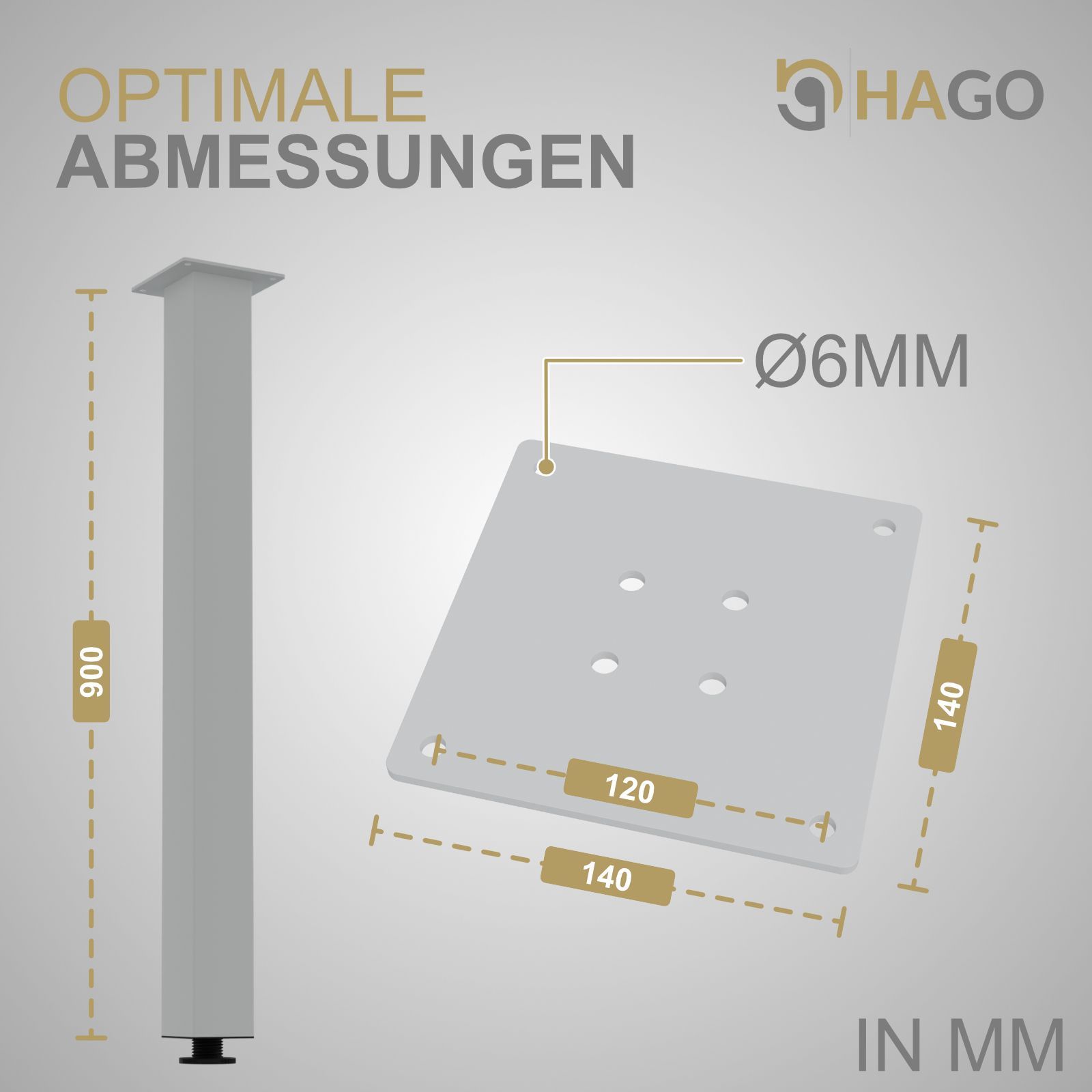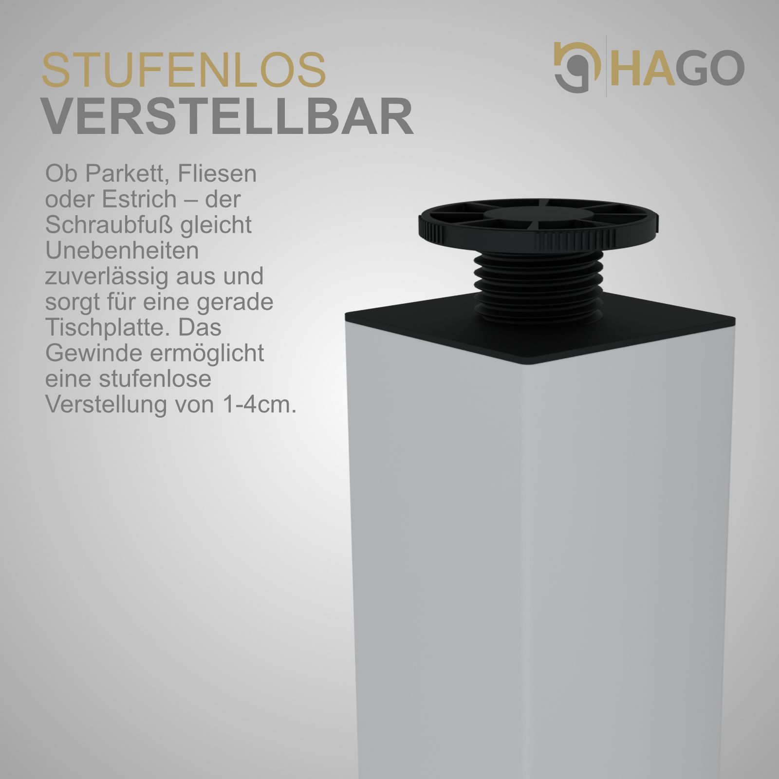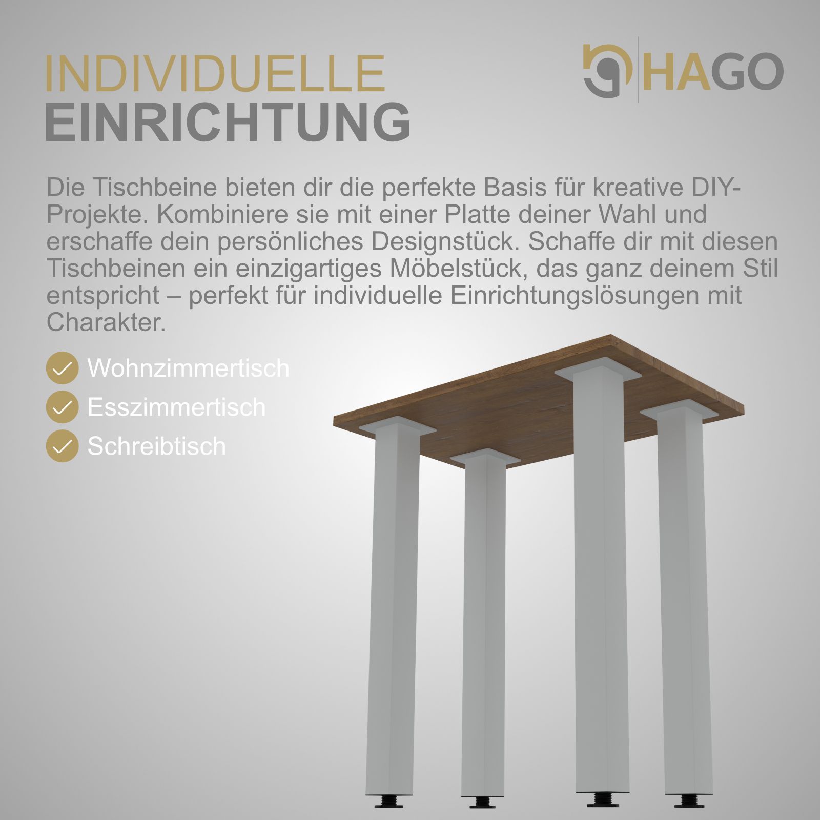 HAGO® Tischbeine 4er-Set 8x8cm höhenverstellbar 90cm Möbelfuß Gestell Weiß Stahl