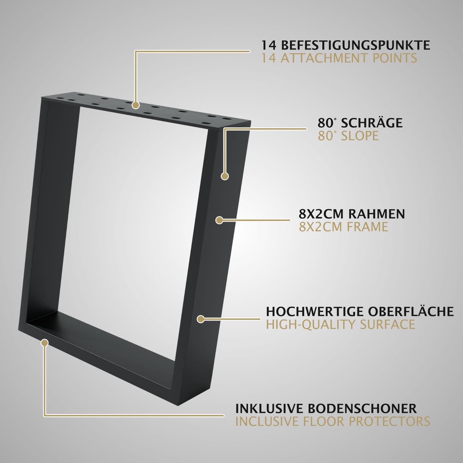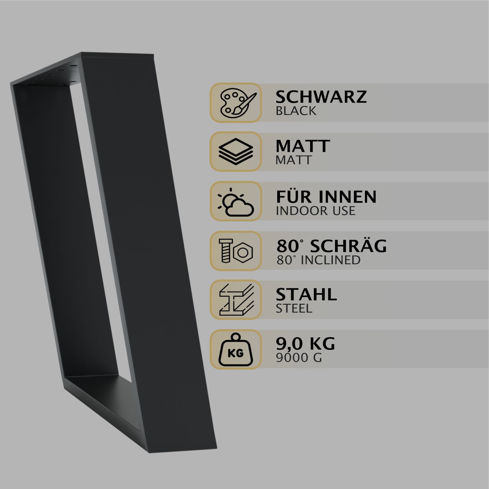 HAGO® Tischkufen 2er Set Tischbeine schräg 80° 40x43cm Schwarz Stahl Bankfüße