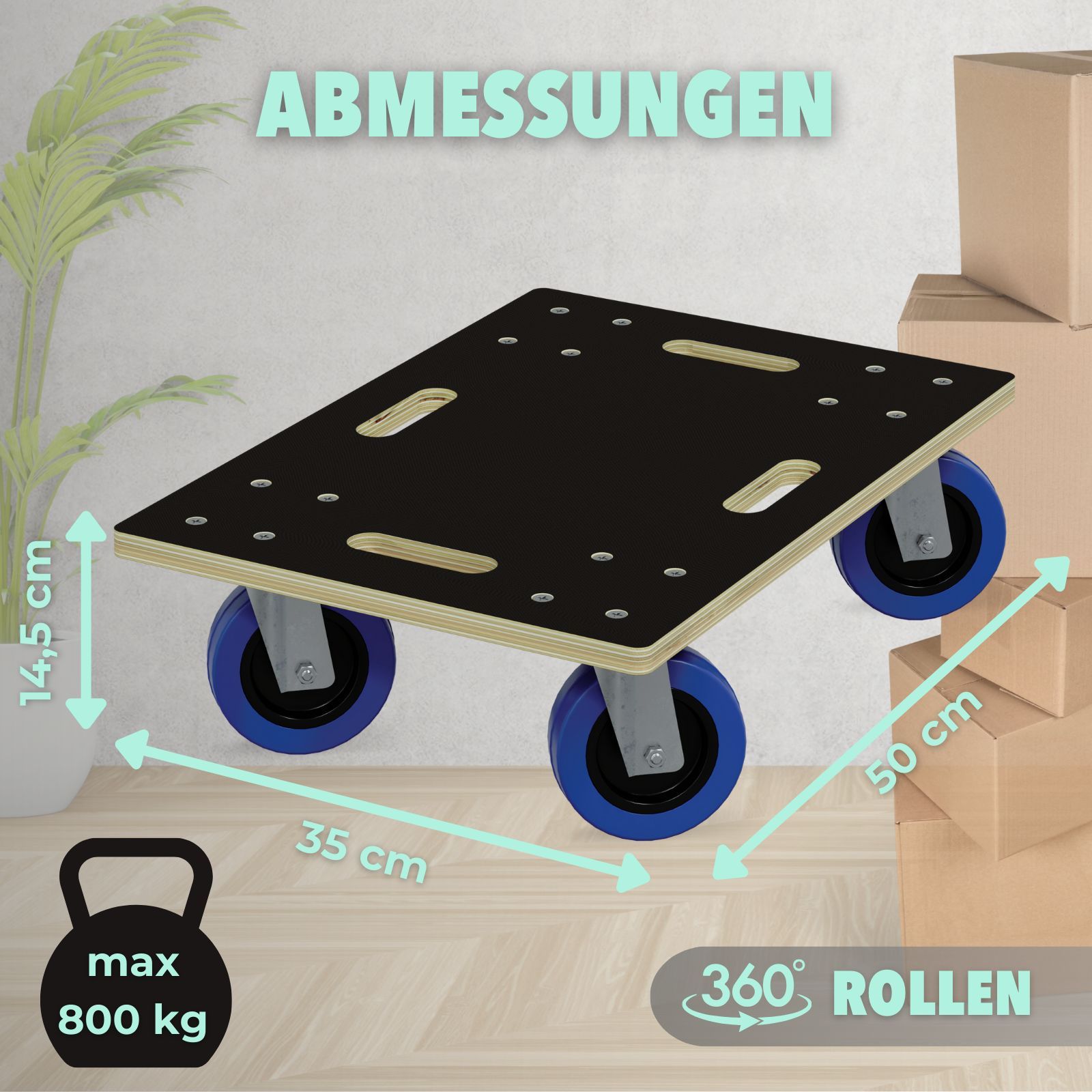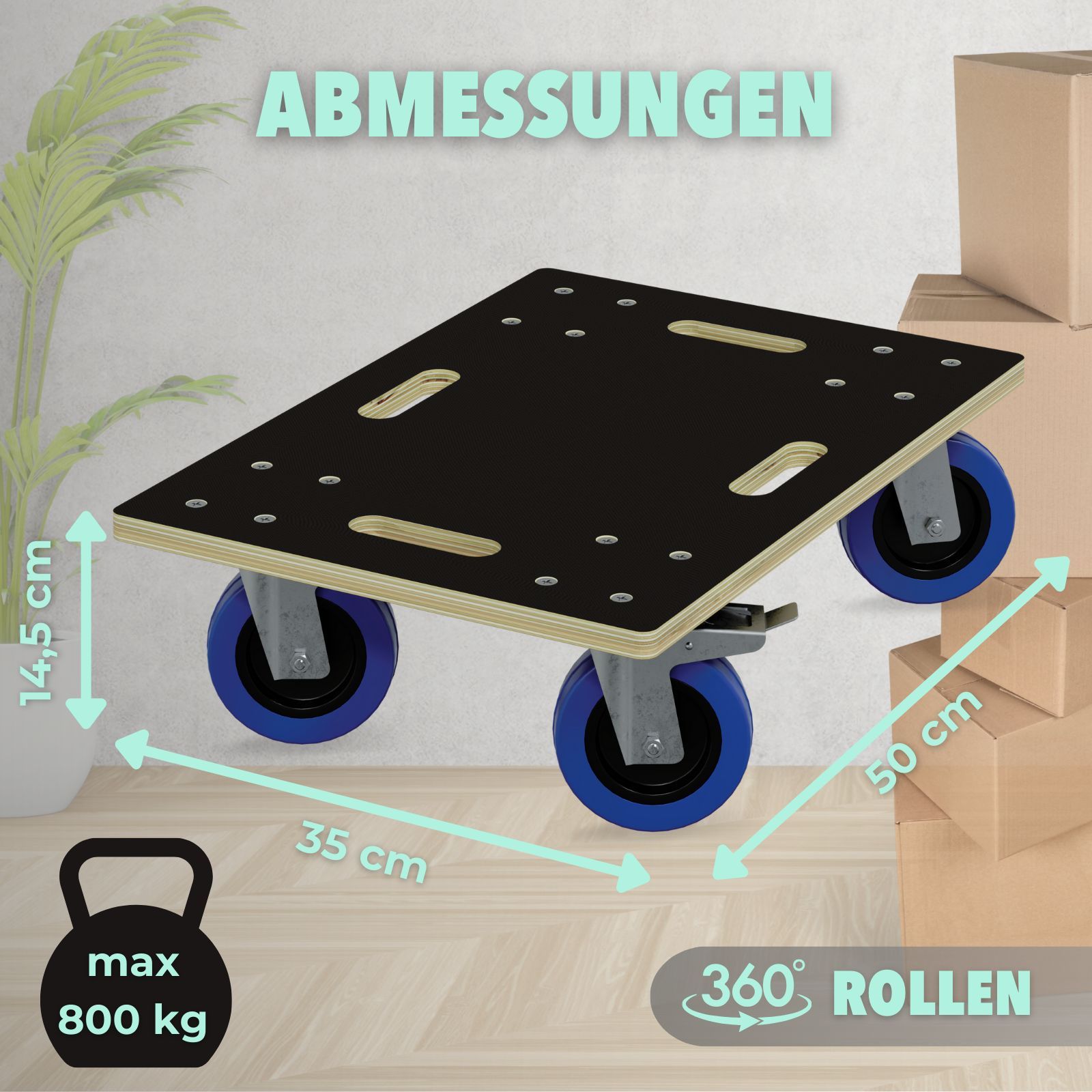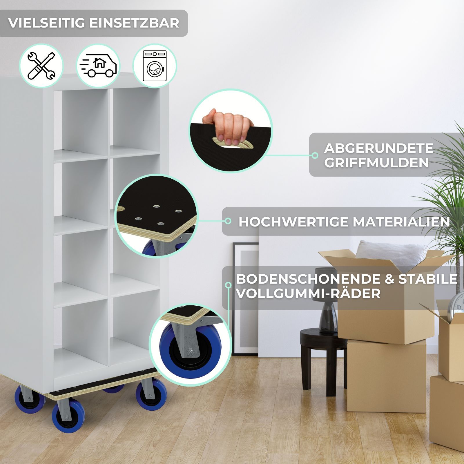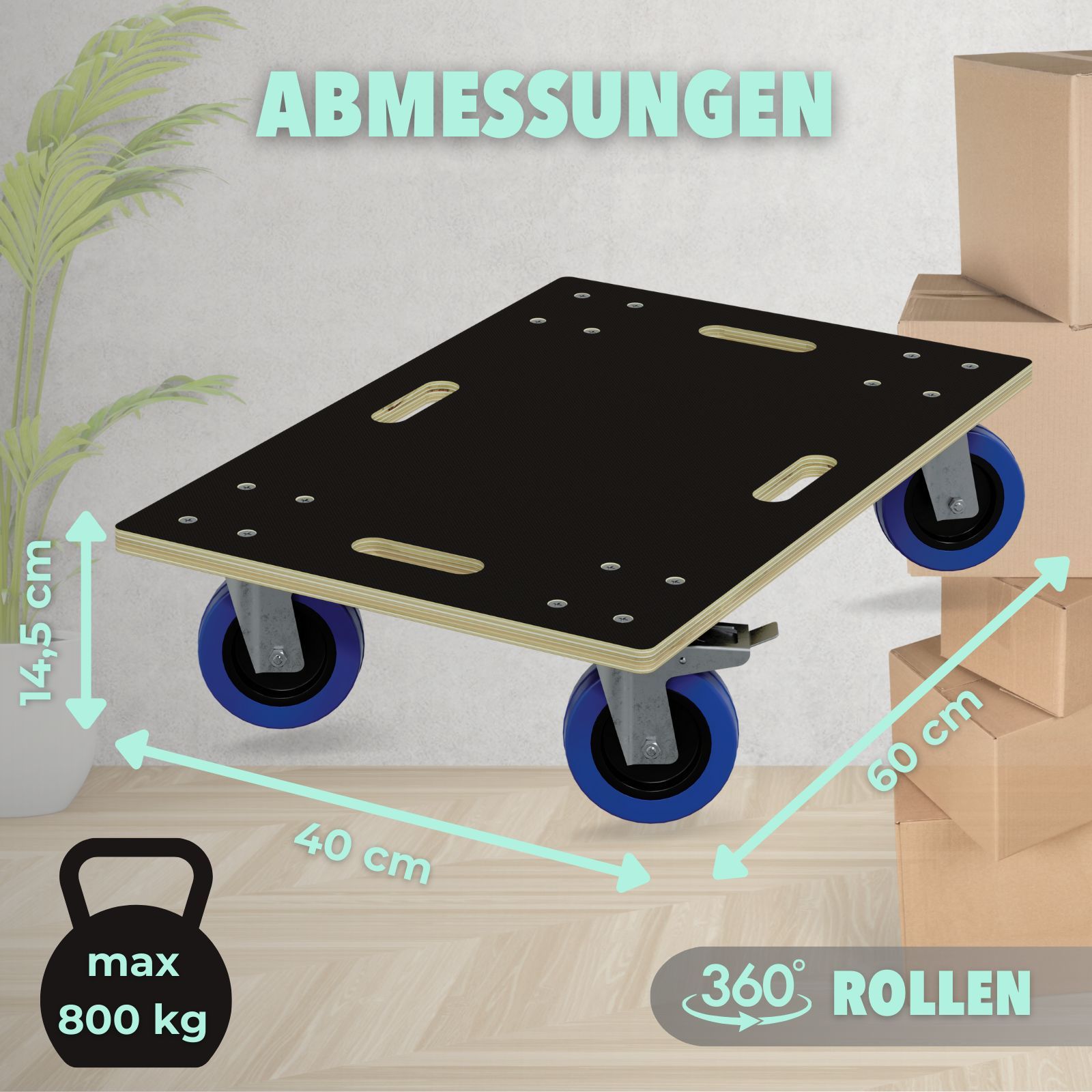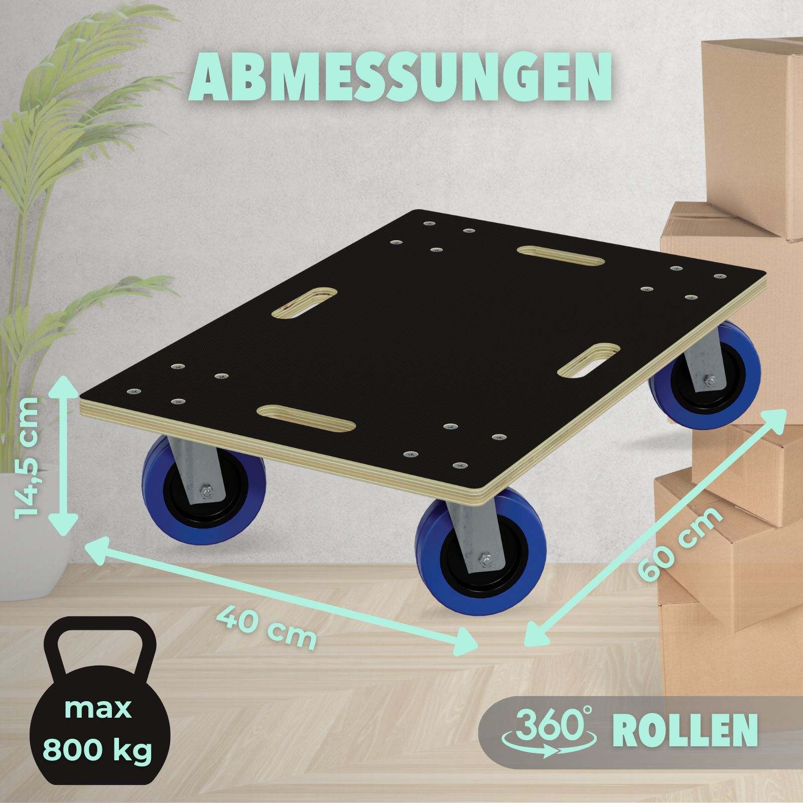 HAGO® Transportroller 800kg Rollbrett Multiplex CNC 18mm Griffmulden Gummirollen