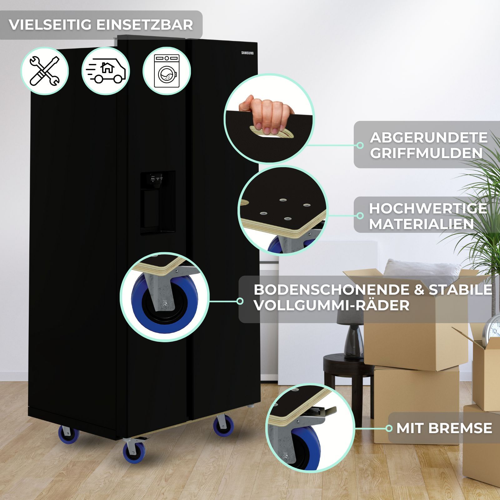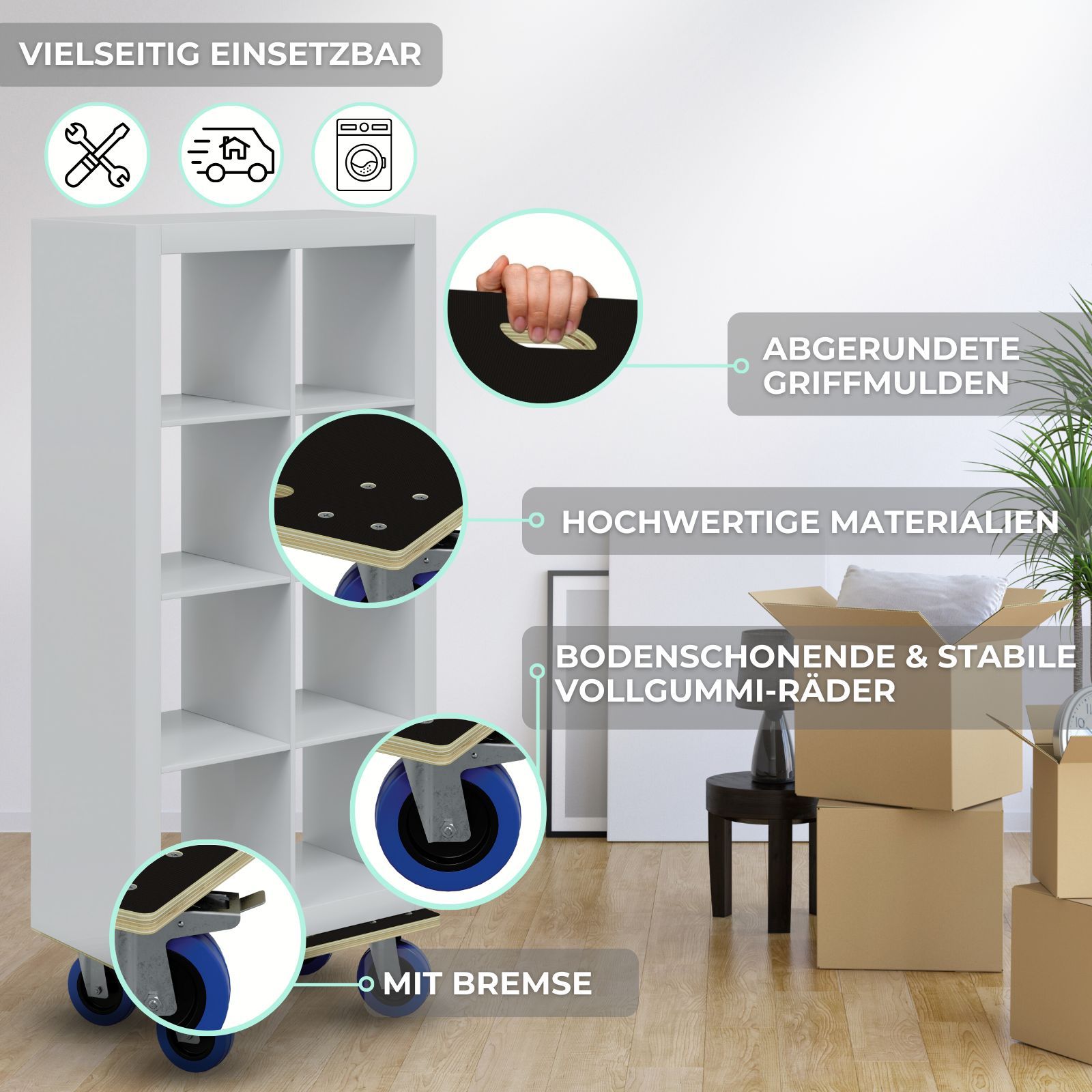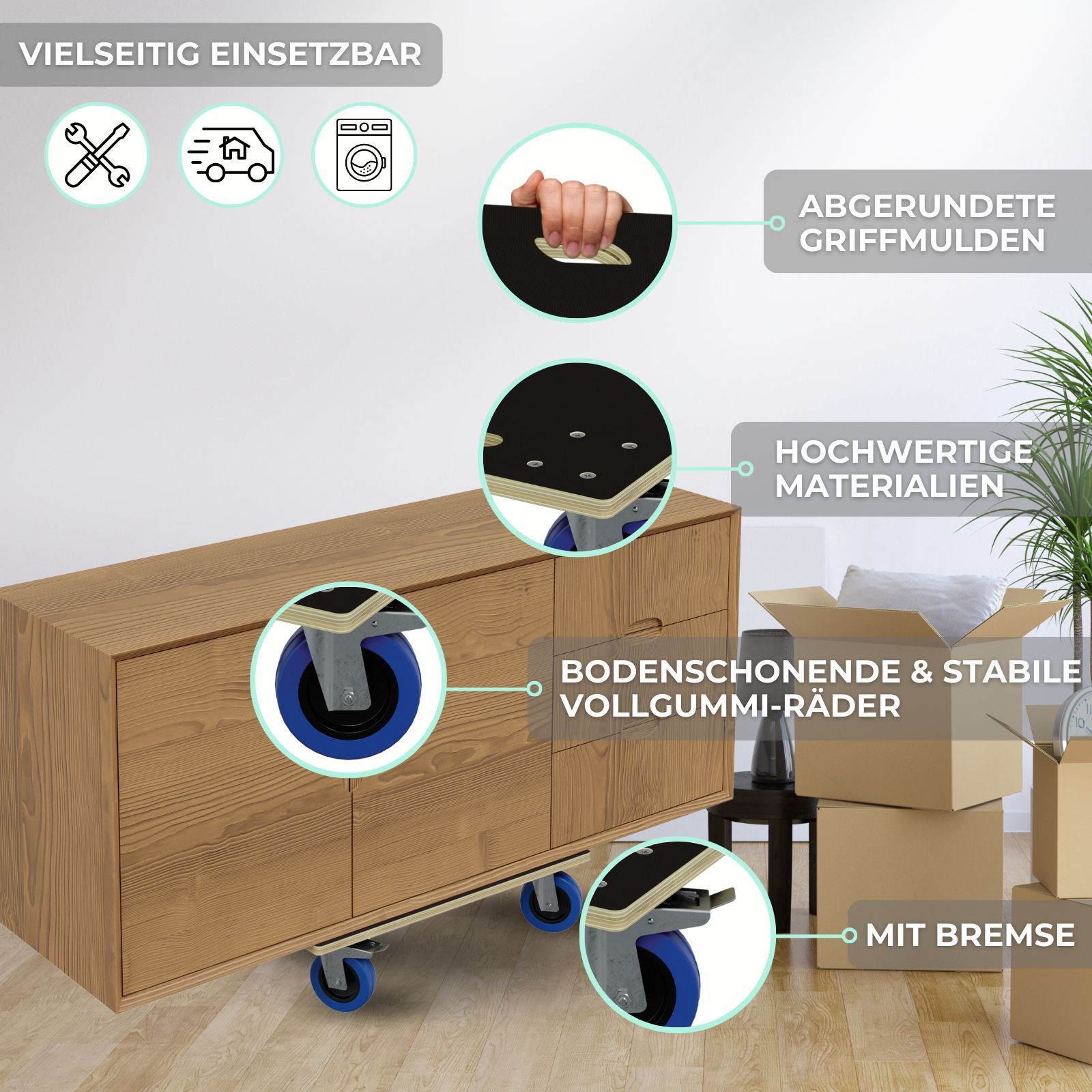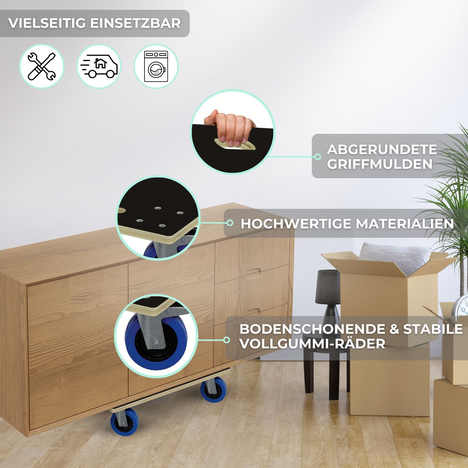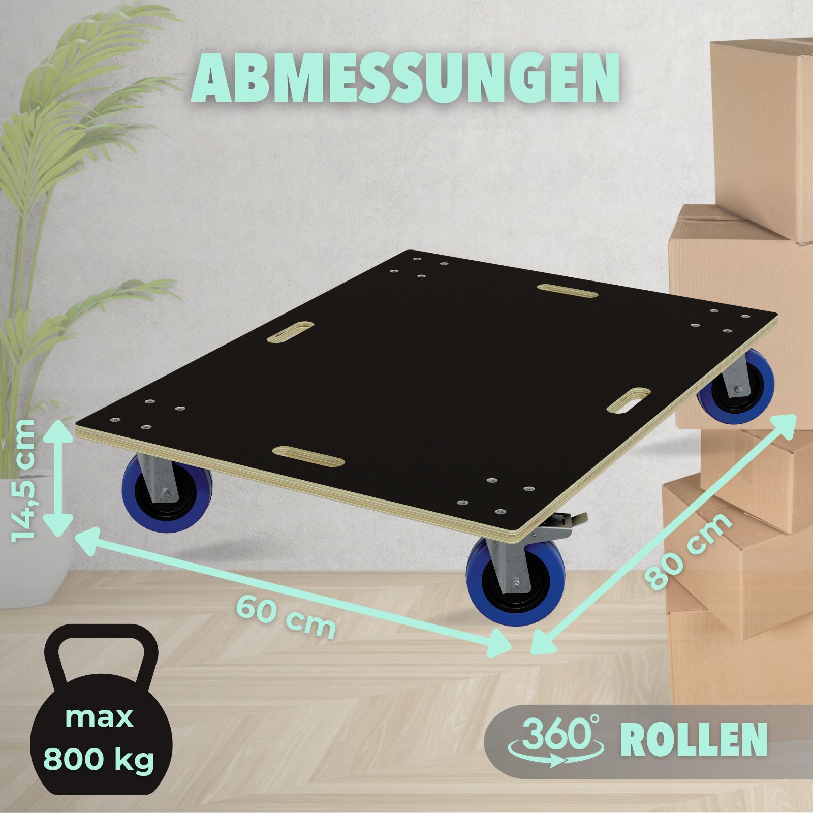 HAGO® Transportroller 800kg Rollbrett Multiplex CNC 18mm Griffmulden Gummirollen