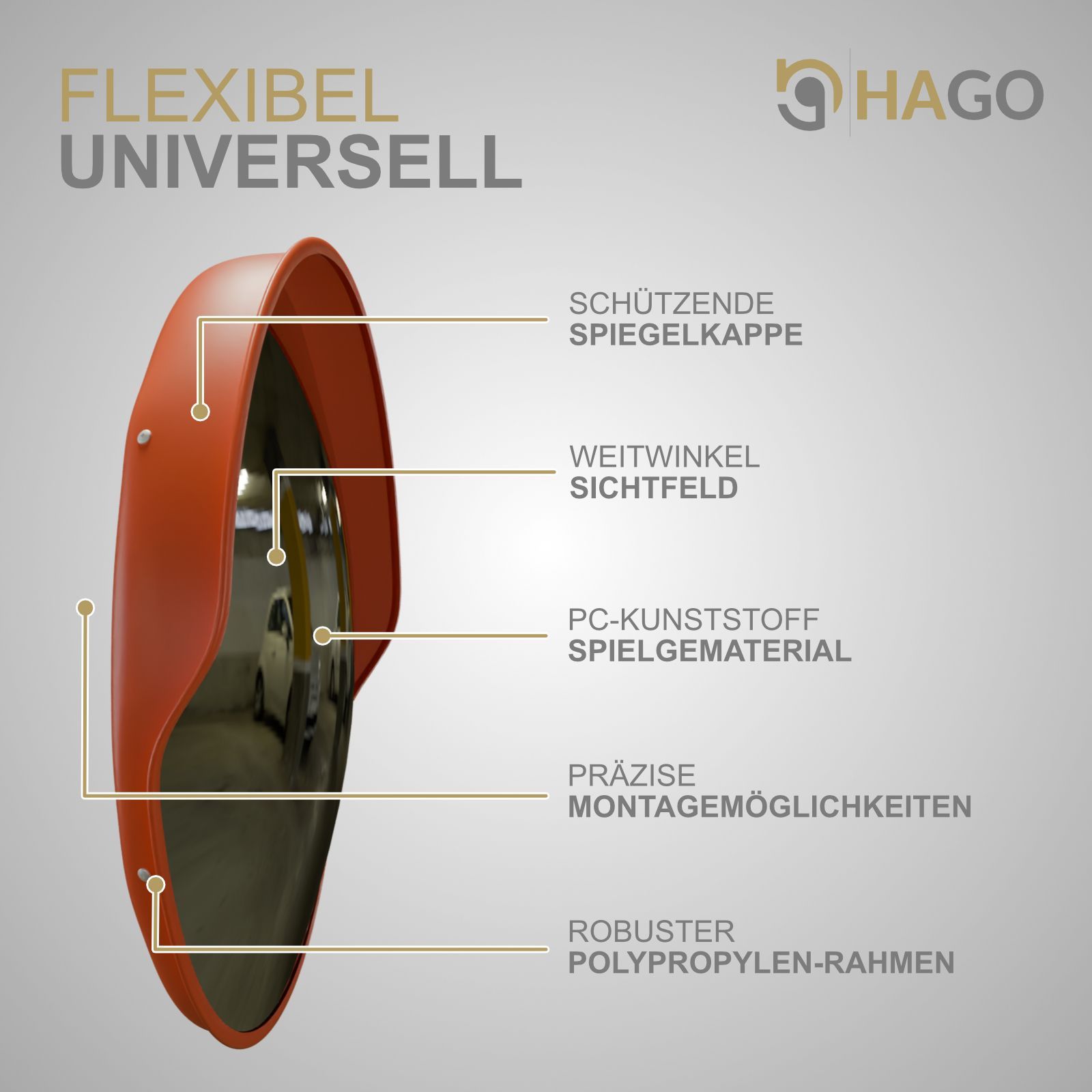 HAGO® Verkehrsspiegel Konvexspiegel Panoramaspiegel Ø30 Outdoor Rot Überwachung