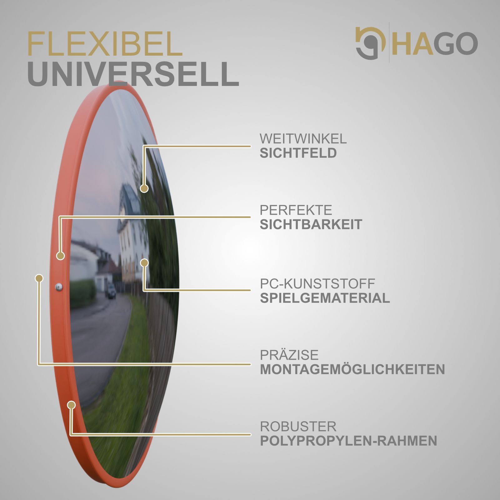 HAGO® Verkehrsspiegel Konvexspiegel Panoramaspiegel Ø43cm Indoor Rot Überwachung