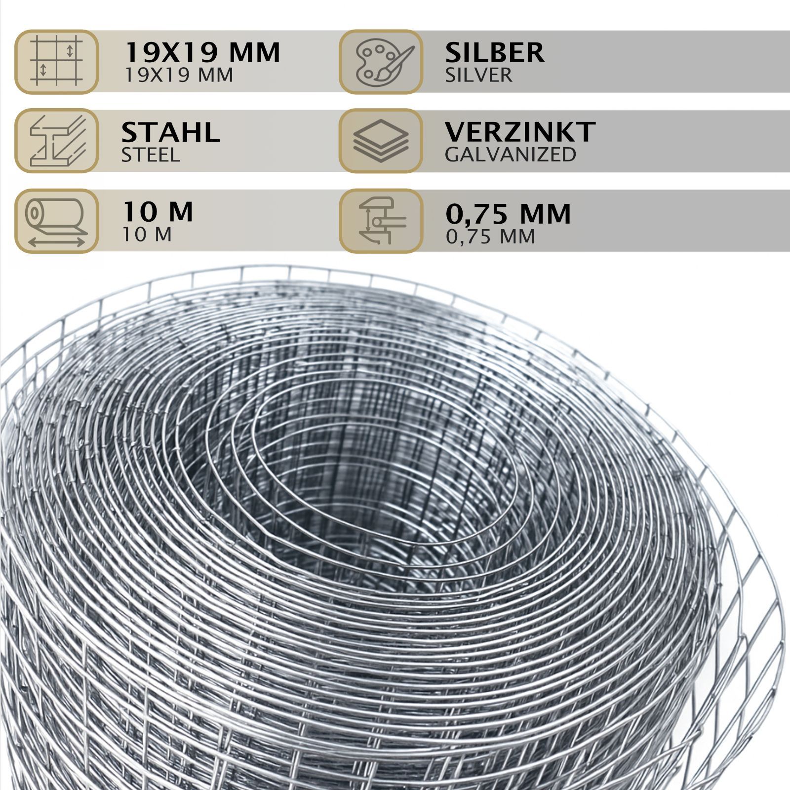 HAGO Volierendraht Drahtgeflecht Stahl verzinkt 10x1m 19x19 0,75mm Gitter Gehege