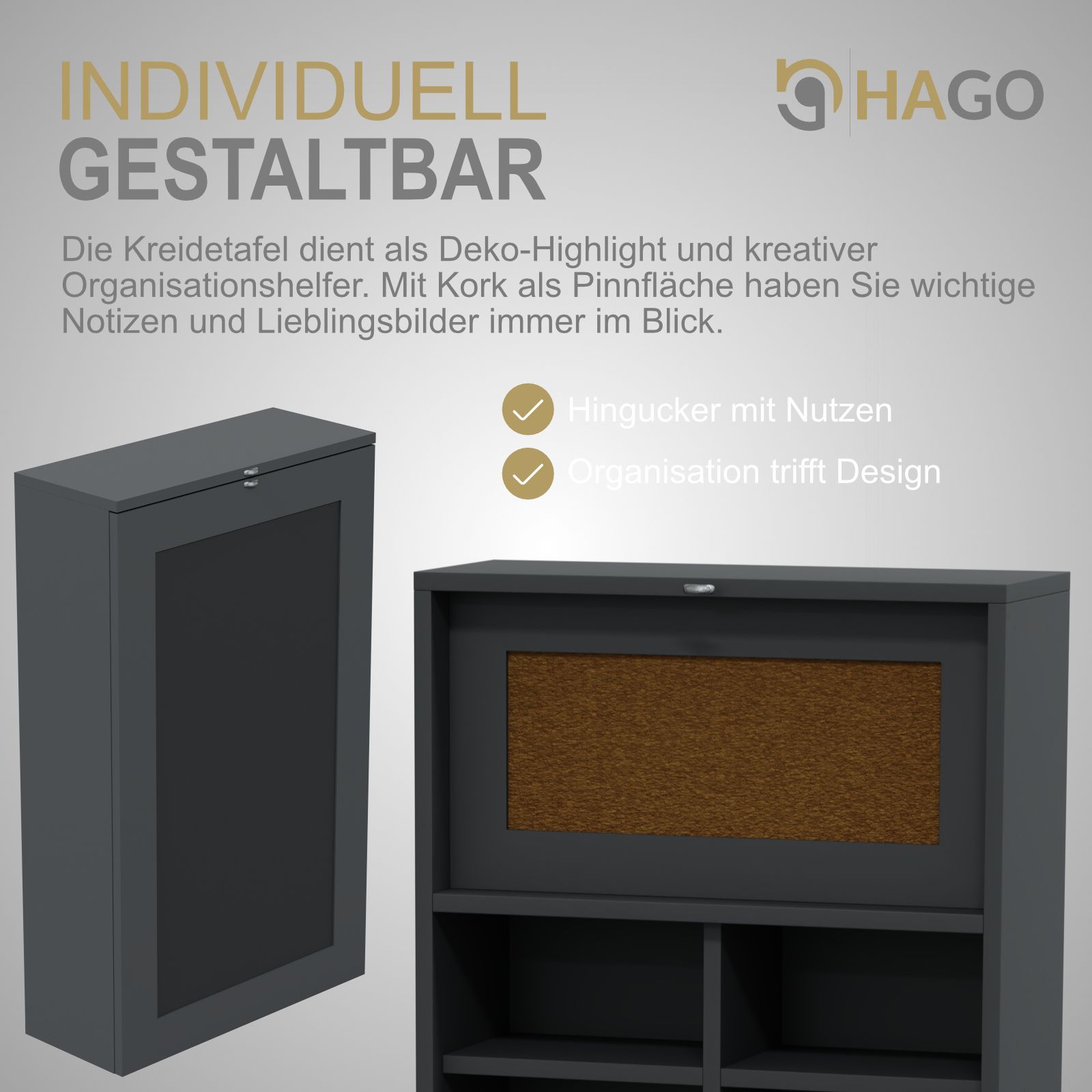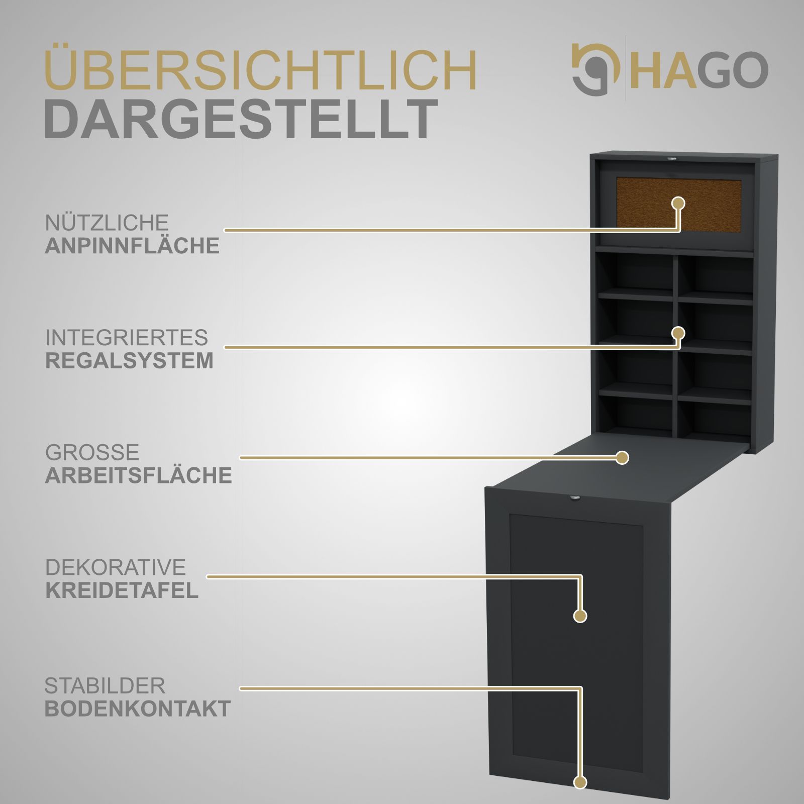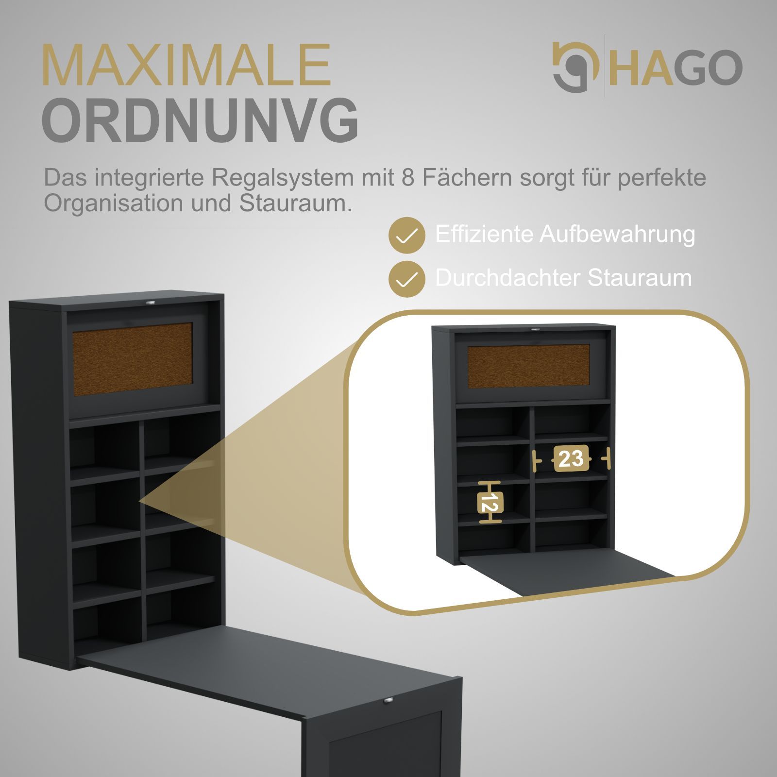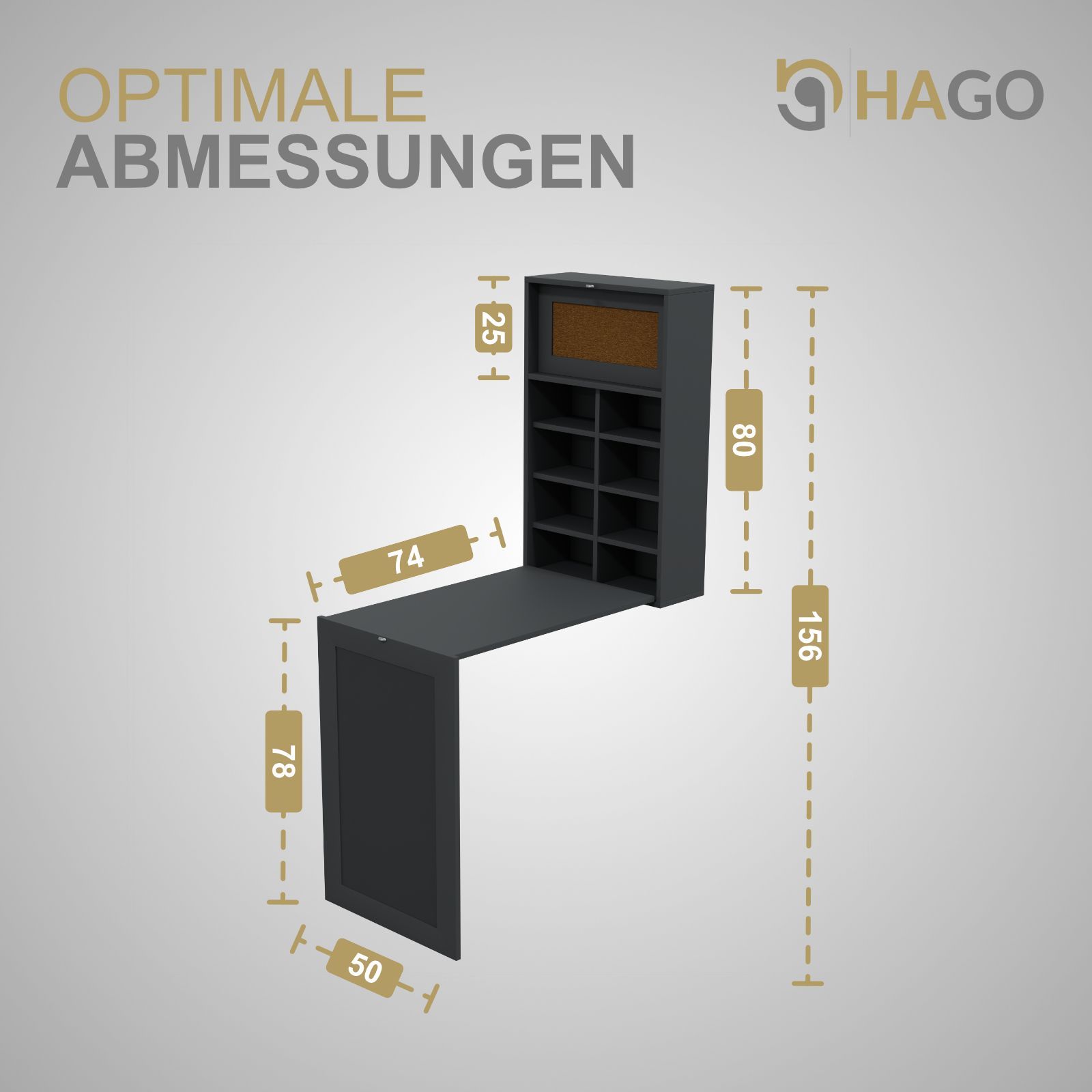 HAGO® Wandklapptisch Grau Regal Schreibtisch Tafel Klappbar Stauraum Pinnwand