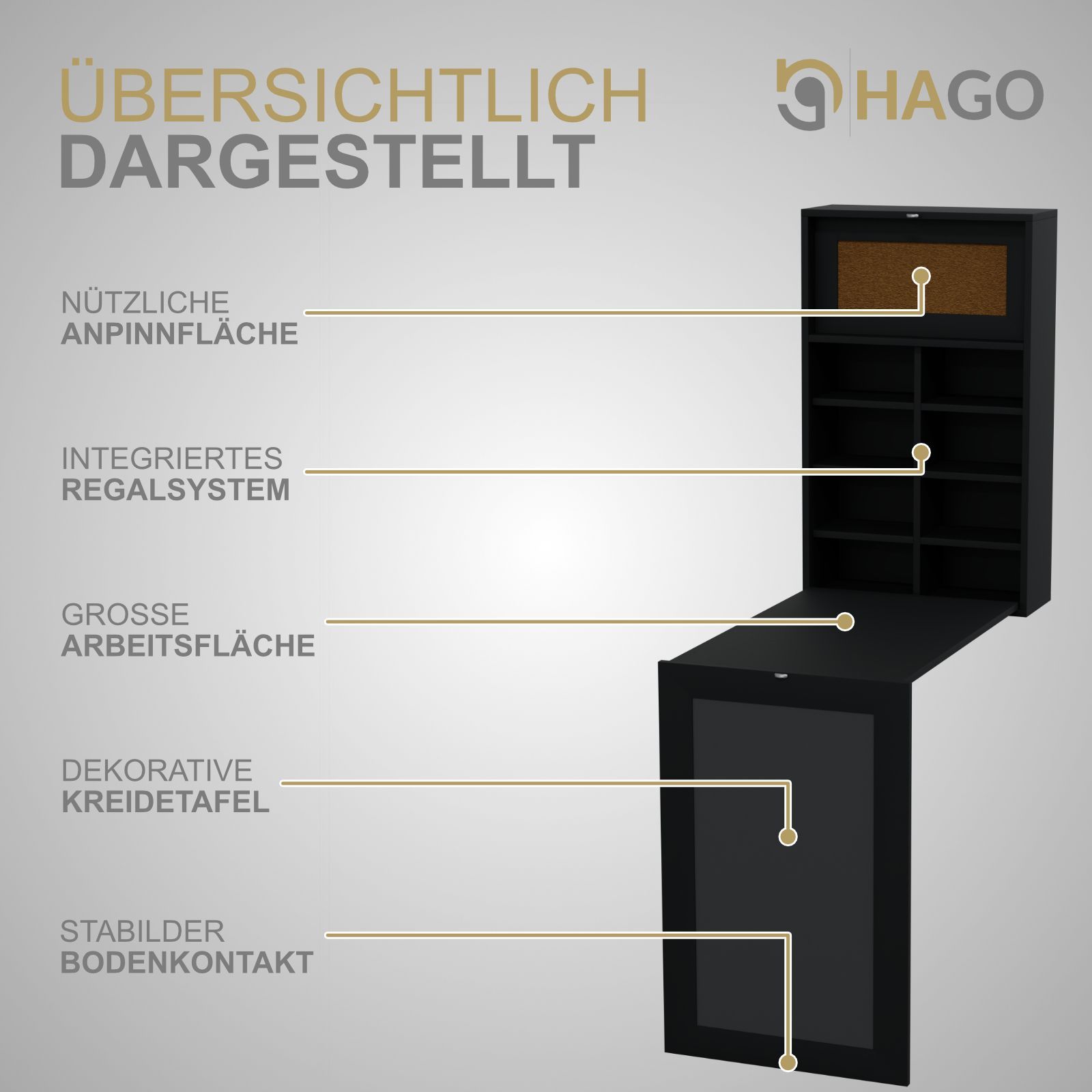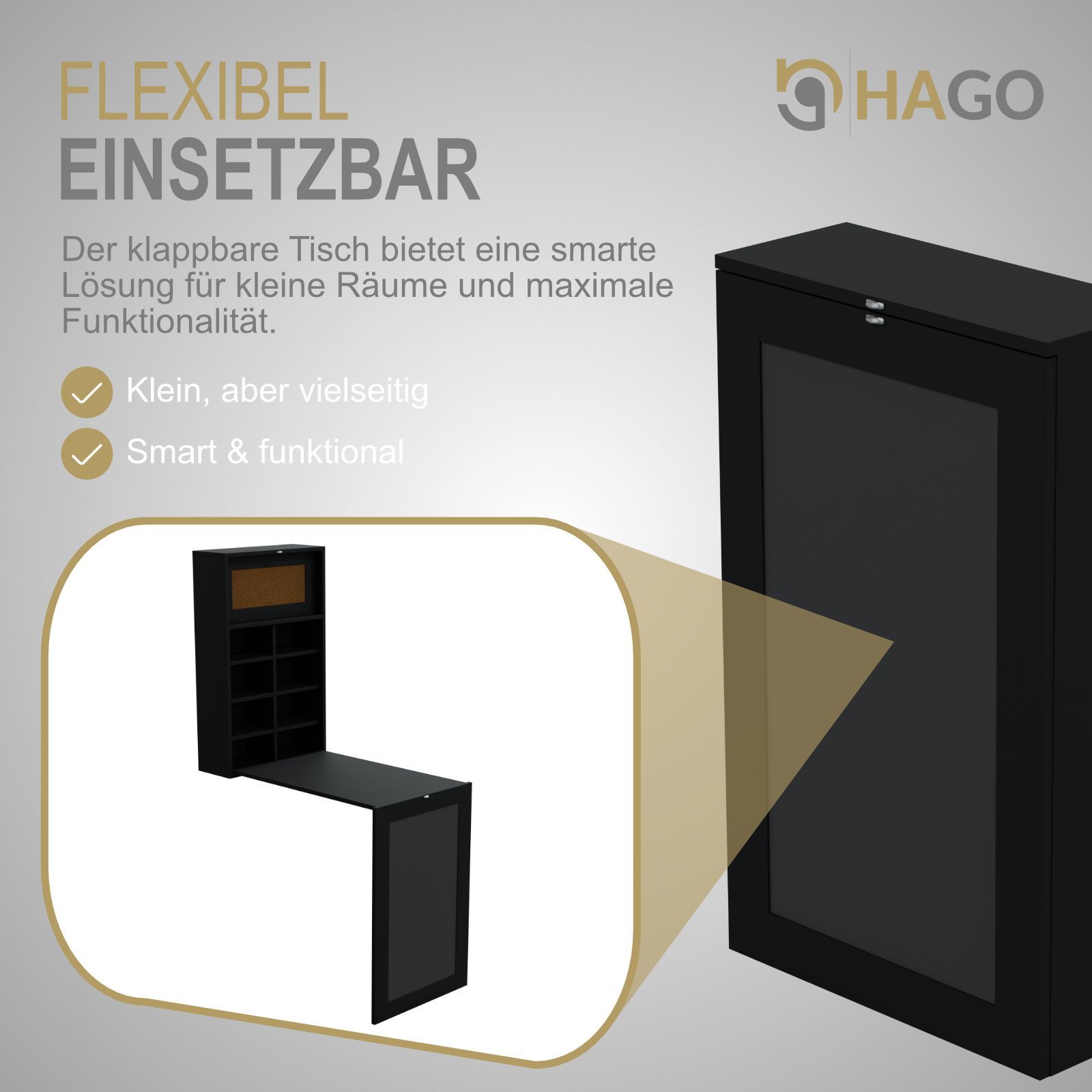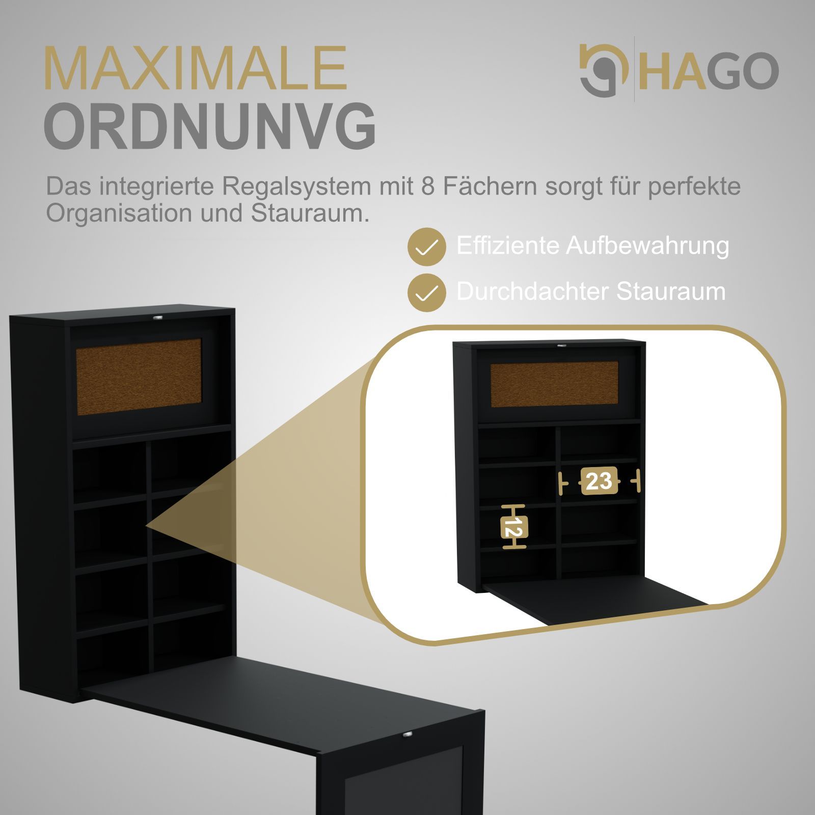 HAGO® Wandklapptisch Schwarz Regal Schreibtisch Tafel Klappbar Stauraum Pinnwand