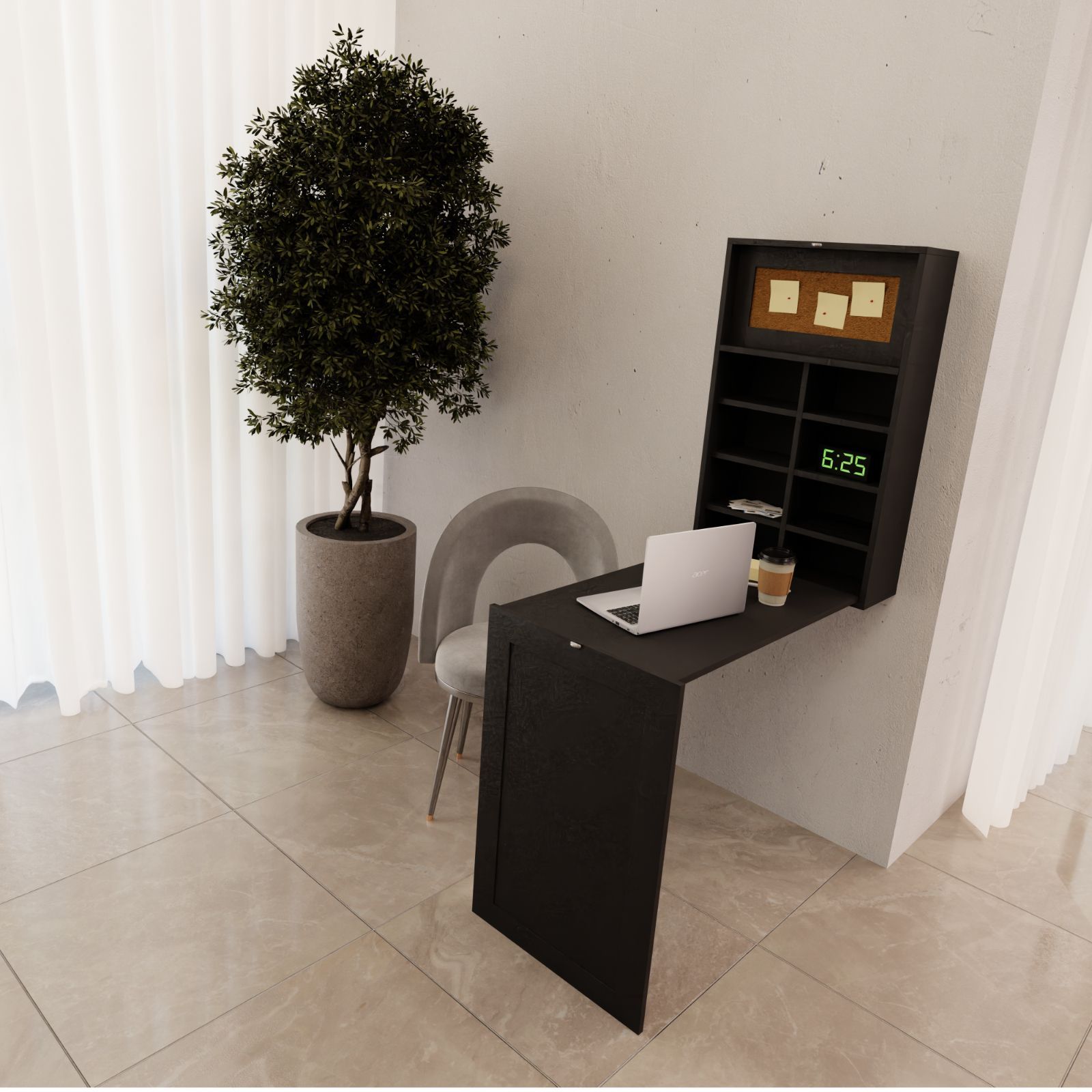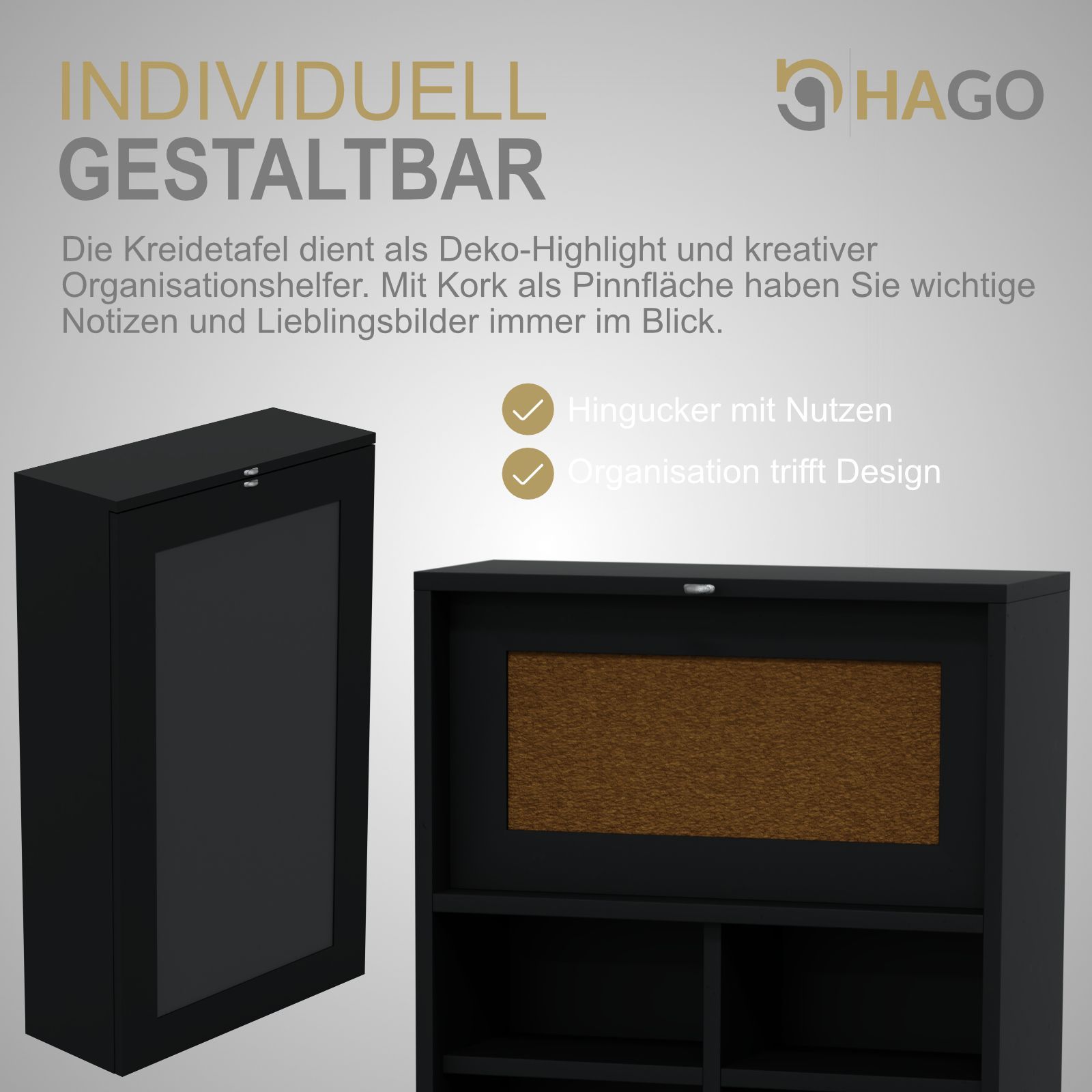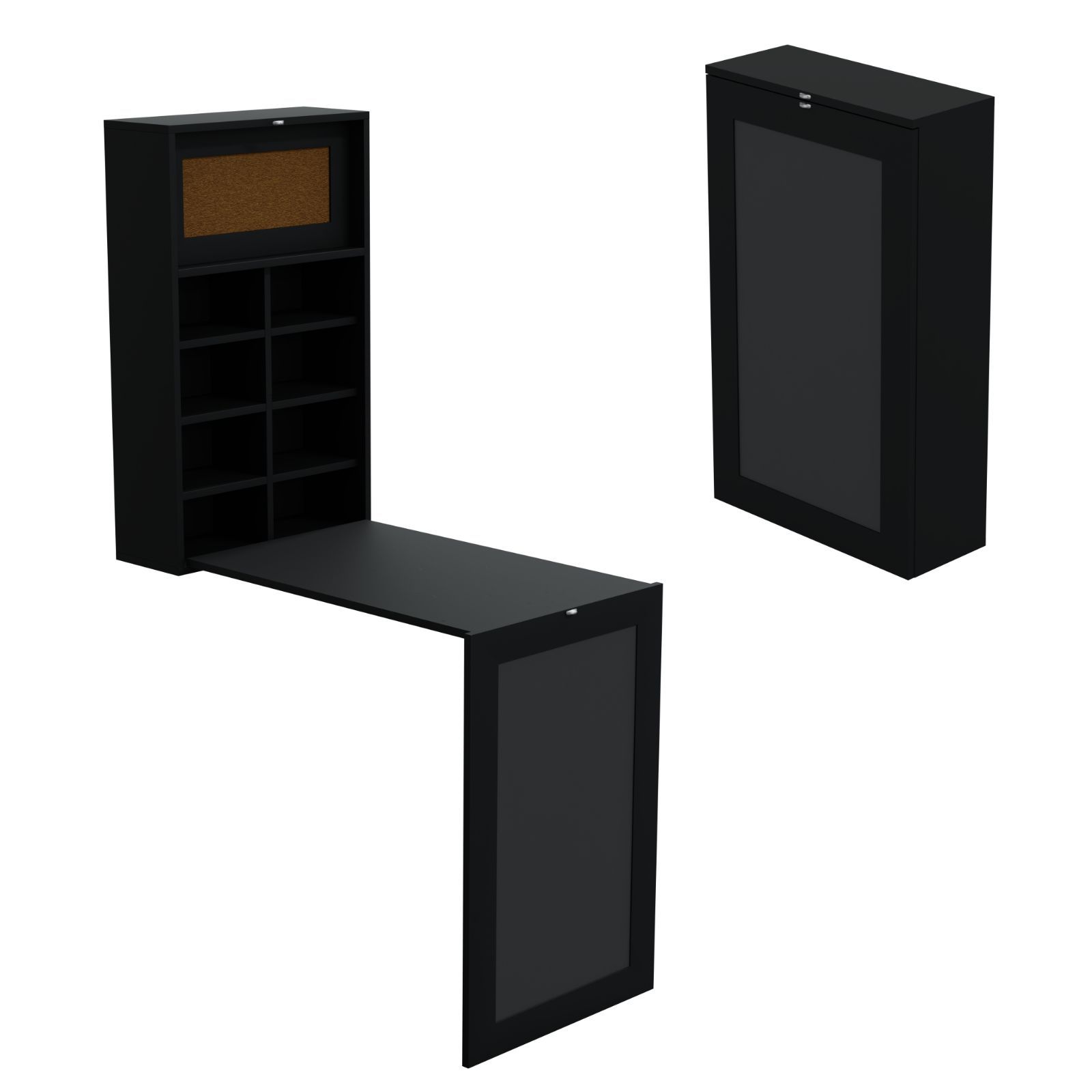 HAGO® Wandklapptisch Schwarz Regal Schreibtisch Tafel Klappbar Stauraum Pinnwand