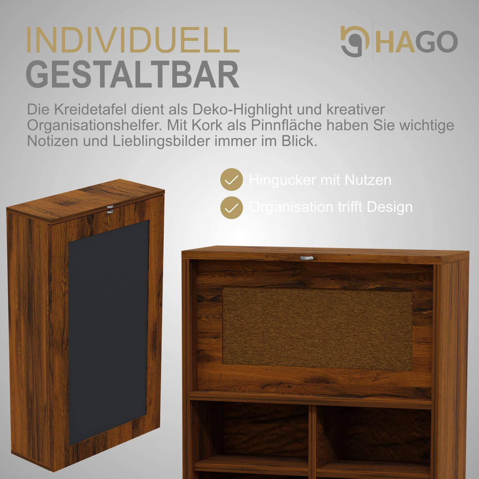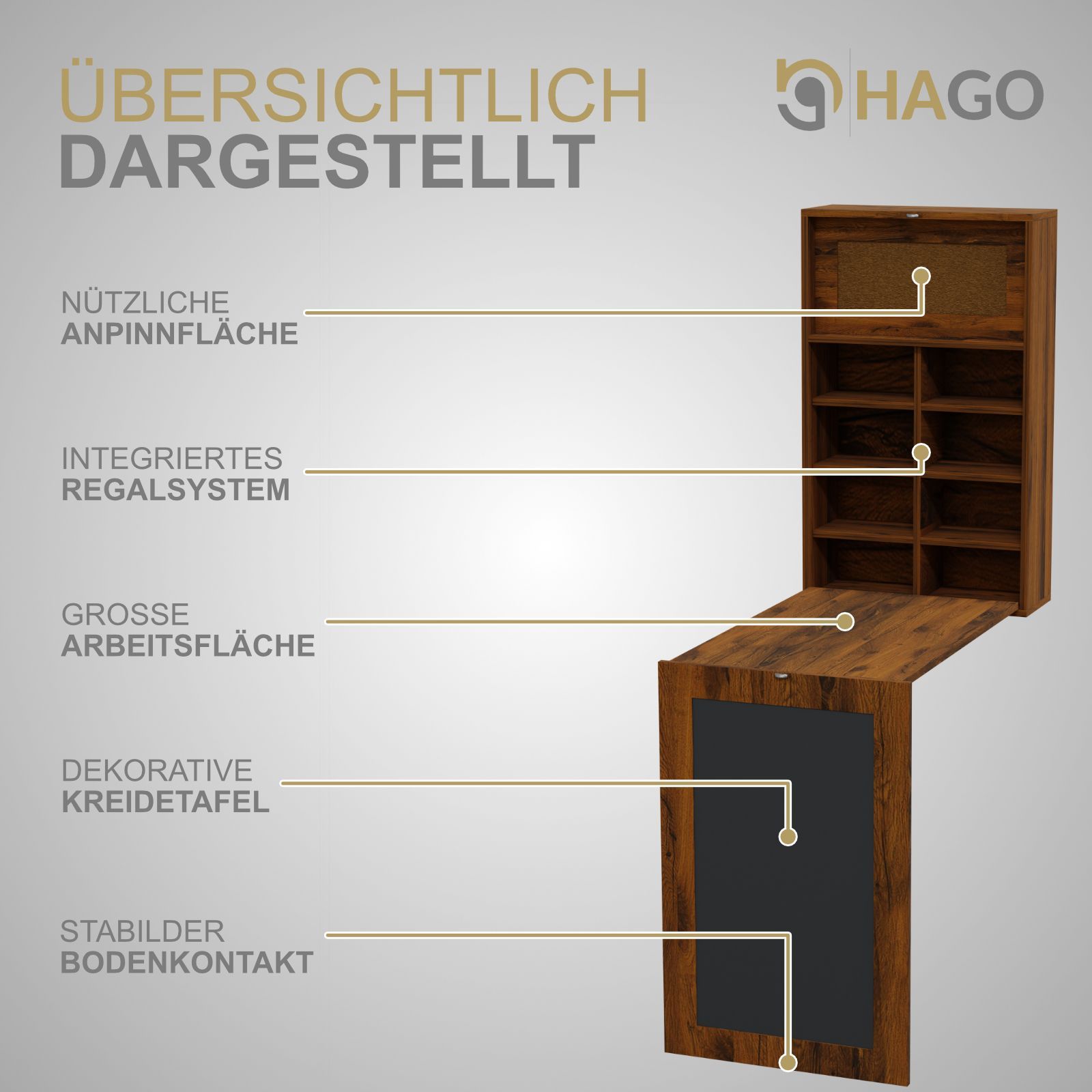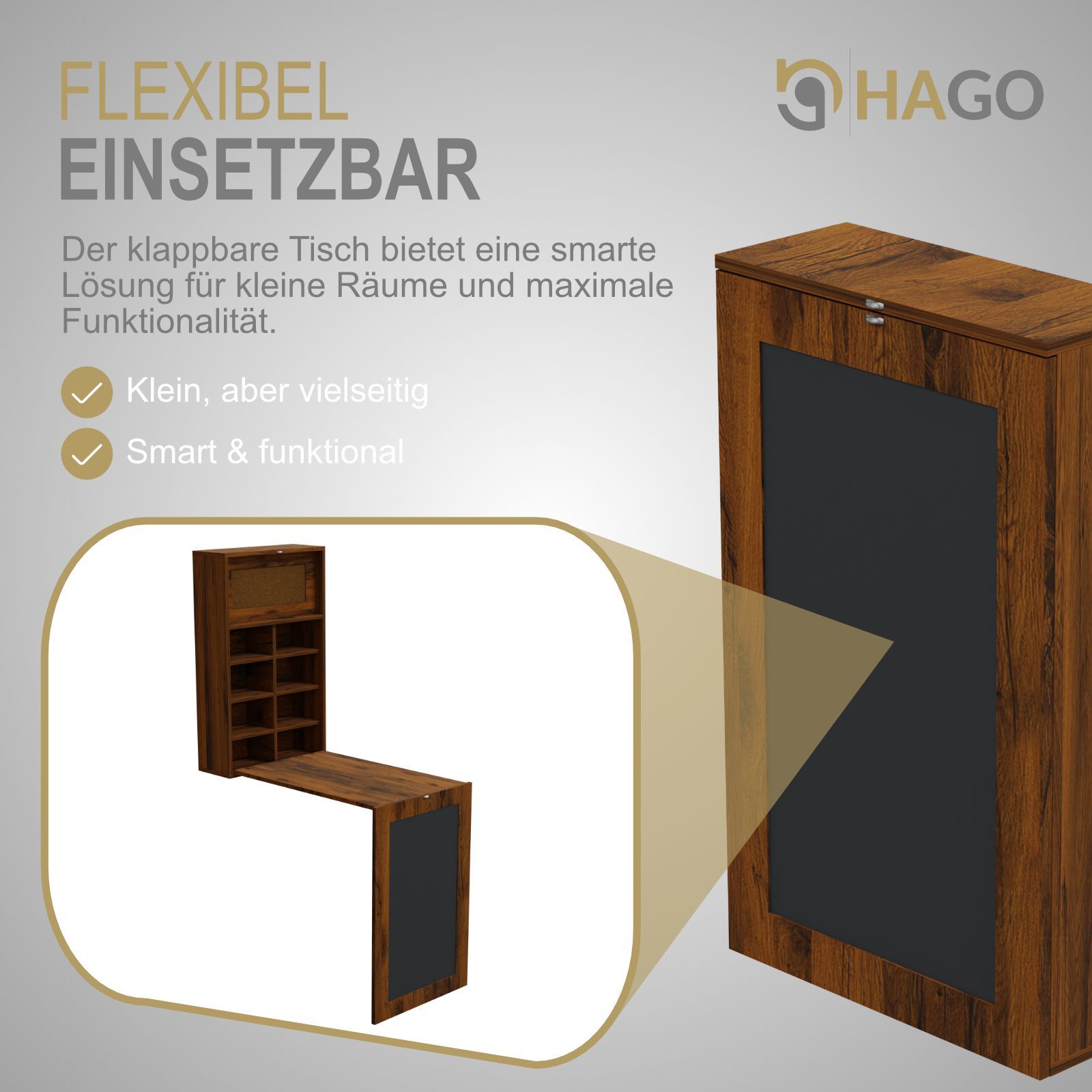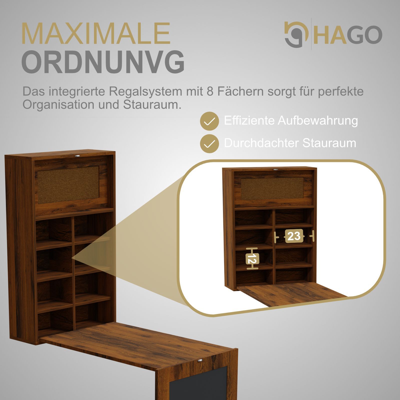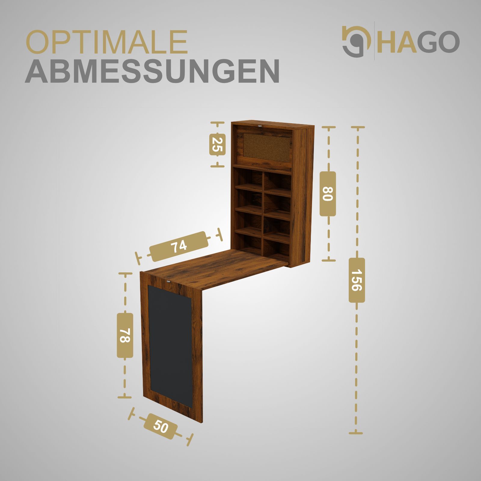 HAGO® Wandklapptisch Vintage Regal Schreibtisch Tafel Klappbar Stauraum Pinnwand