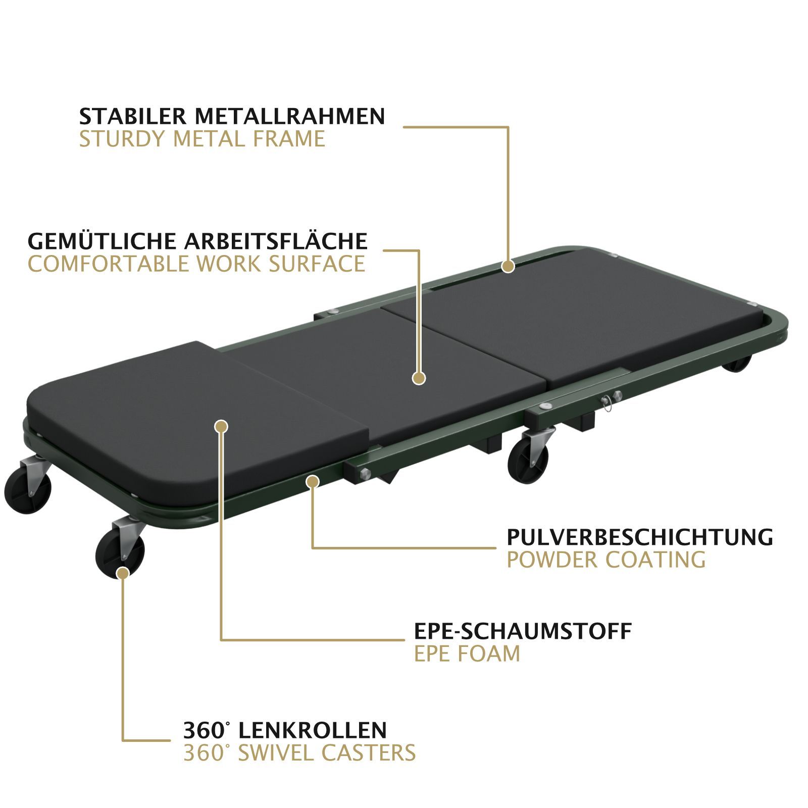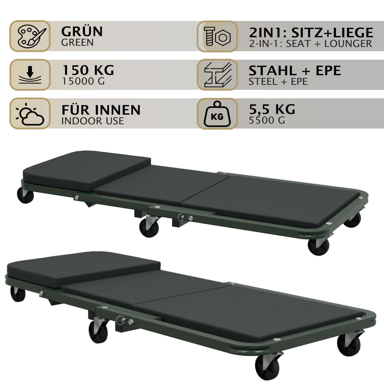 HAGO® Werkstatthocker Rollbrett Montageliege Sitz Klappbar Stahl 150kg Sitzbrett