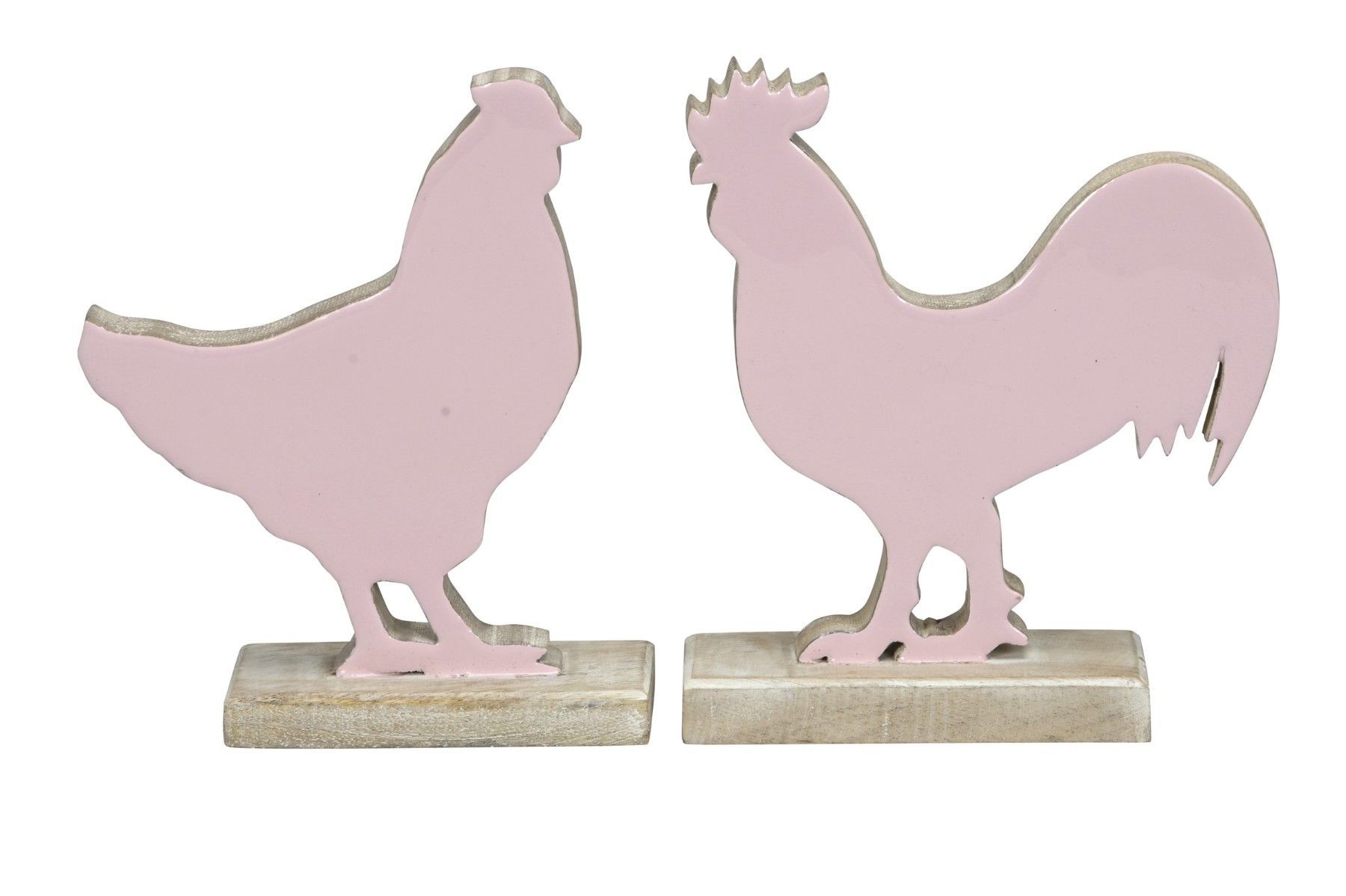 Hahn Huhn 2fach sort. Mangoholz rosa Osterdeko 19x6 H22cm Osterdekoration