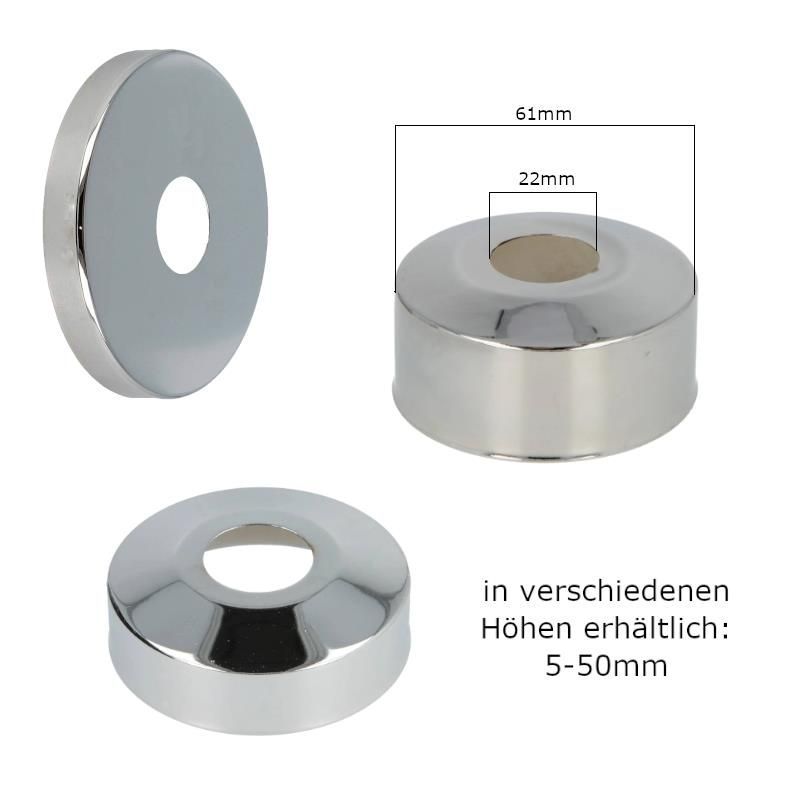 Hahnrosette DN15, Messing verchromt 1/2", Innen Ø22 mm, Außen Ø61 mm, verschiedene