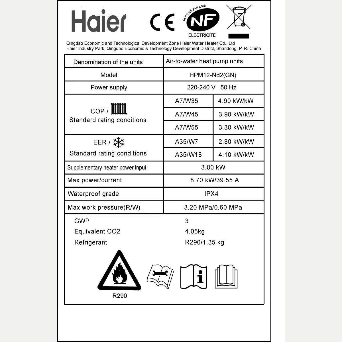Haier Luft/Wasser Monoblock Wärmepumpe 14 KW R290 HPM14-Nd2 A