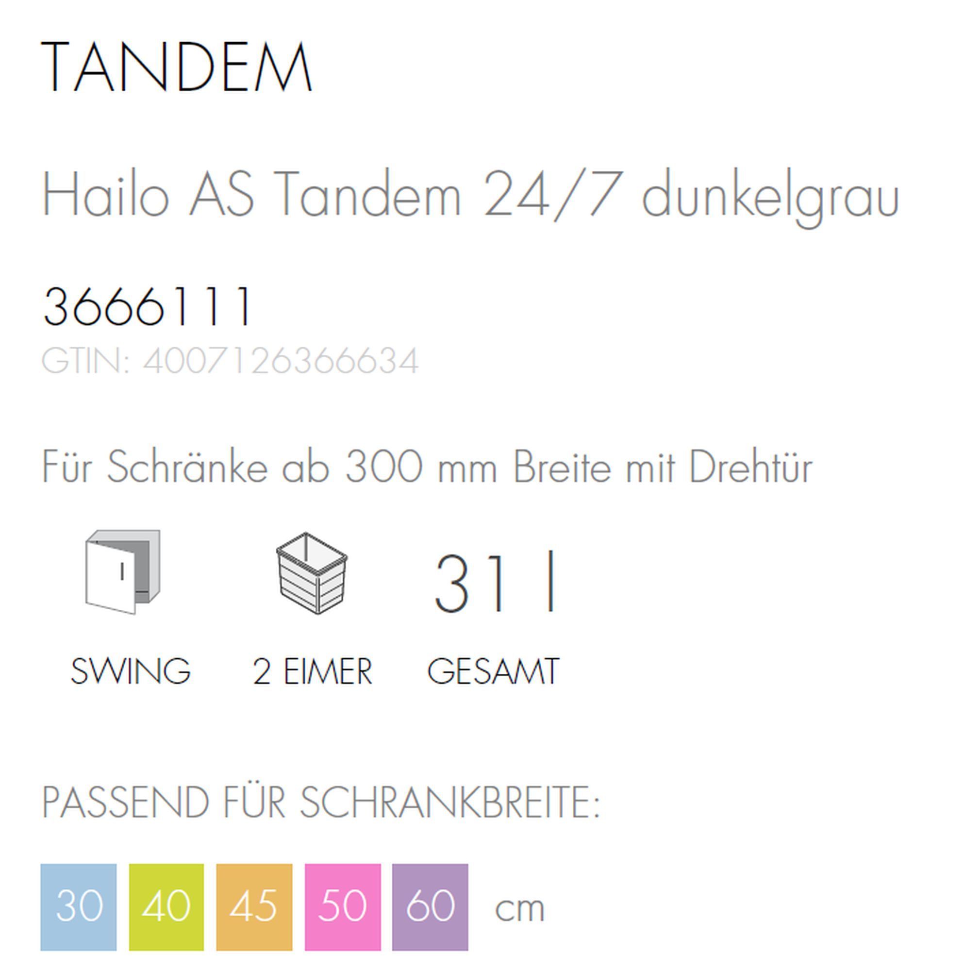 Hailo Mülleimer Küche, Einbau ab 30cm Schrank, Trennsystem 2 Fächer