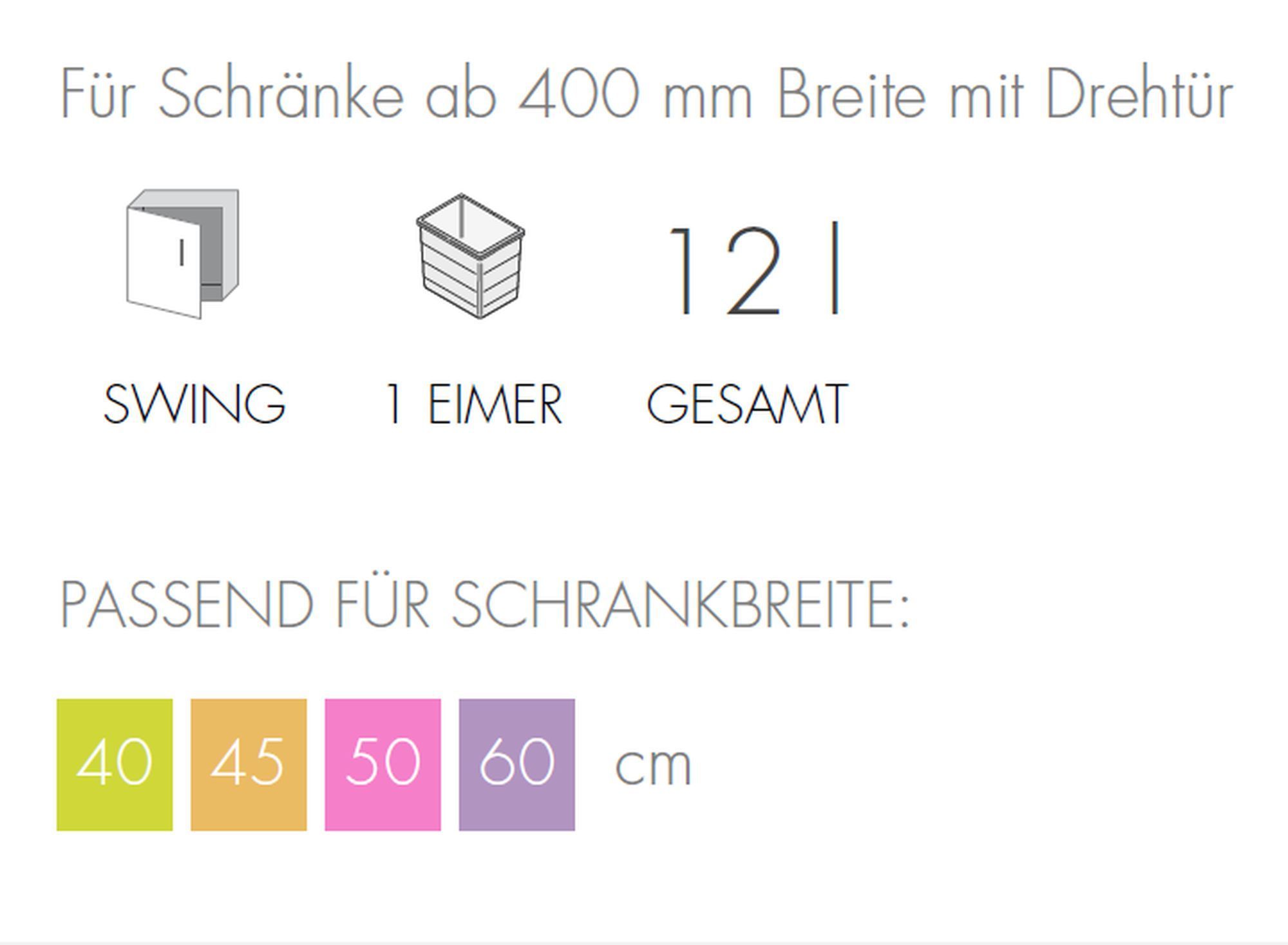 Hailo Mülleimer Küche, Einbau ab 40cm Schrank, Kosmetikeimer 12 L