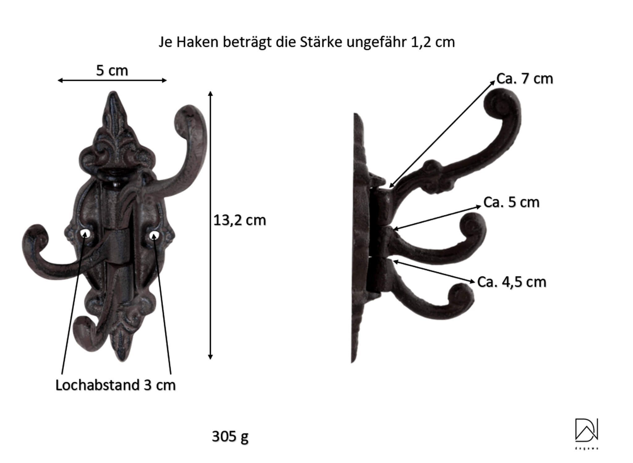 Haken Garderobe Handtuchhaken Wandhaken Landhaus Guss drehbar schwarz-braun