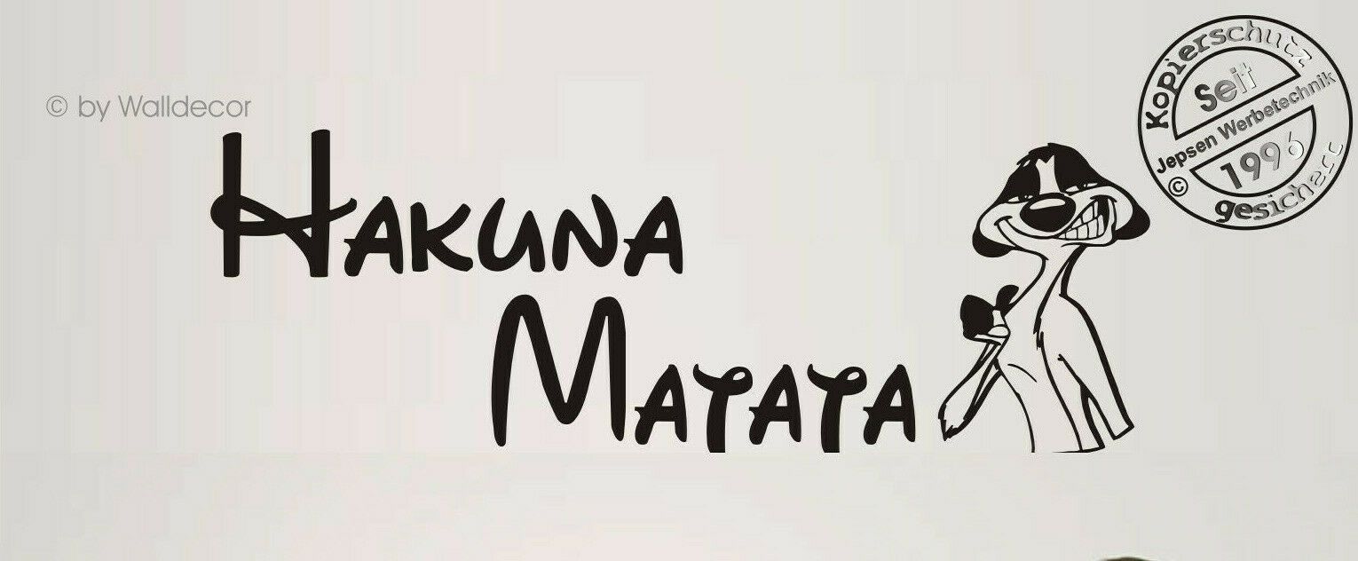 Aufkleber für Wände, Auto, Wohnmobil, Bus und Lkw ... Hakuna Matata Größe: ca 80x27cm Weitere Größen und Motive HIER (Abb teilweise vergrößert) Farbe: nach Wunsch mitteilen TIPP: Glanz Folie für glatte Oberflächen - matte Folie für Wandtattoos.