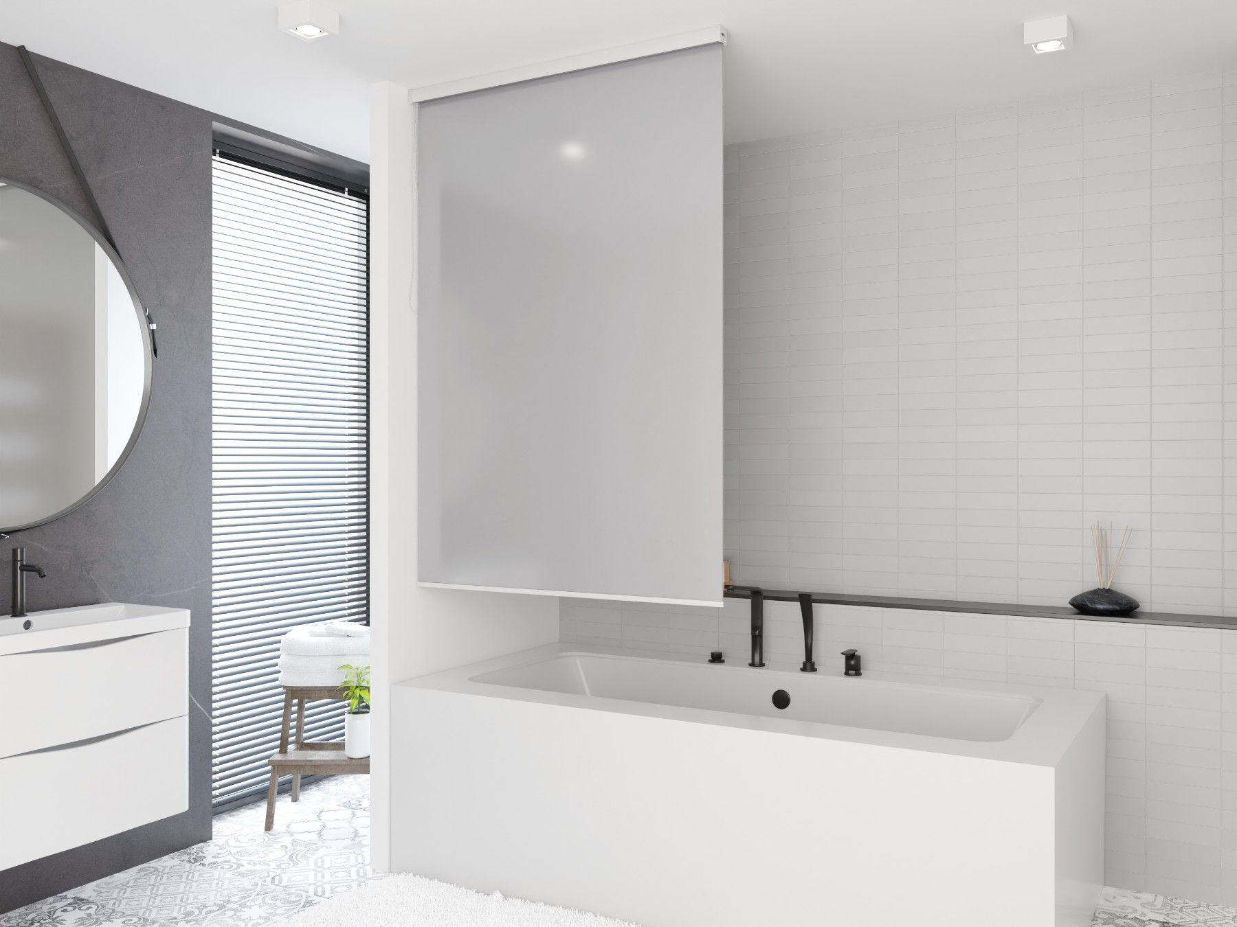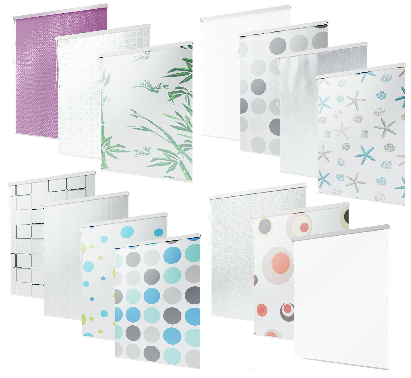 Halb-Kassetten Duschrollo 15 Motive und 13 Breiten zur Wahl Duschvorhang Weiss Grün Schwarz Blau Hellgrau Grau Blätter Havanna