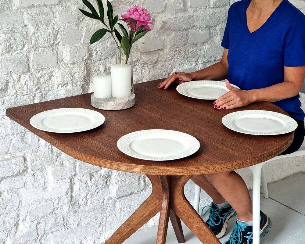 Dieser halbovale Esstisch der Firma Ragaba für 2-4 Personen ist eine praktische Wahl für einen kleinen Raum