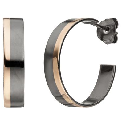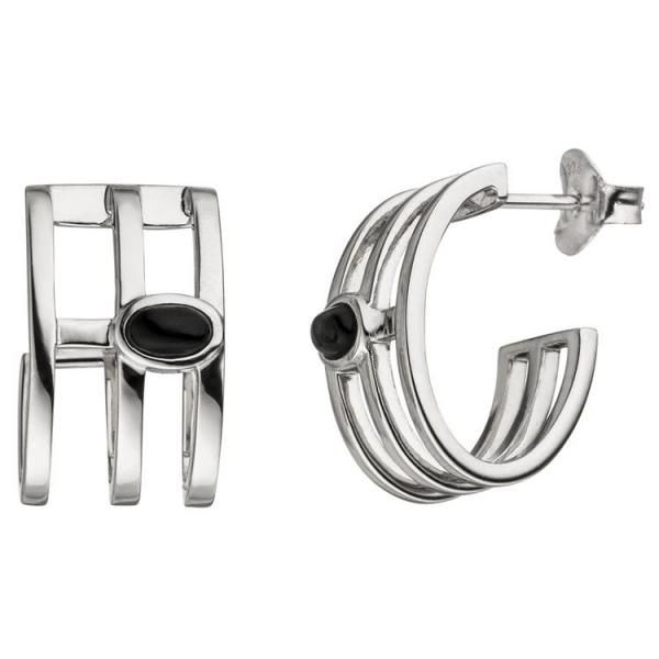 JOBO Halbcreolen 925 Sterling Silber 2 Onyxe Ohrringe Creolen Silberohrringe