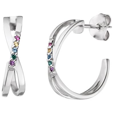 • Halbcreolen 925 Sterling Silber mit 10 Zirkonia Ohrringe Creolen