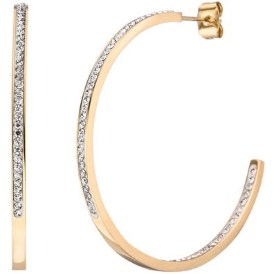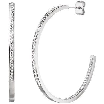 • Halbcreolen Edelstahl mit 134 Kristallsteinen Ohrringe Creolen