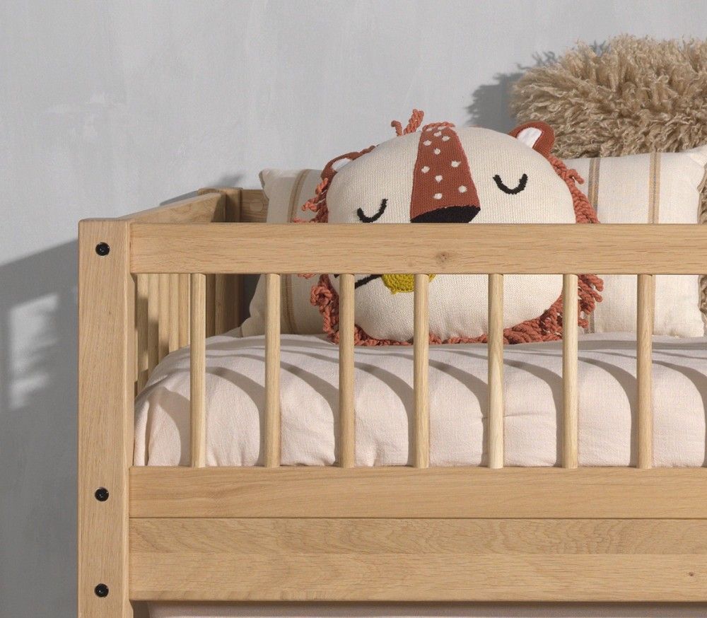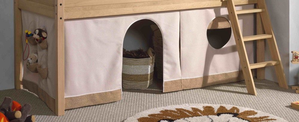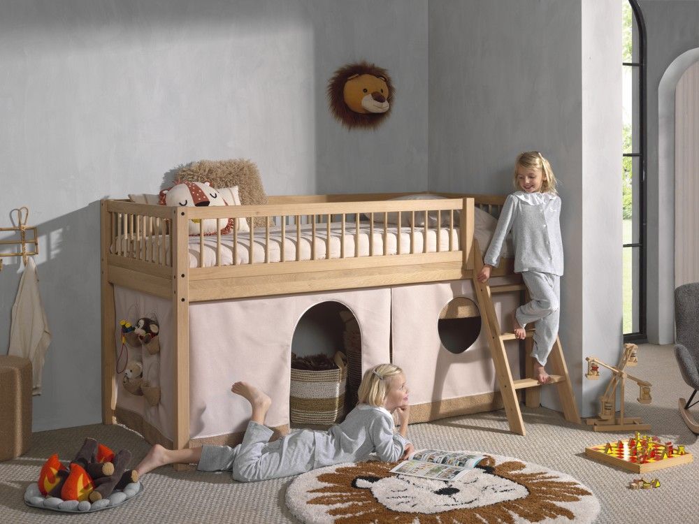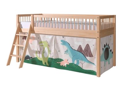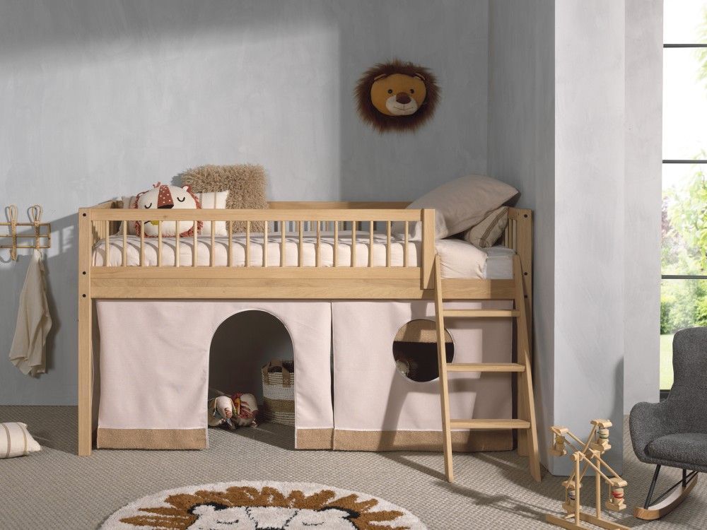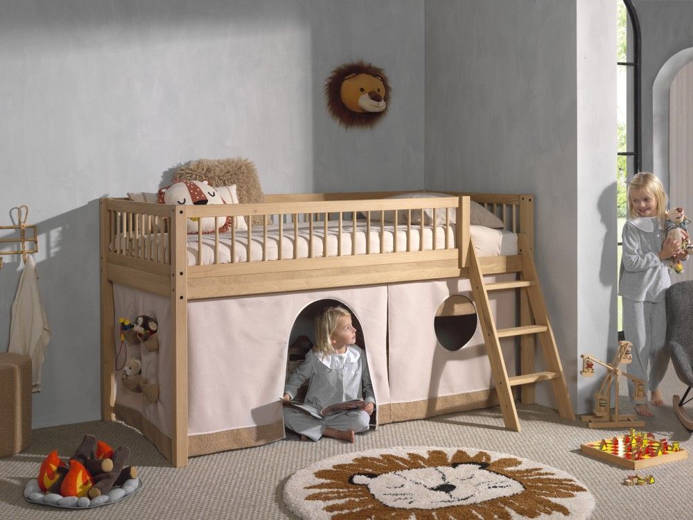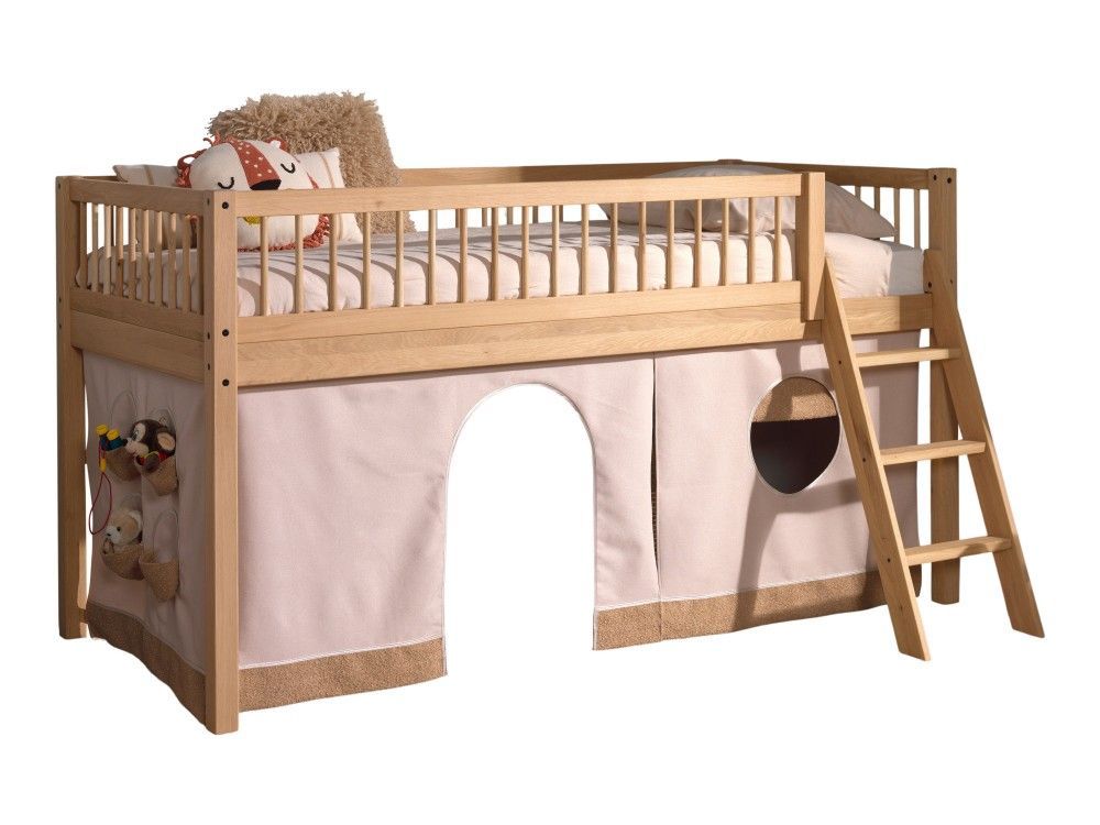 VIPACK Halbhohes Bett Kinderbett 90x200 Vorhangset Lattenrost Spielbett Eiche massiv geölt