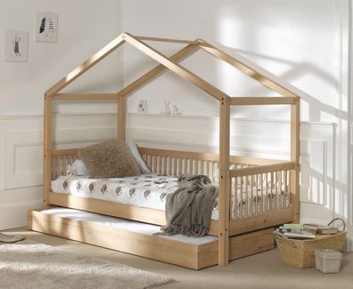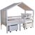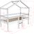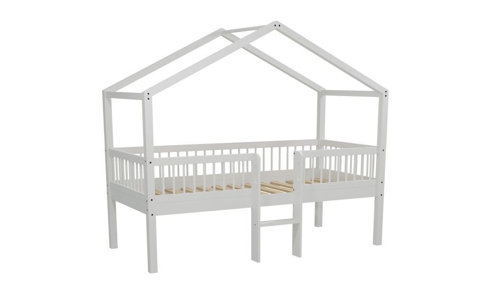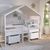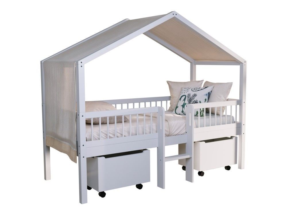 VIPACK Halbhohes Hausbett Leiter Lattenrost 90x200 Rollboxen Himmel Buche massiv weiß
