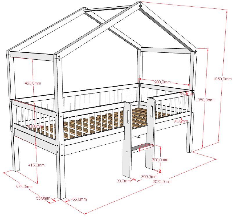 VIPACK Halbhohes Hausbett Leiter Lattenrost 90x200 Spielbett Buche massiv weiß