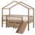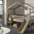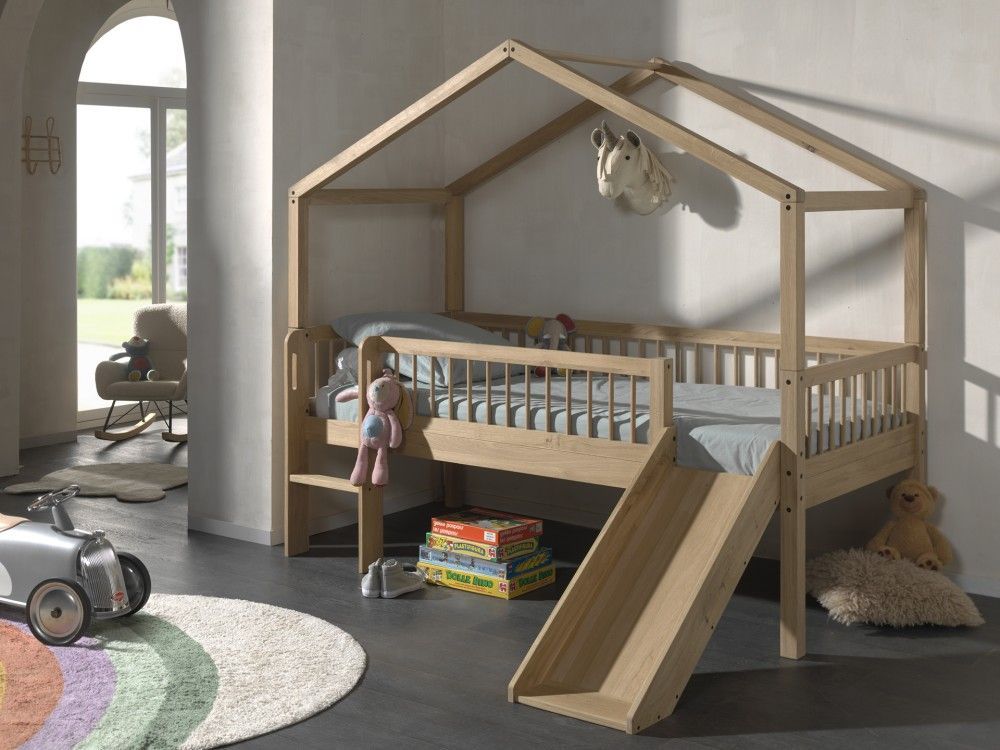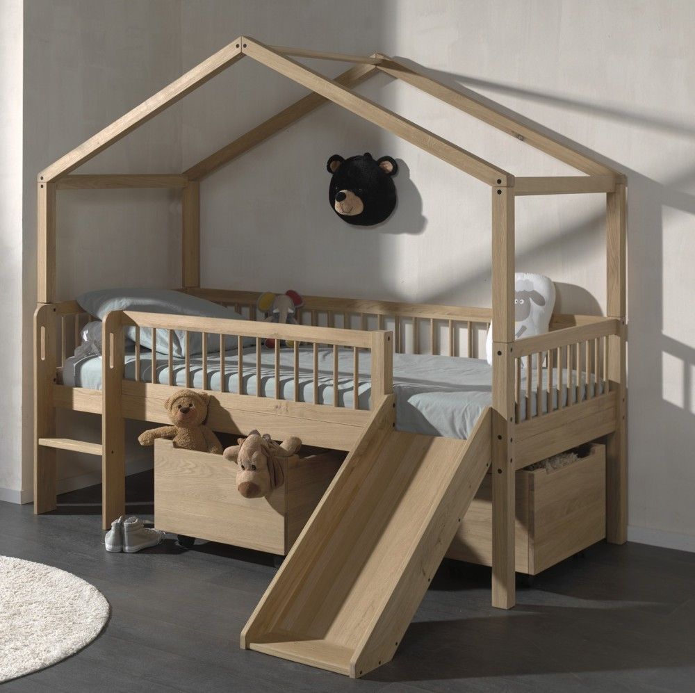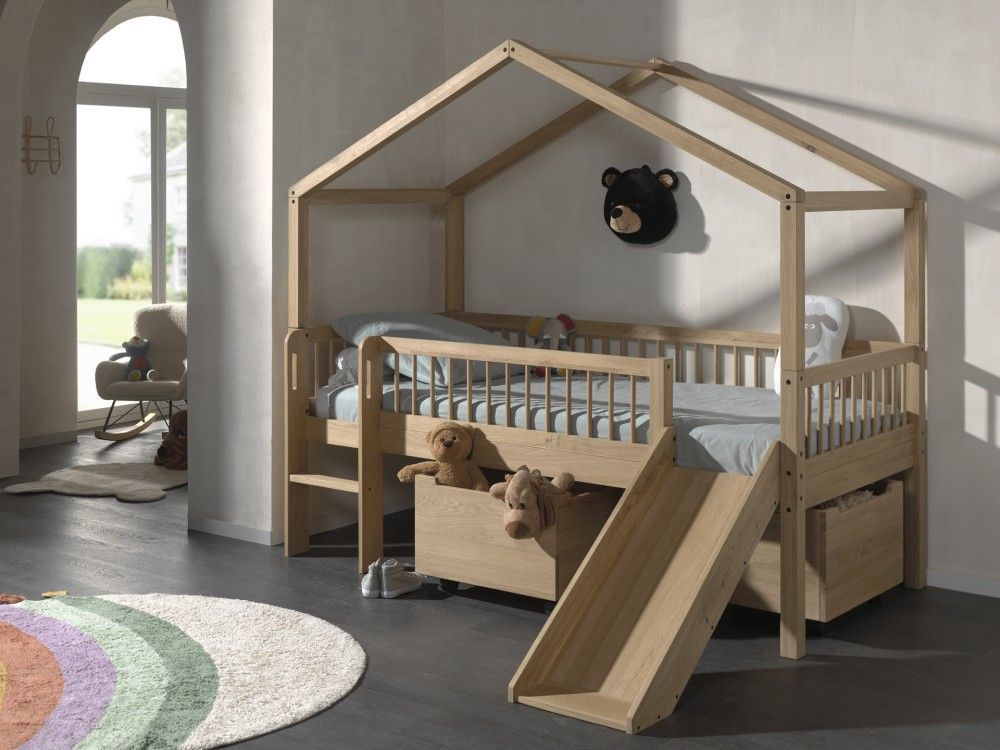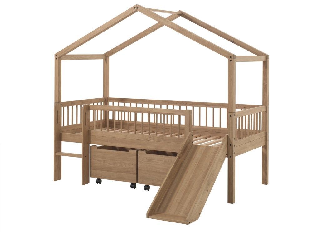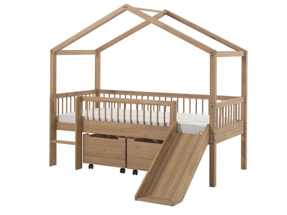 VIPACK Halbhohes Hausbett Rollboxen Rutsche Lattenrost 90x200 Spielbett Eiche massiv