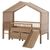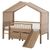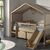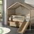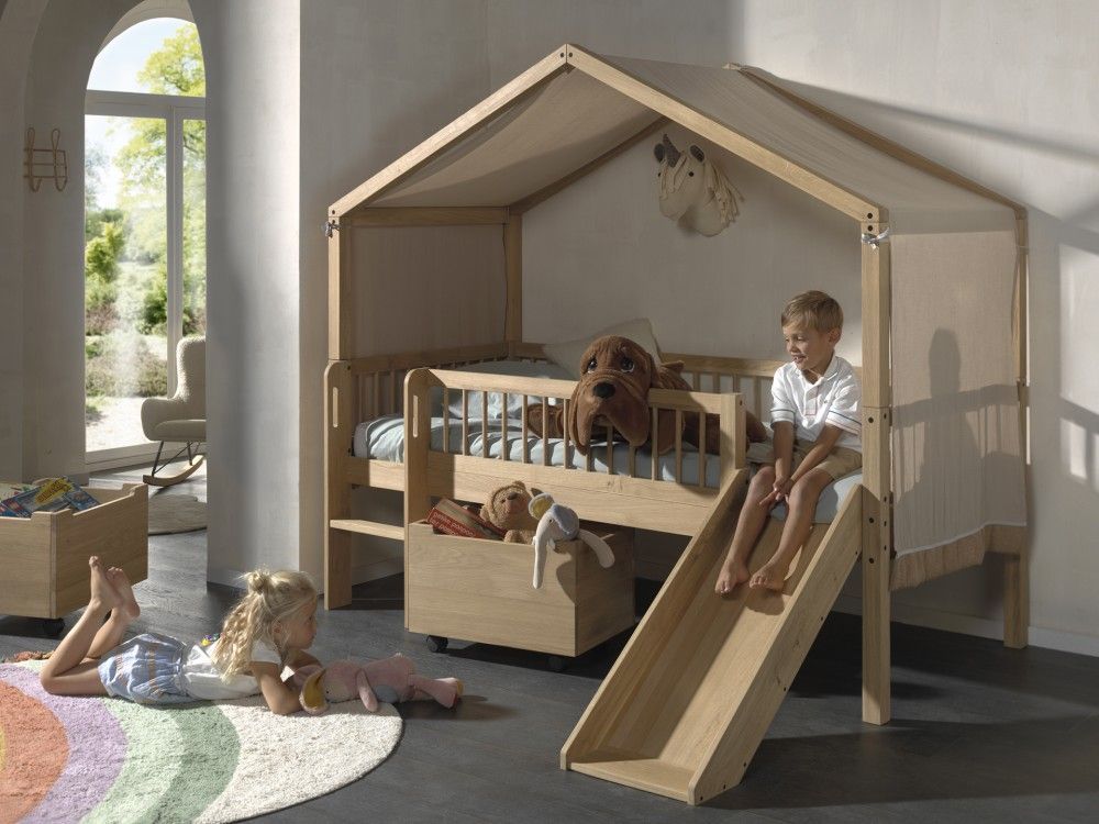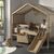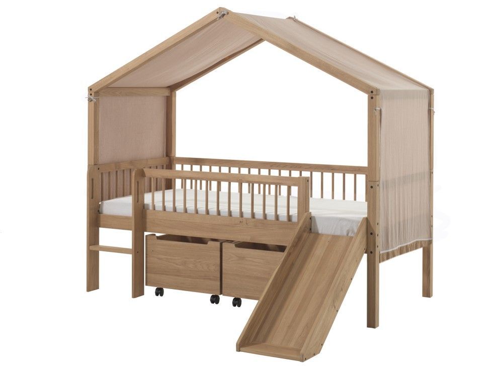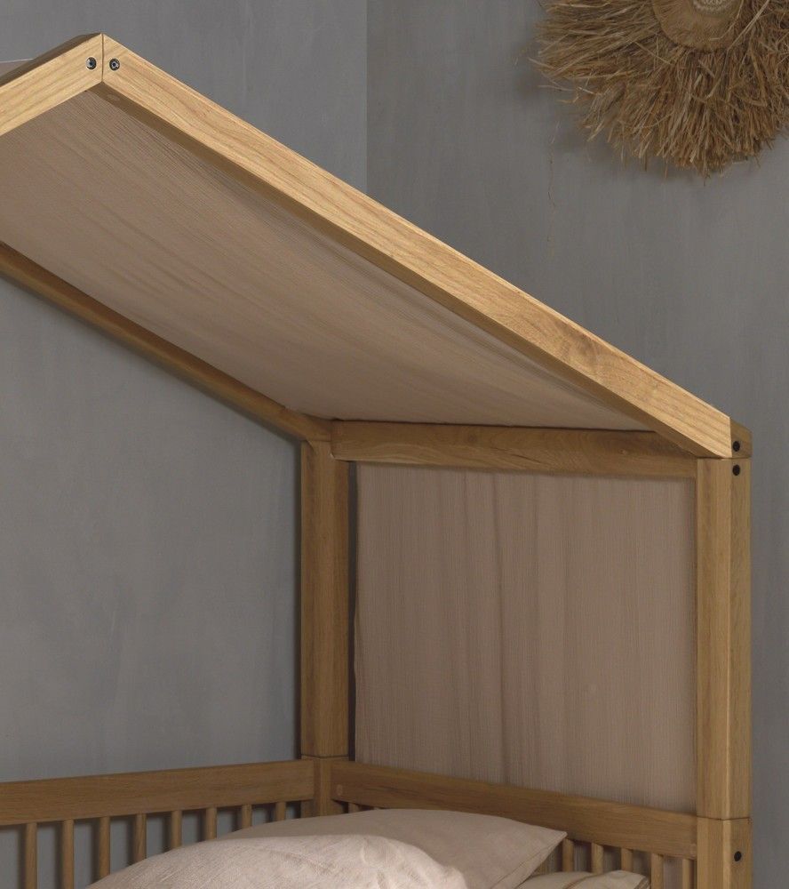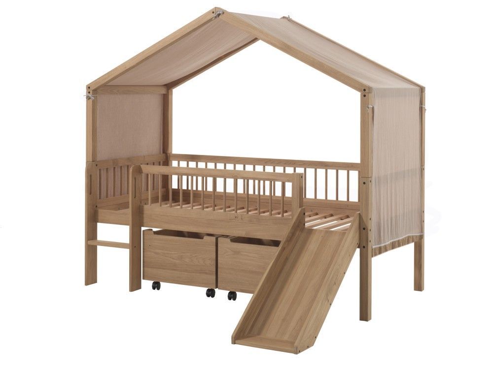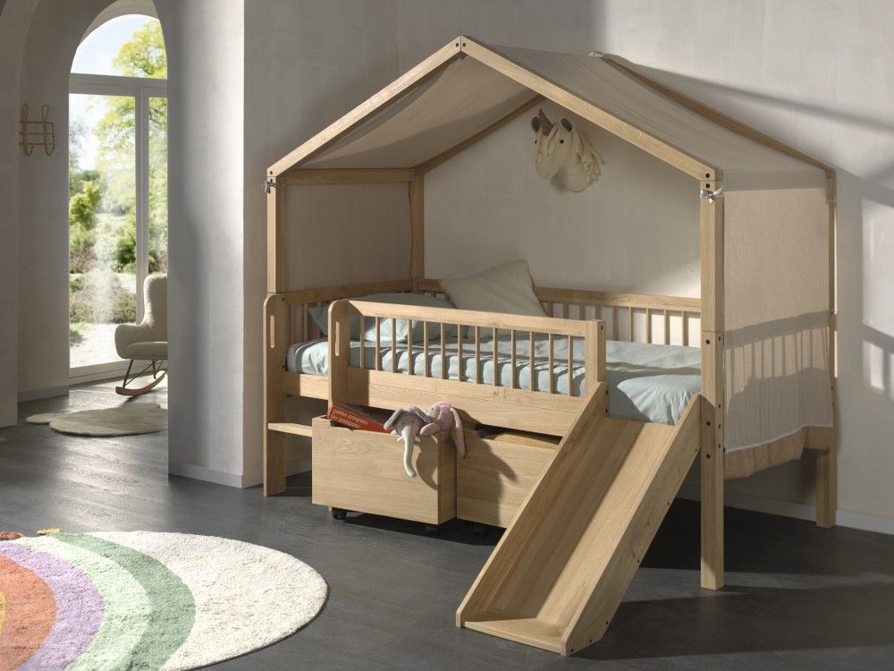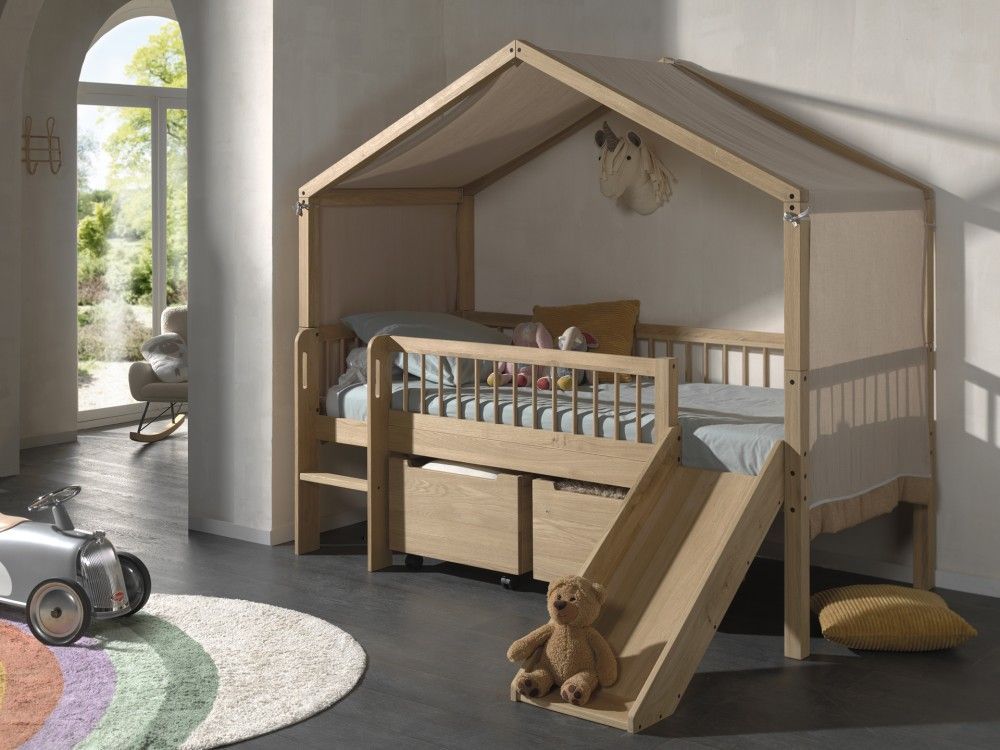 VIPACK Halbhohes Hausbett Rollboxen Rutsche Lattenrost 90x200 Textilhimmel Eiche massiv