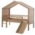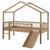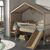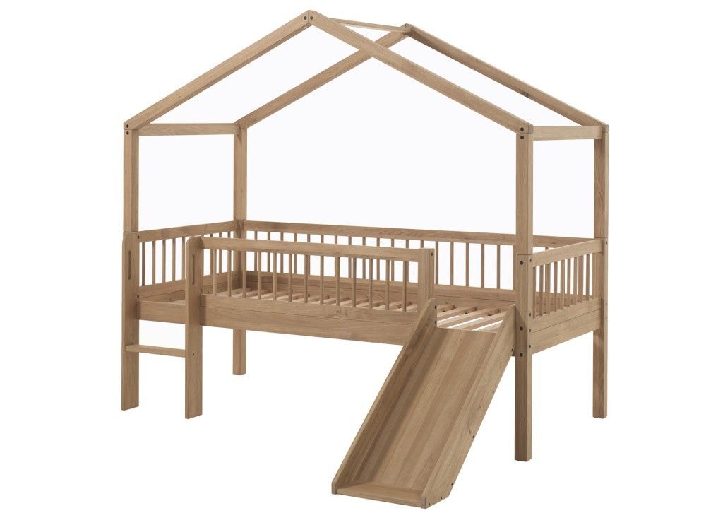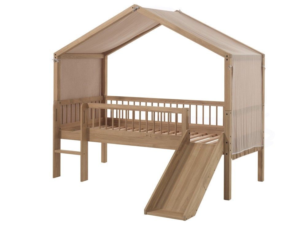 VIPACK Halbhohes Hausbett Rutsche Lattenrost 90x200 Textilhimmel Spielbett Eiche massiv