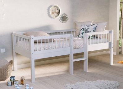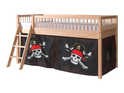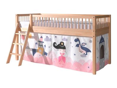 VIPACK Halbhohes Spielbett Kinderbett 90x200 Vorhangset Pet Shop Buche massiv Natur