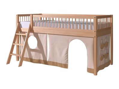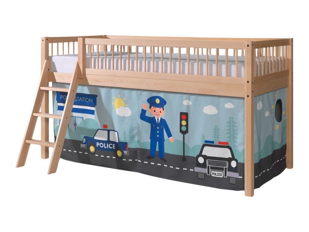 VIPACK Halbhohes Spielbett Kinderbett 90x200 Vorhangset Polizei Buche massiv Natur