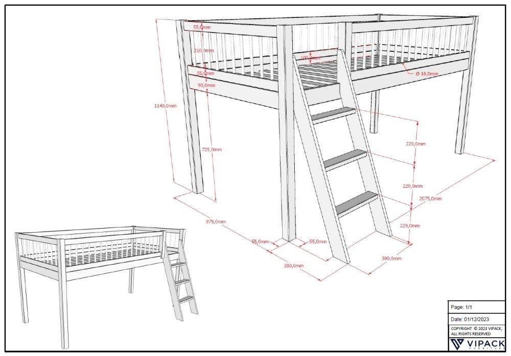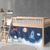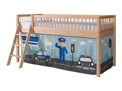 VIPACK Halbhohes Spielbett Kinderbett 90x200 Vorhangset Weltraum Buche massiv Natur