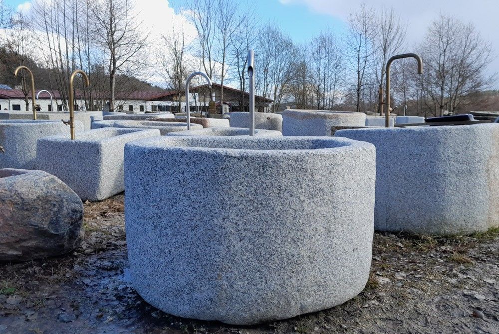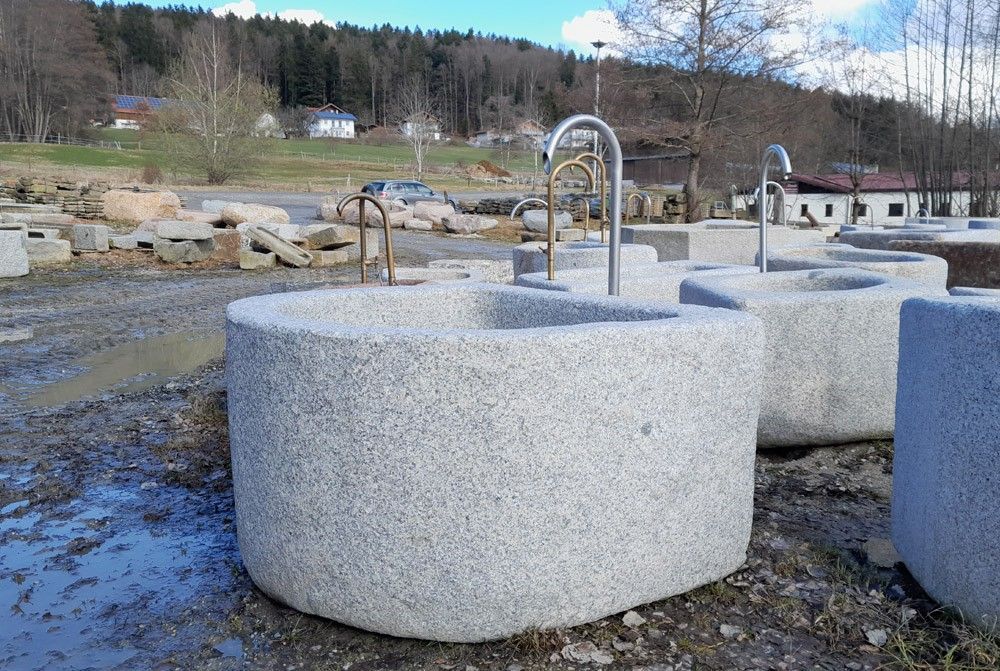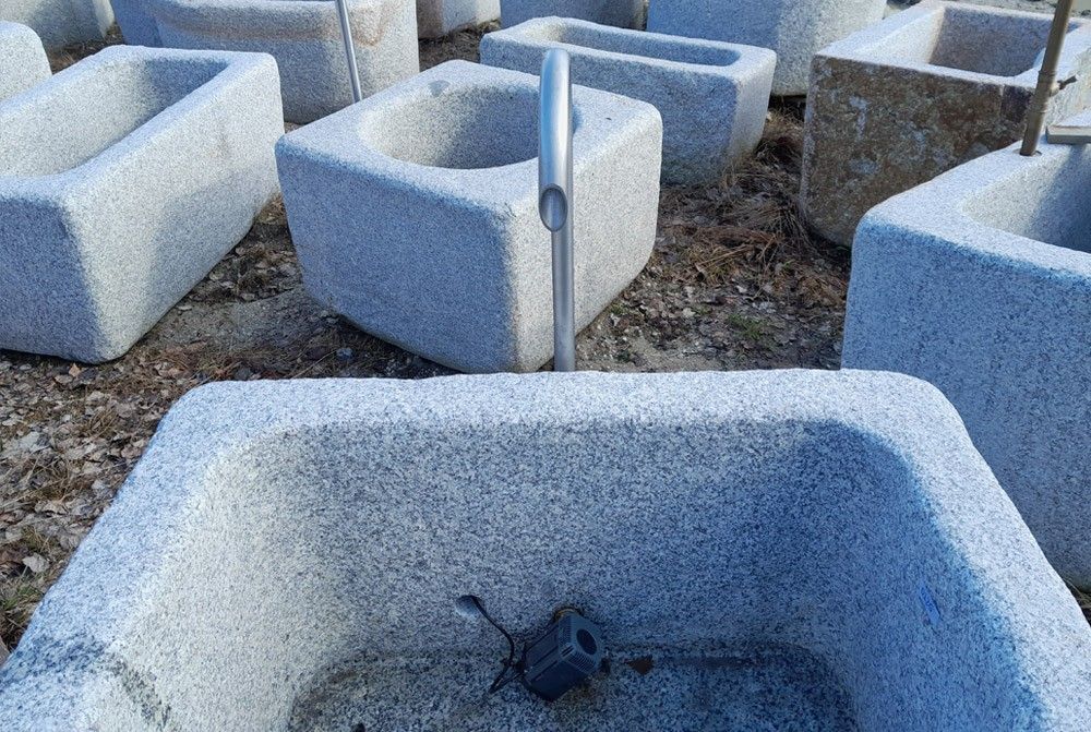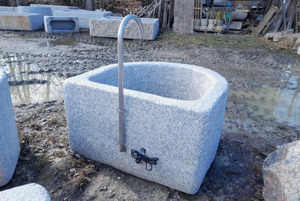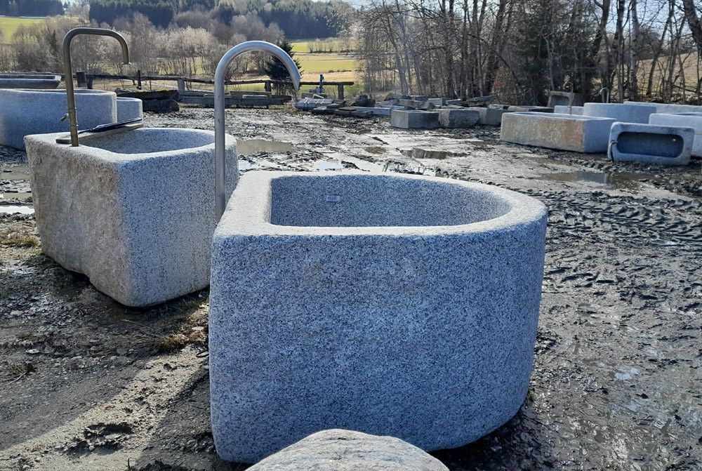 Wunderschöner halbrunder Granitbrunnen mit montiertem Edelstahleinlauf und Umwälzpumpe, ein Schmuckstück für jeden Garten und jedes Haus Länge x Breite x Höhe: 121 x 111 x 65 cm Gewicht: 1100 kg Preis: Euro 2352,10 zzgl. MwSt. = Euro 2799,-- Lieferung und kostenlose Selbstabholung möglich Wir haben ... Mehr
