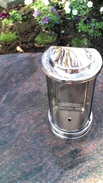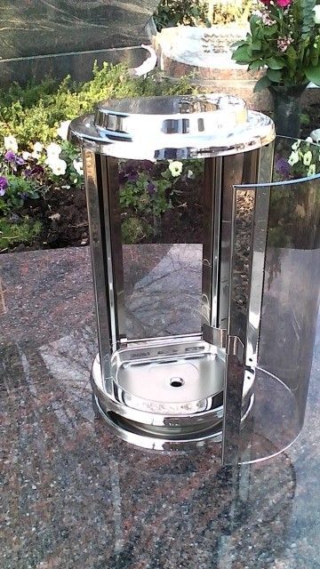 Halbrunde Grablampe aus Edelstahl poliert Grablaterne Grablicht Grableuchte