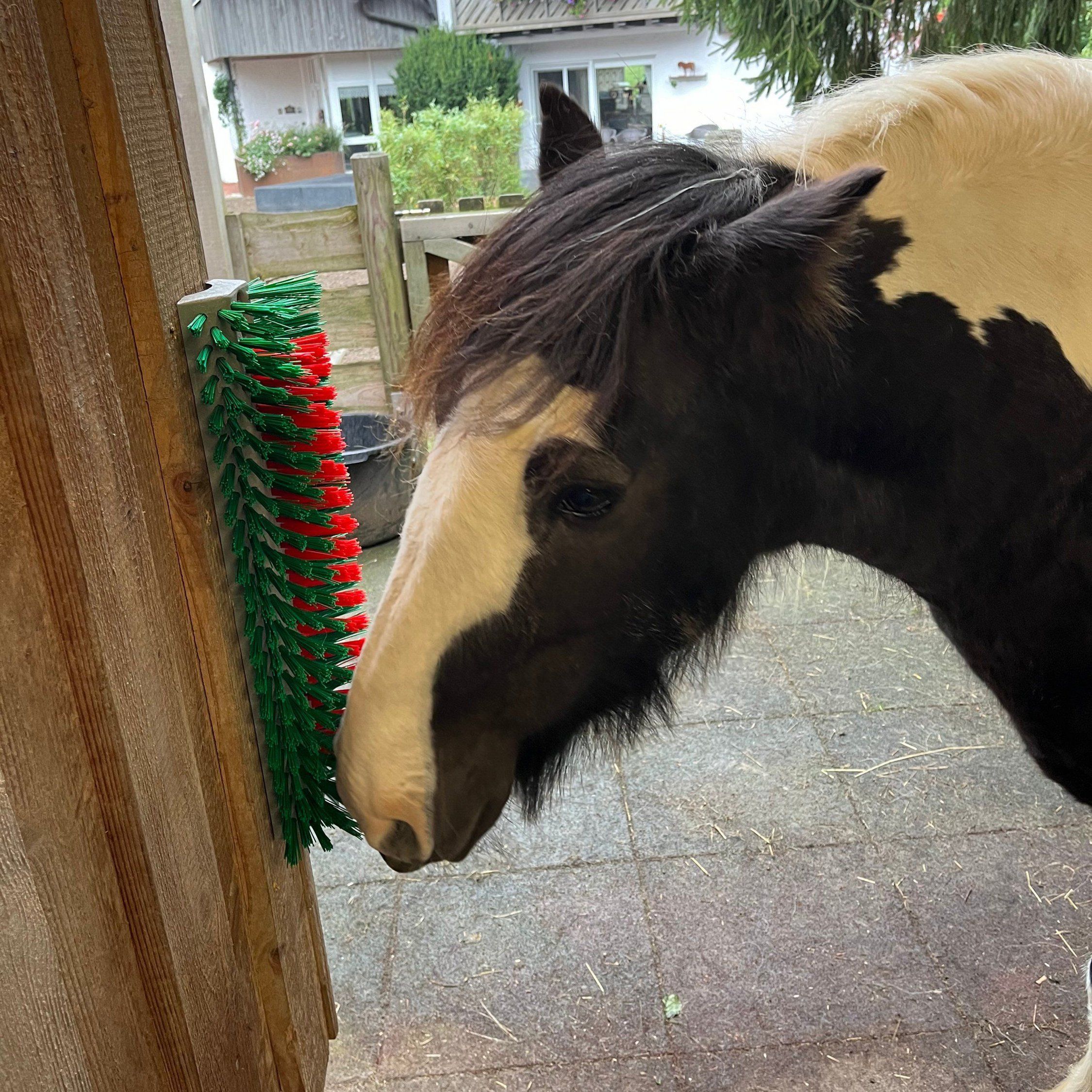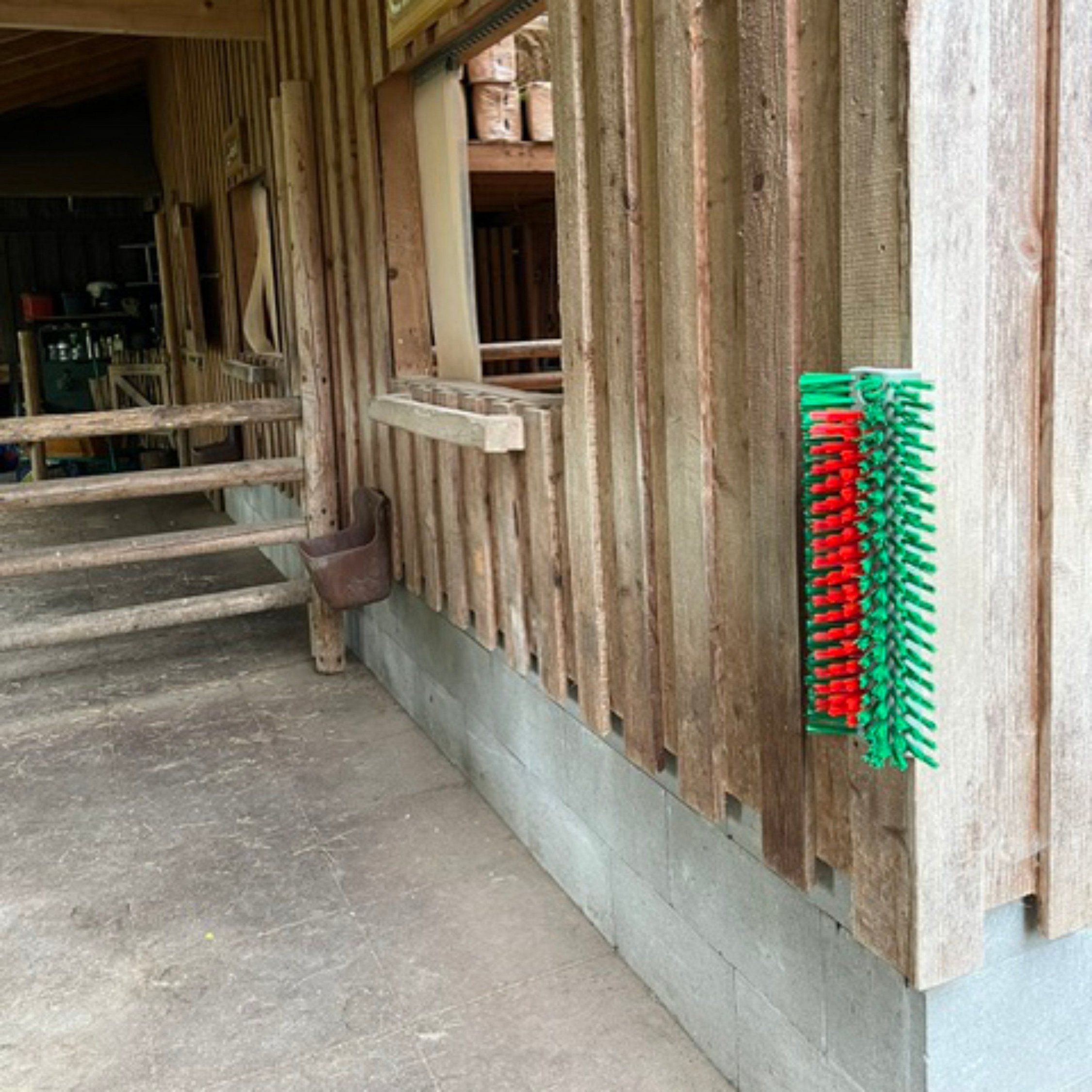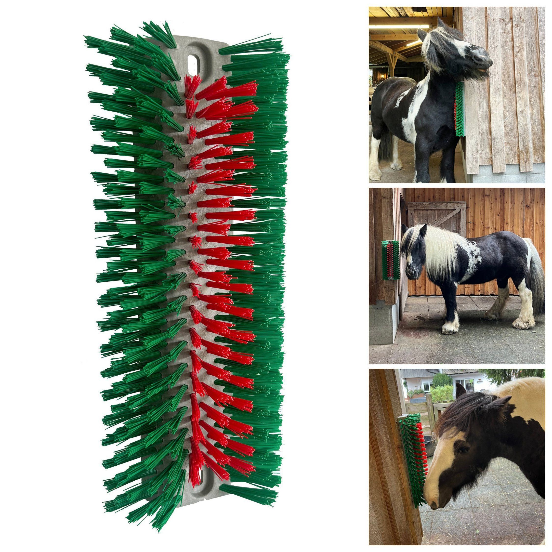 Halbrunde Kratzb?rste f?r Rinder & K?lber, Pferde, Ziegen, gr?n-rot